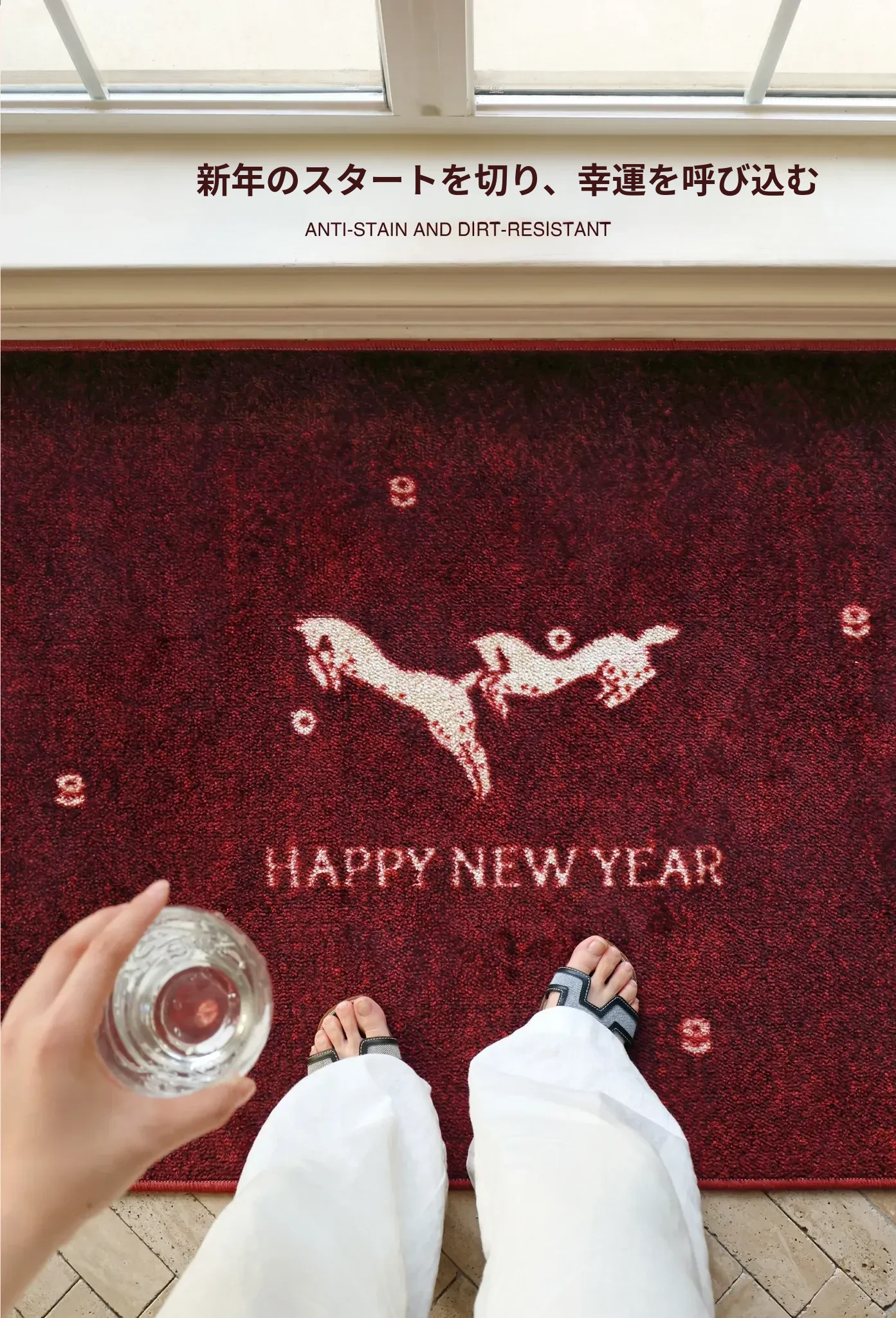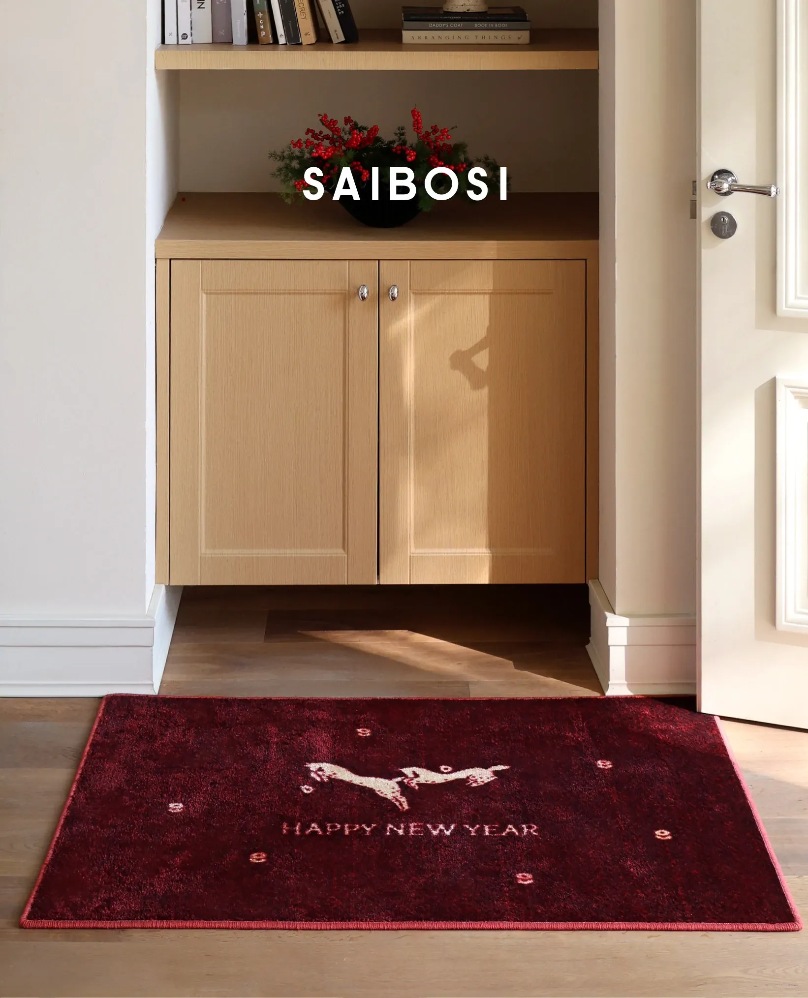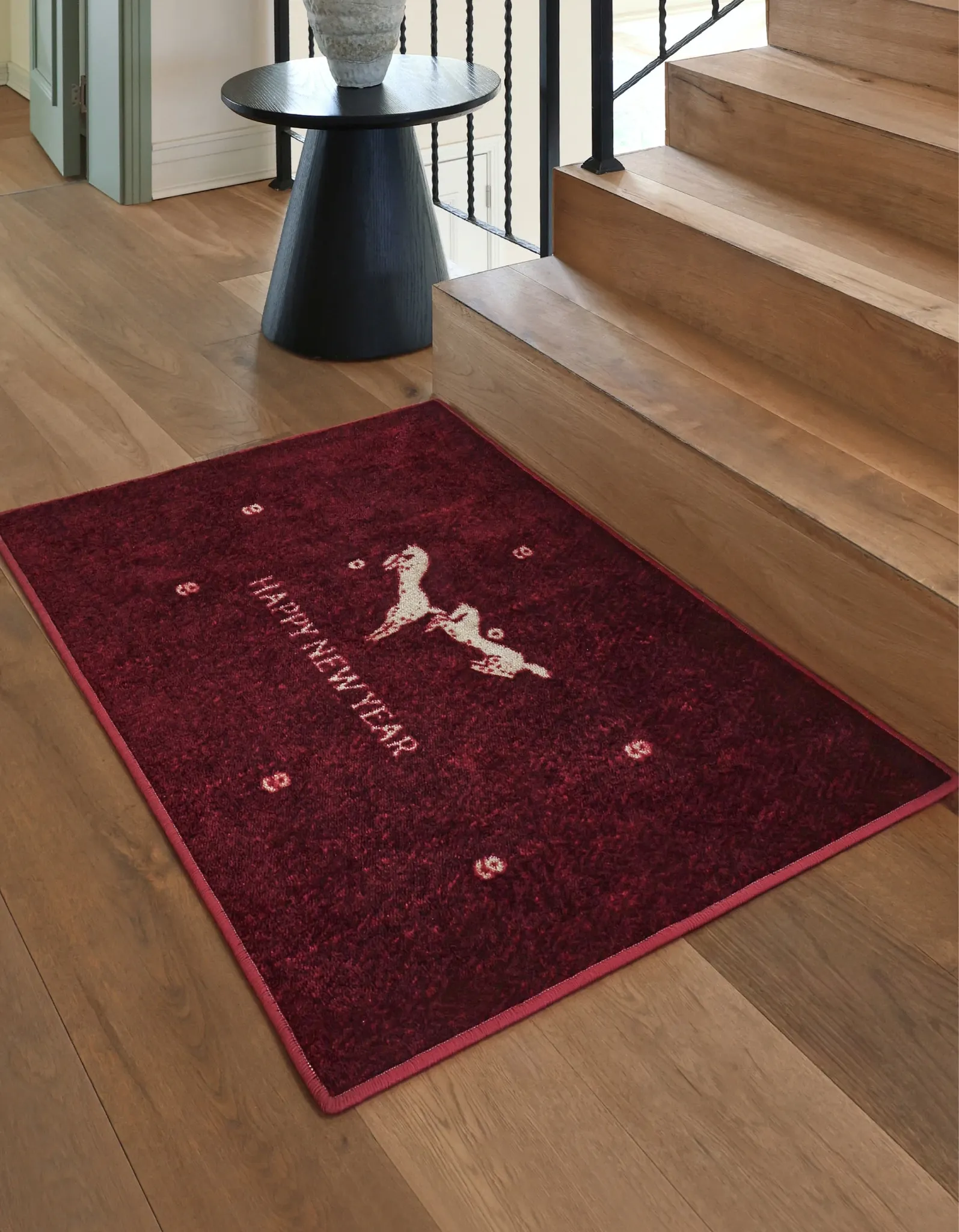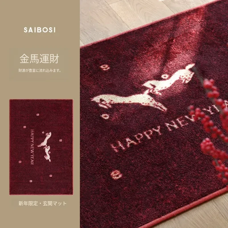 セイボス新年限定!馬年の幸運を招く赤い玄関マット - 新中式デザインでおしゃれな滑り止め効果!引越し祝いにもぴったりなインテリアアイテム。