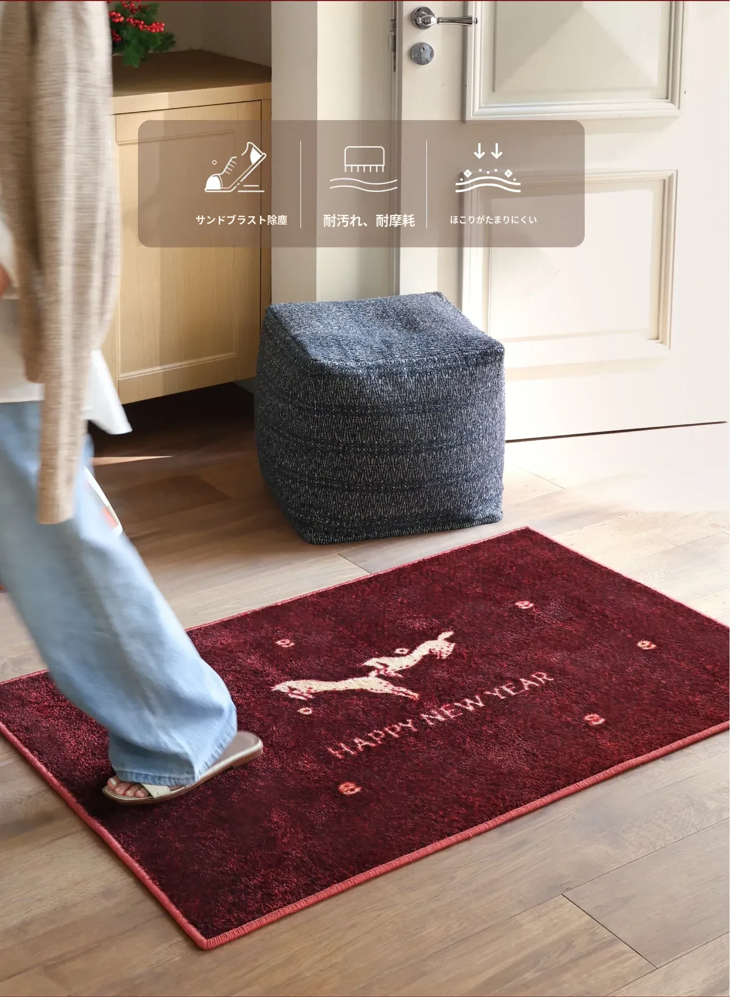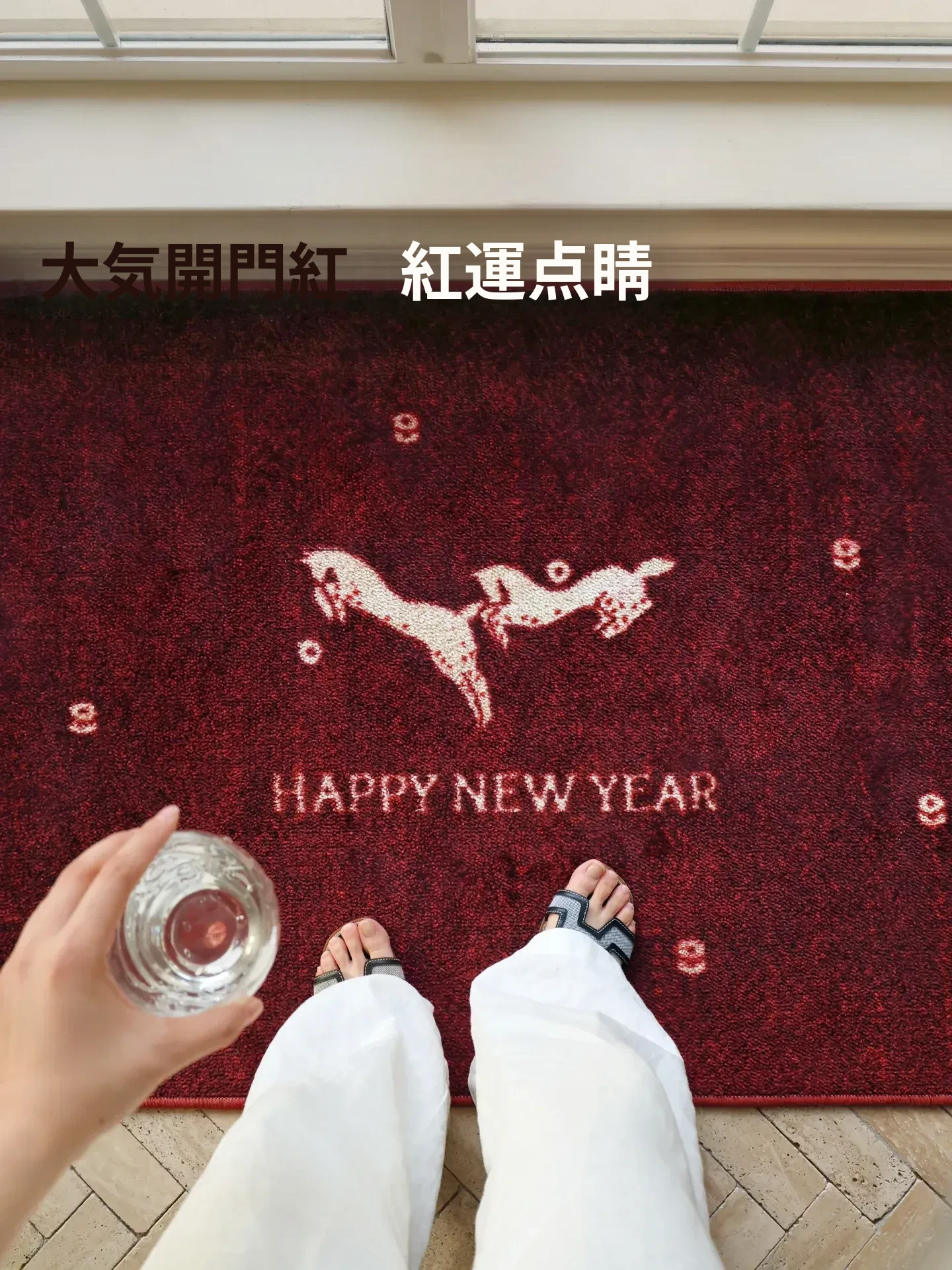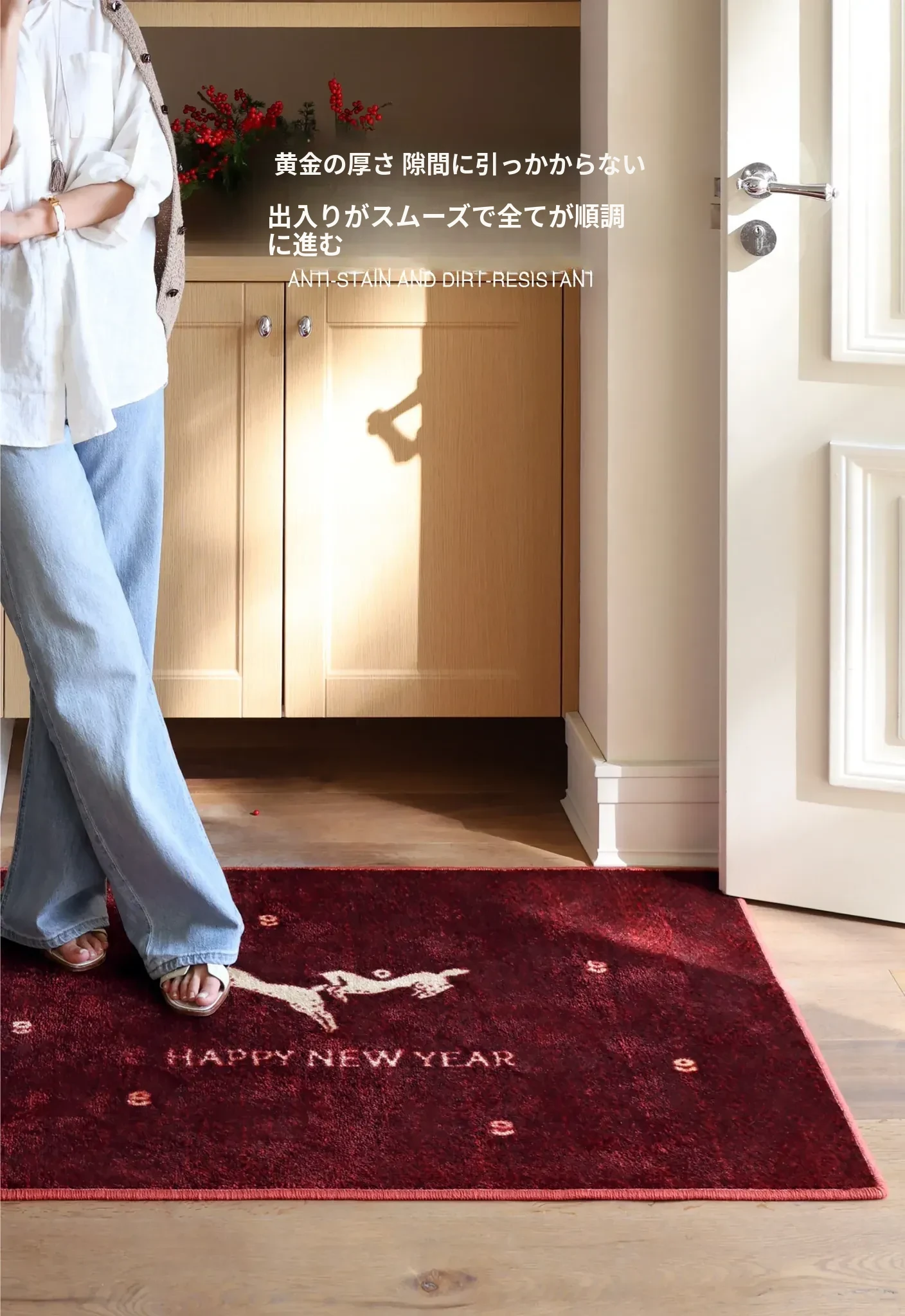 セイボス新年限定!馬年の幸運を招く赤い玄関マット - 新中式デザインでおしゃれな滑り止め効果!引越し祝いにもぴったりなインテリアアイテム。