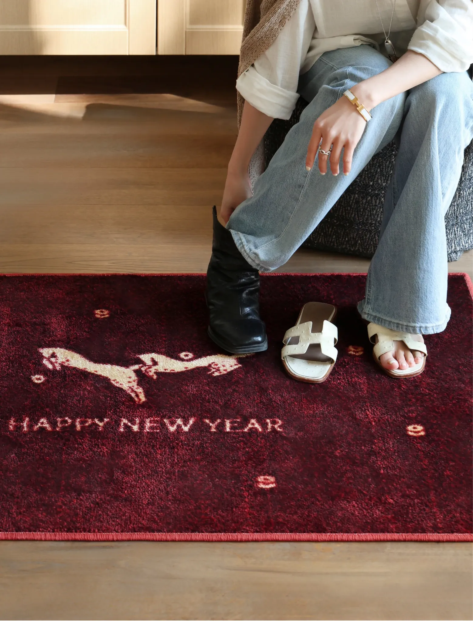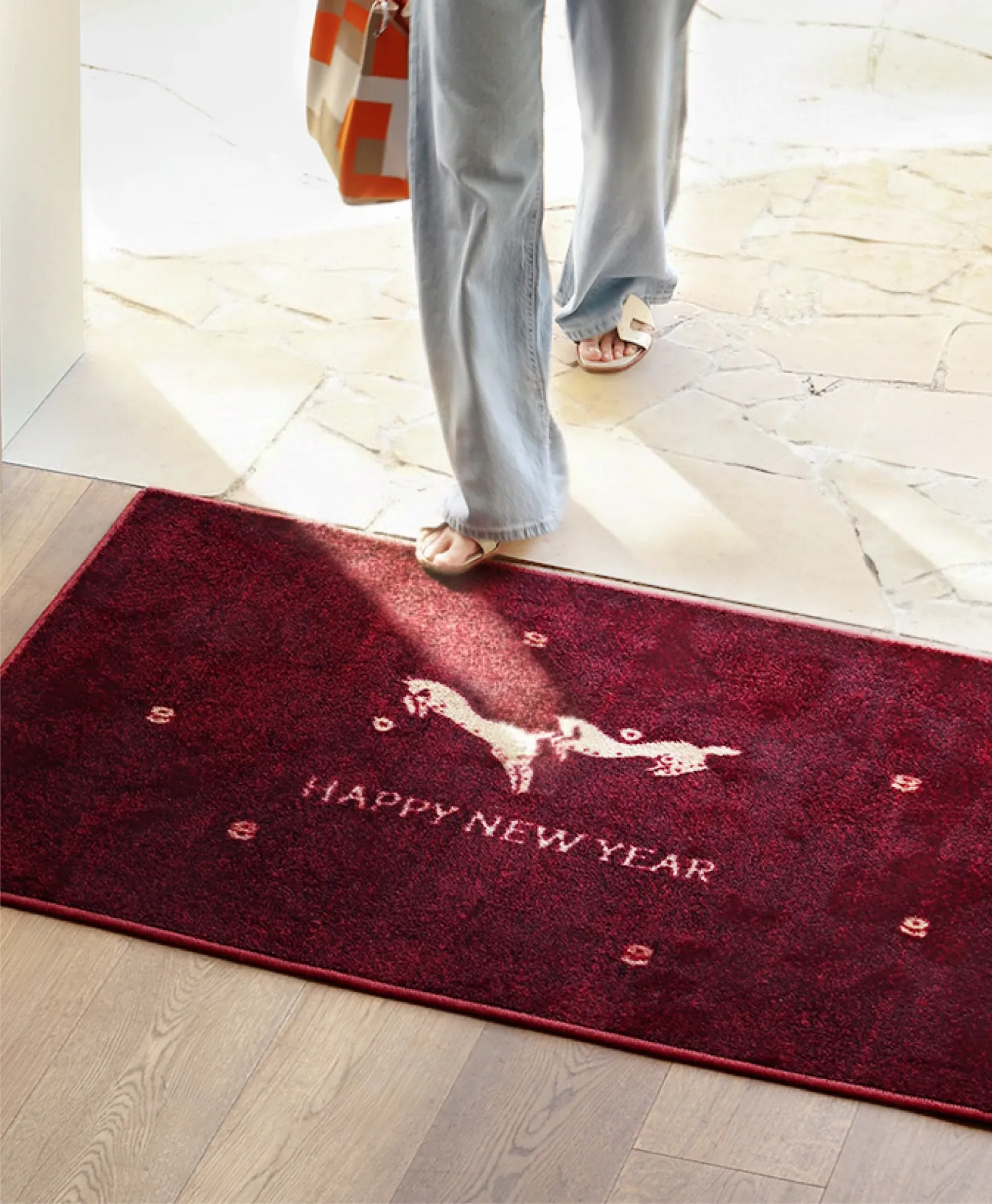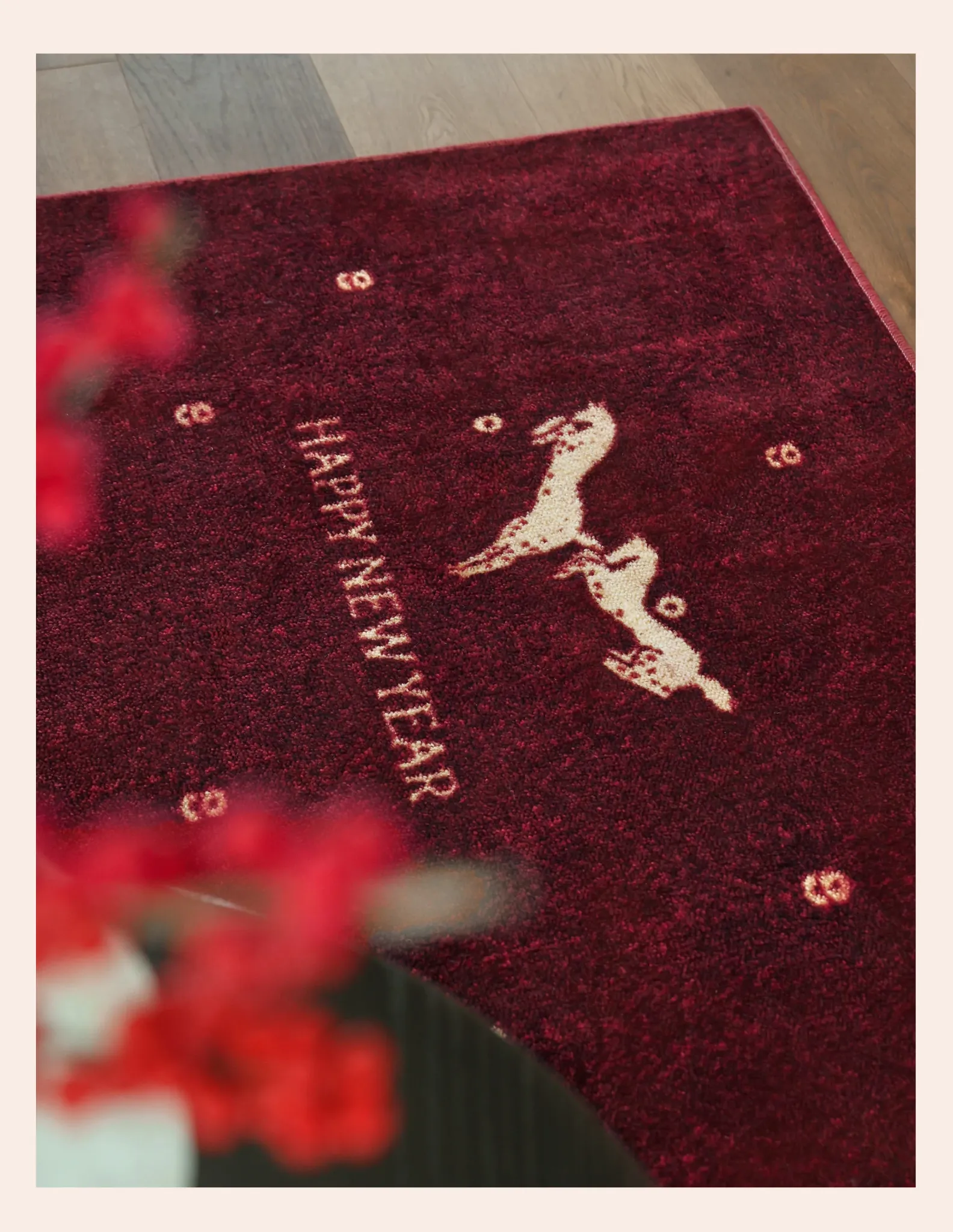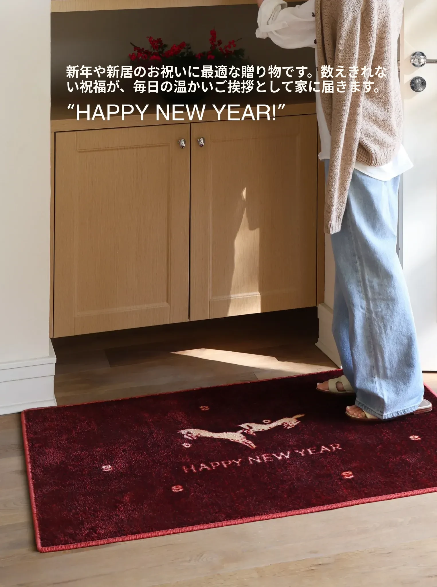 セイボス新年限定!馬年の幸運を招く赤い玄関マット - 新中式デザインでおしゃれな滑り止め効果!引越し祝いにもぴったりなインテリアアイテム。