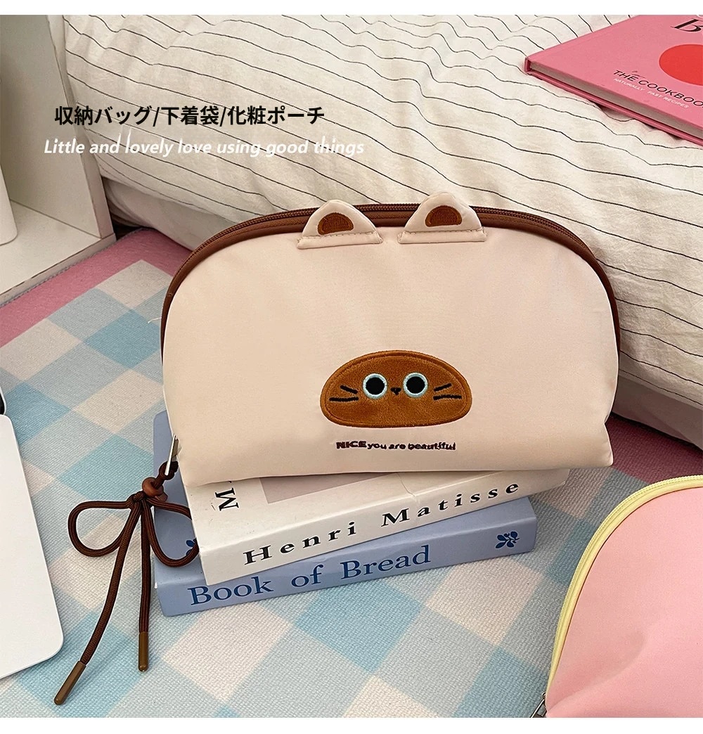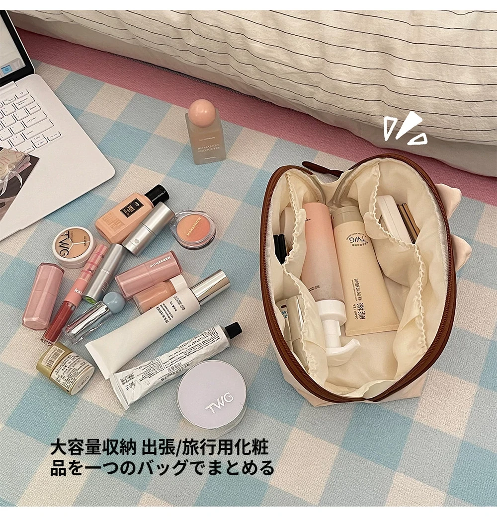 2025年新作!可愛い化粧ポーチ - お出かけにぴったりの大容量!メイクブラシやリップ、ちょっとした小物も分けて収納できる便利な仕切り付き!あなたの美しさをサポートします!