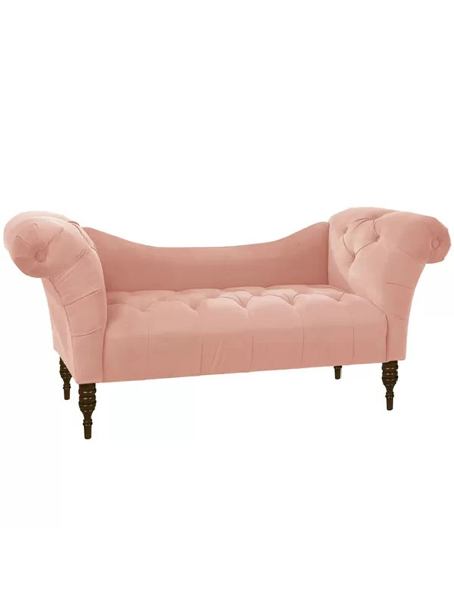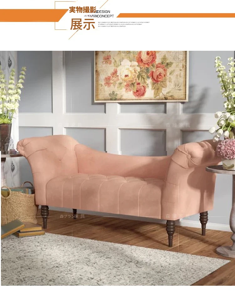 アメリカンシンプルスタイルのベッドサイド用ピンクファブリックソファ!一人用リクライニングチェアで、優雅なデザインが魅力。寝室をおしゃれに演出し、リラックスしたひとときを提供します。