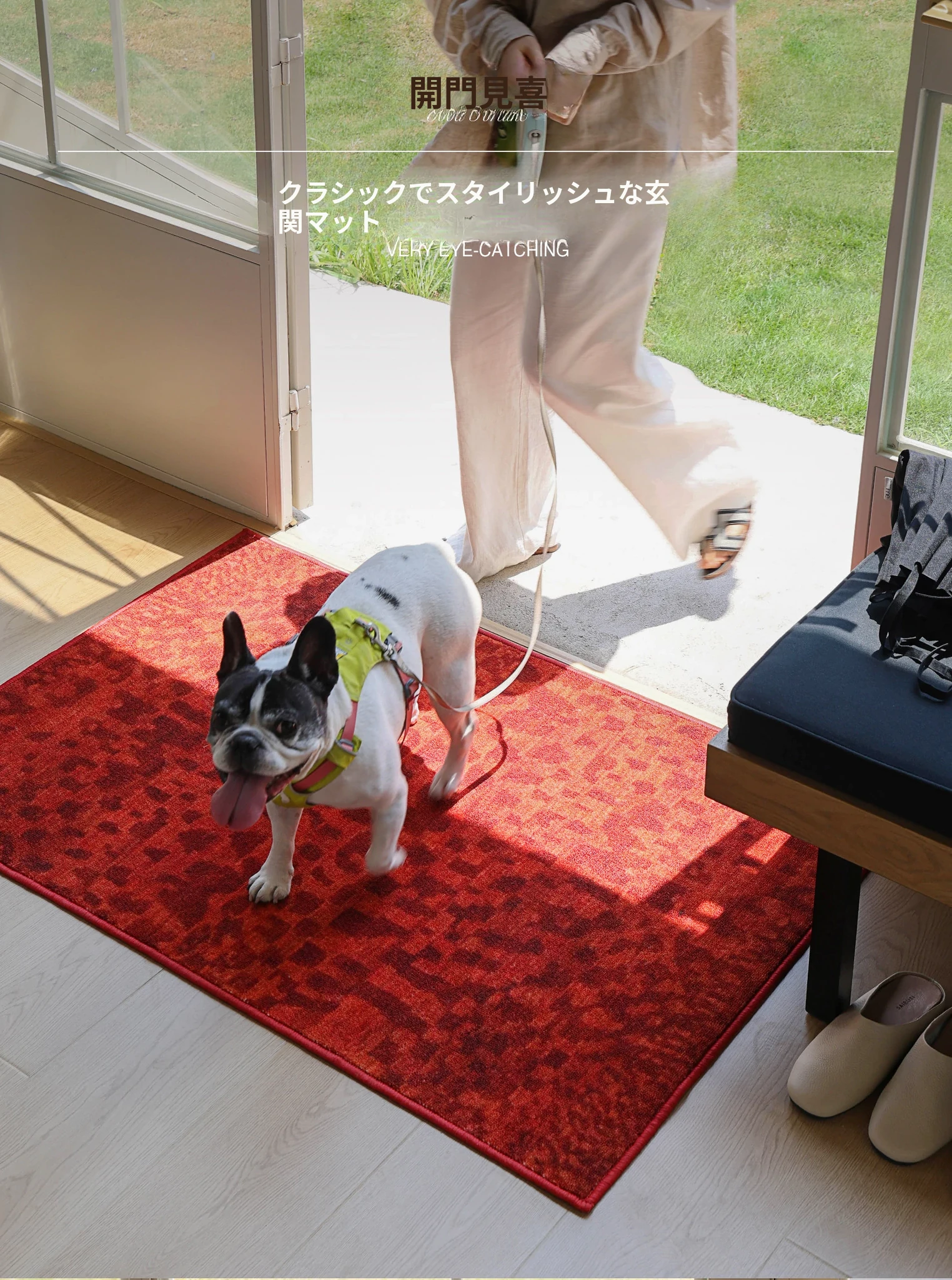 サイボスのクラシックファッション玄関マット|高級感あふれる中古のラグ|滑り止め加工で安心・汚れに強いデザイン|おしゃれな入室を演出する必須アイテム!
