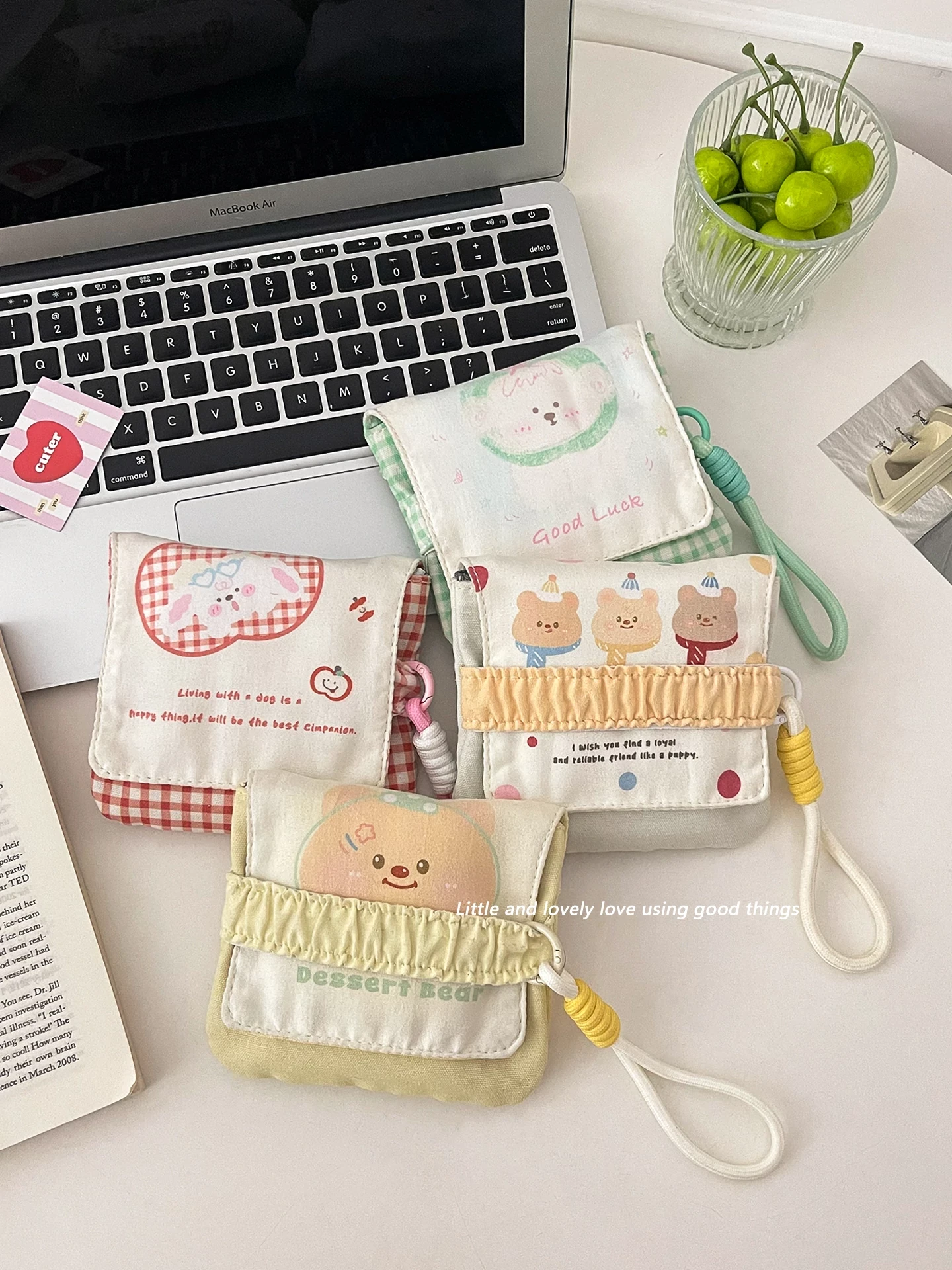 リンゴ犬の緑のチェック【ストラップ付き】