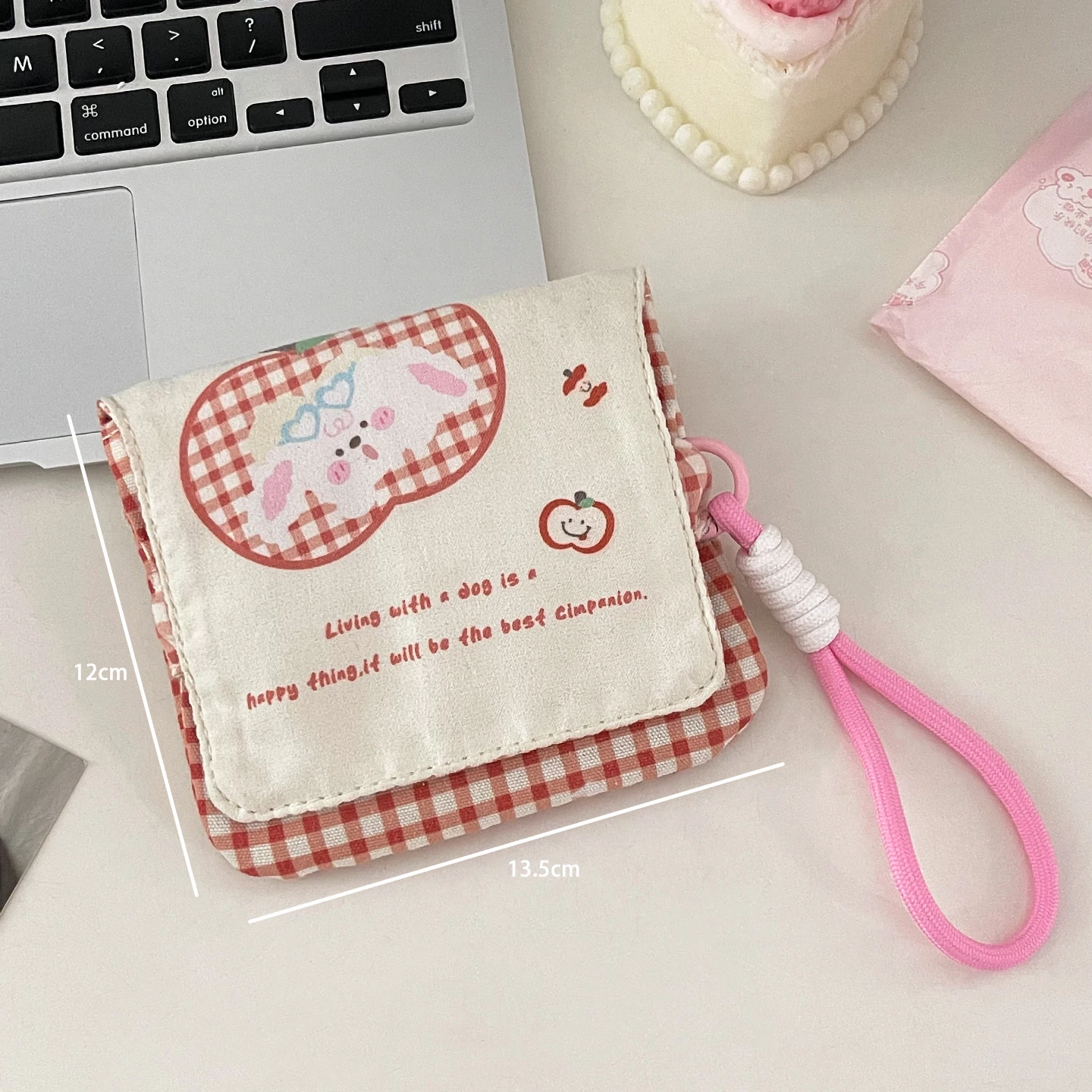 リンゴ犬の赤のチェック【ストラップ付き】