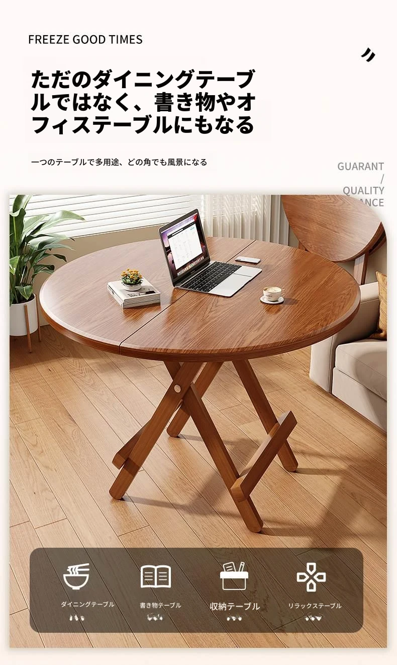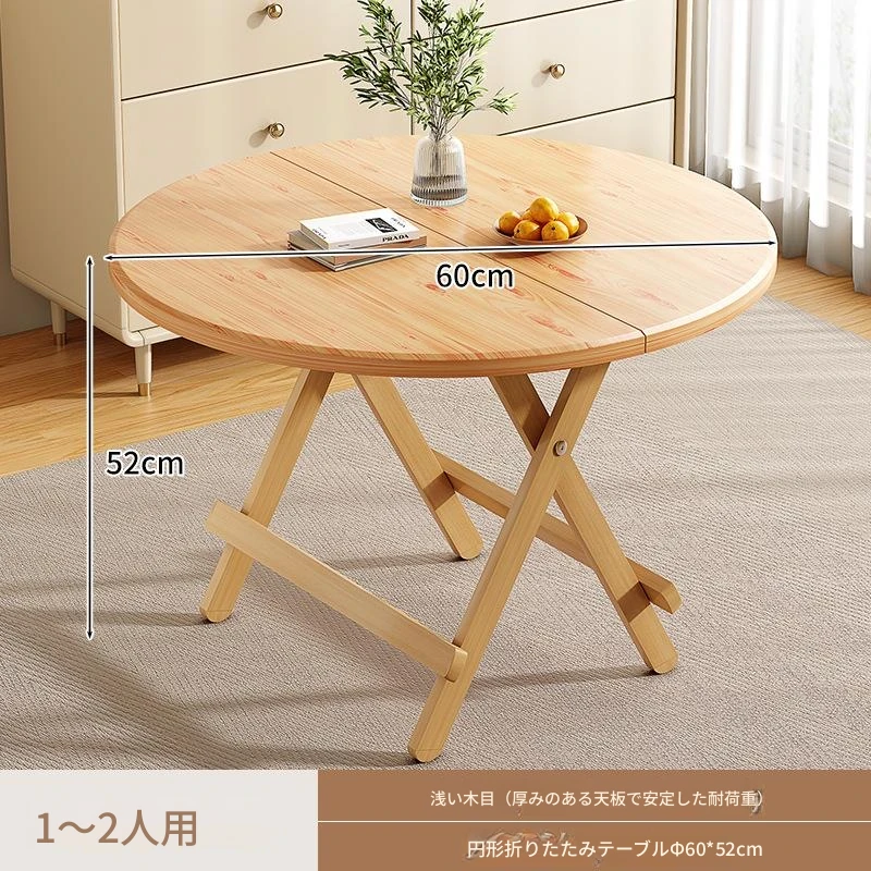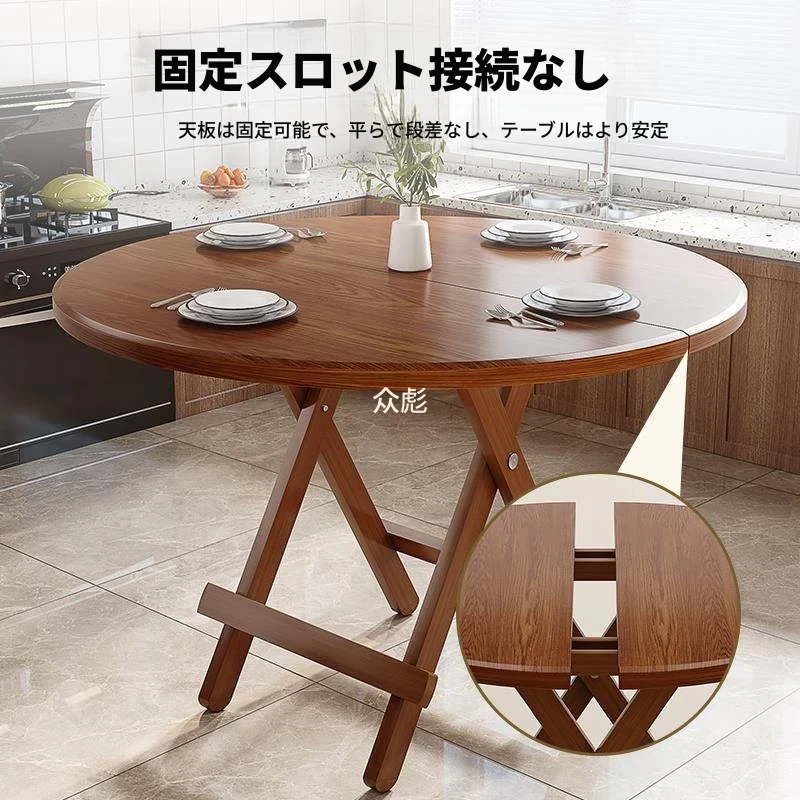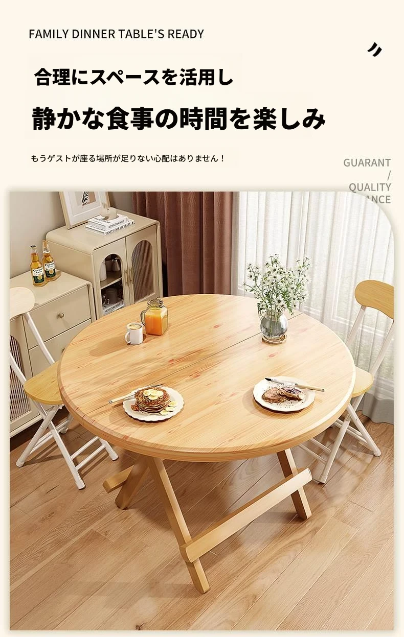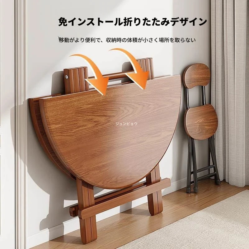 折りたたみ式無垢材ダイニングテーブル|小型住居に最適な円形テーブル|収納も簡単!食事やお茶にぴったりのシンプルでスタイリッシュなデザイン。