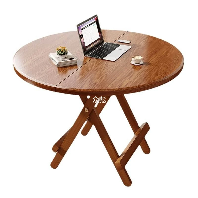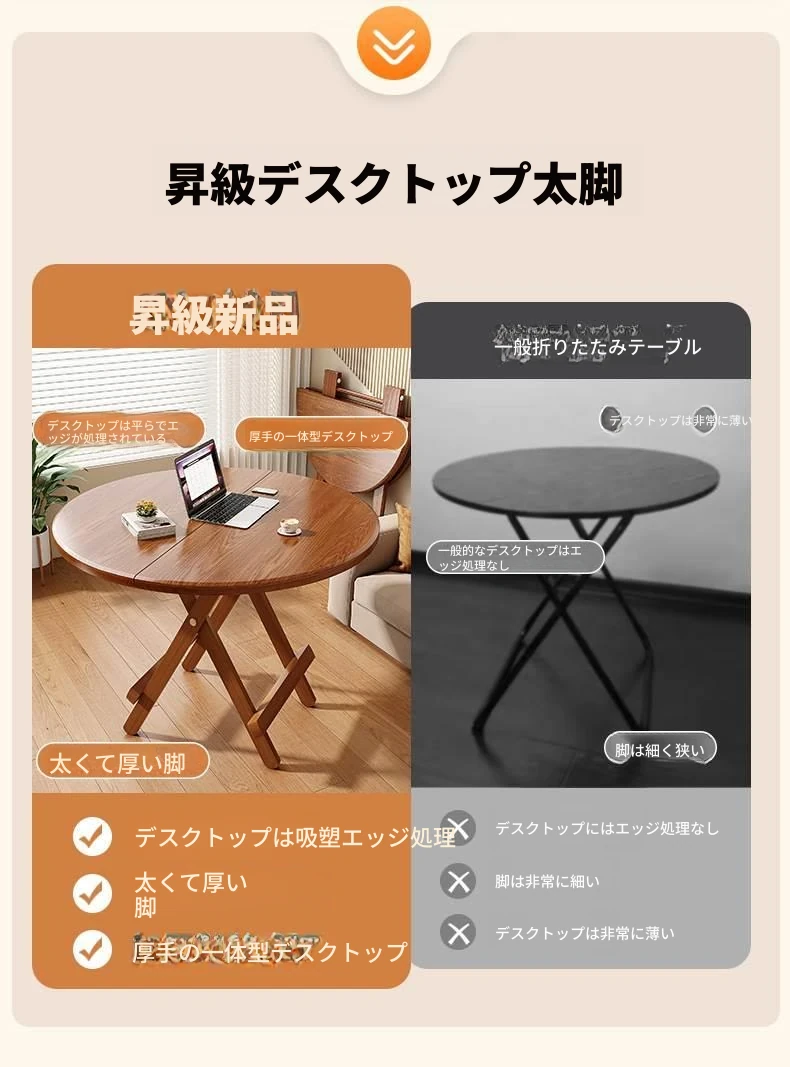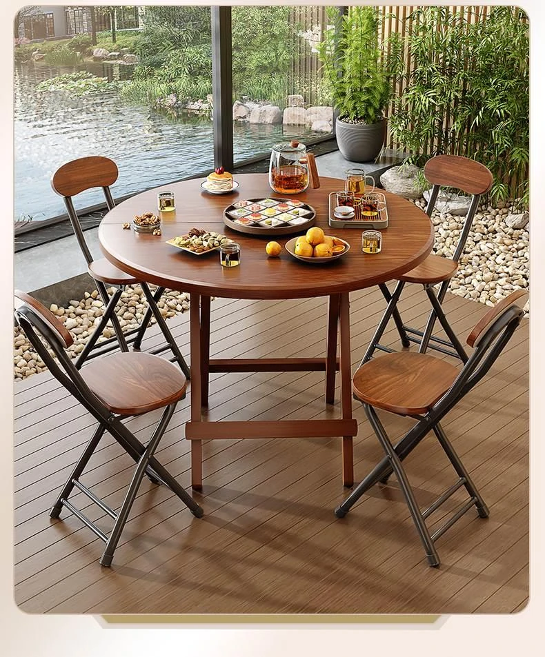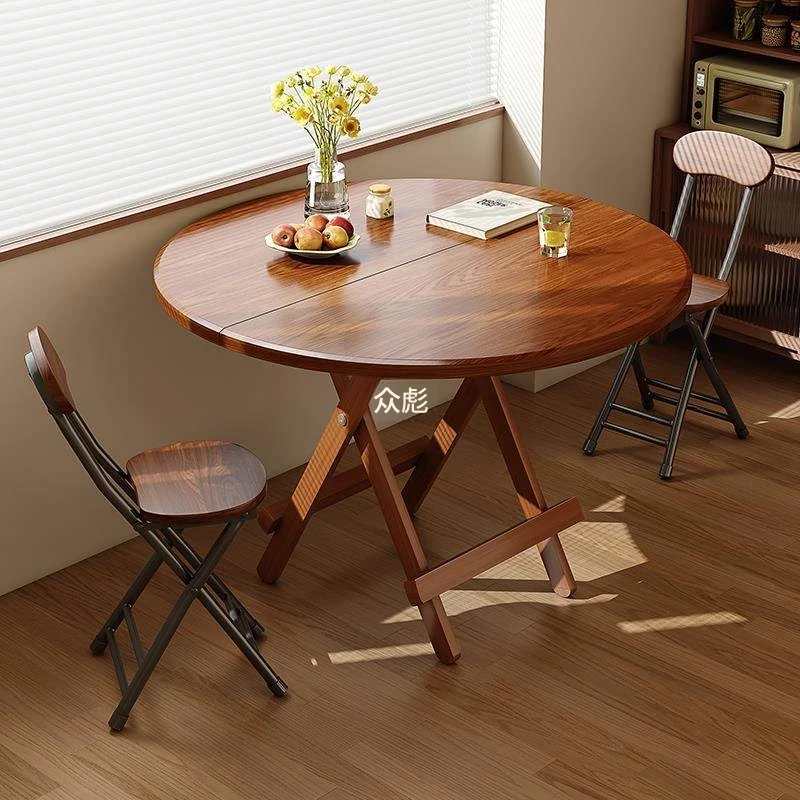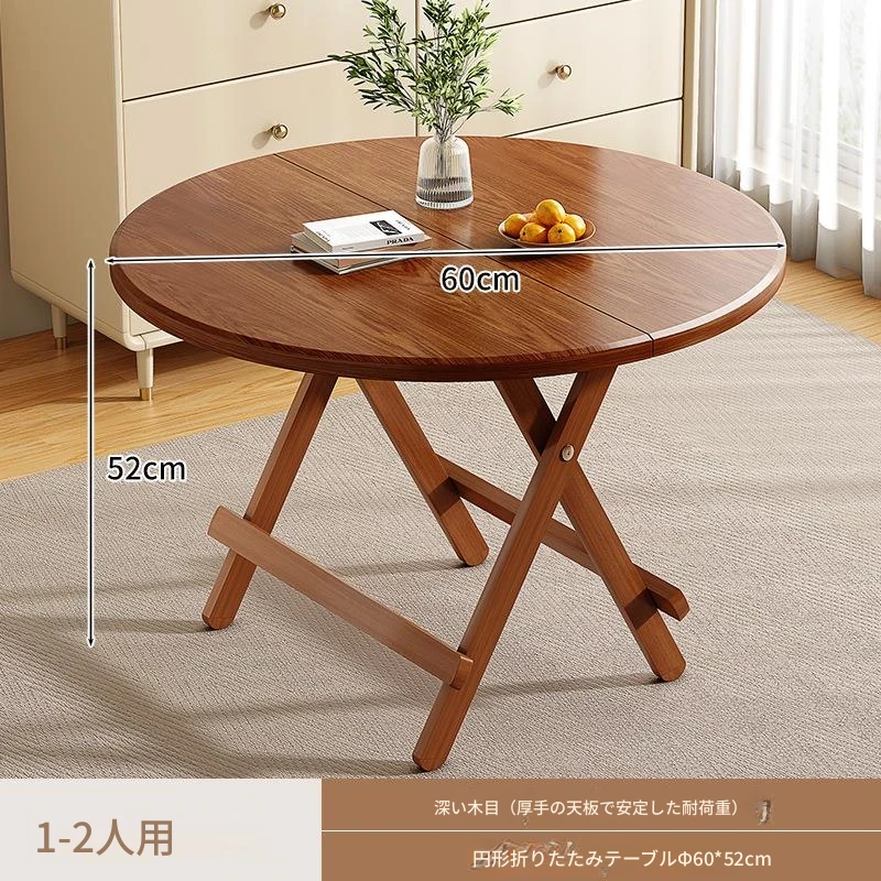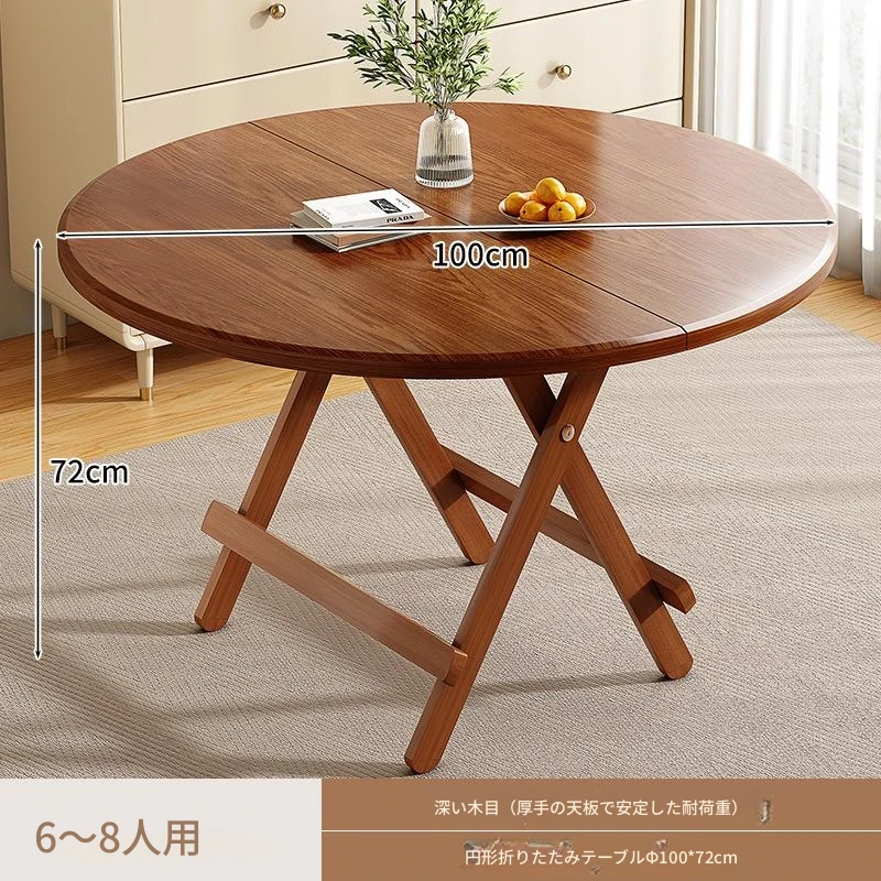 折りたたみ式無垢材ダイニングテーブル|小型住居に最適な円形テーブル|収納も簡単!食事やお茶にぴったりのシンプルでスタイリッシュなデザイン。