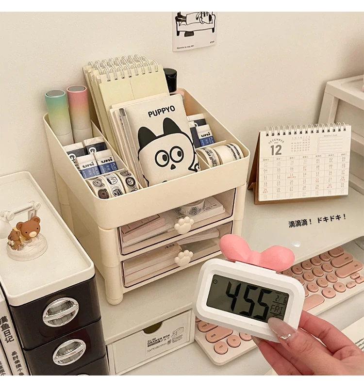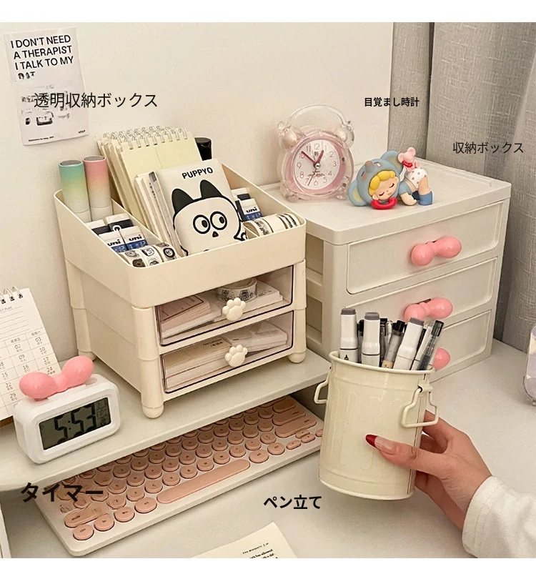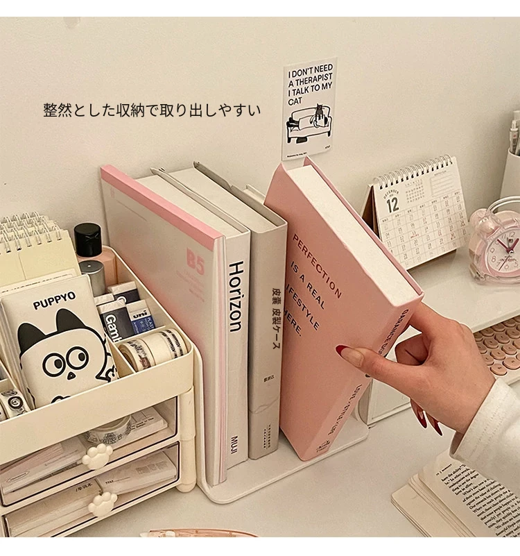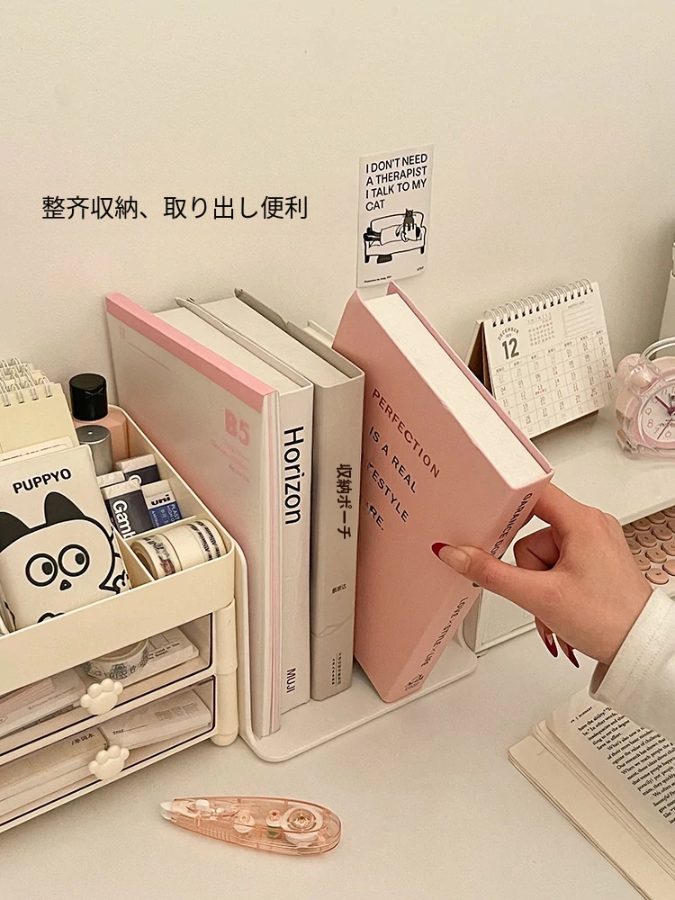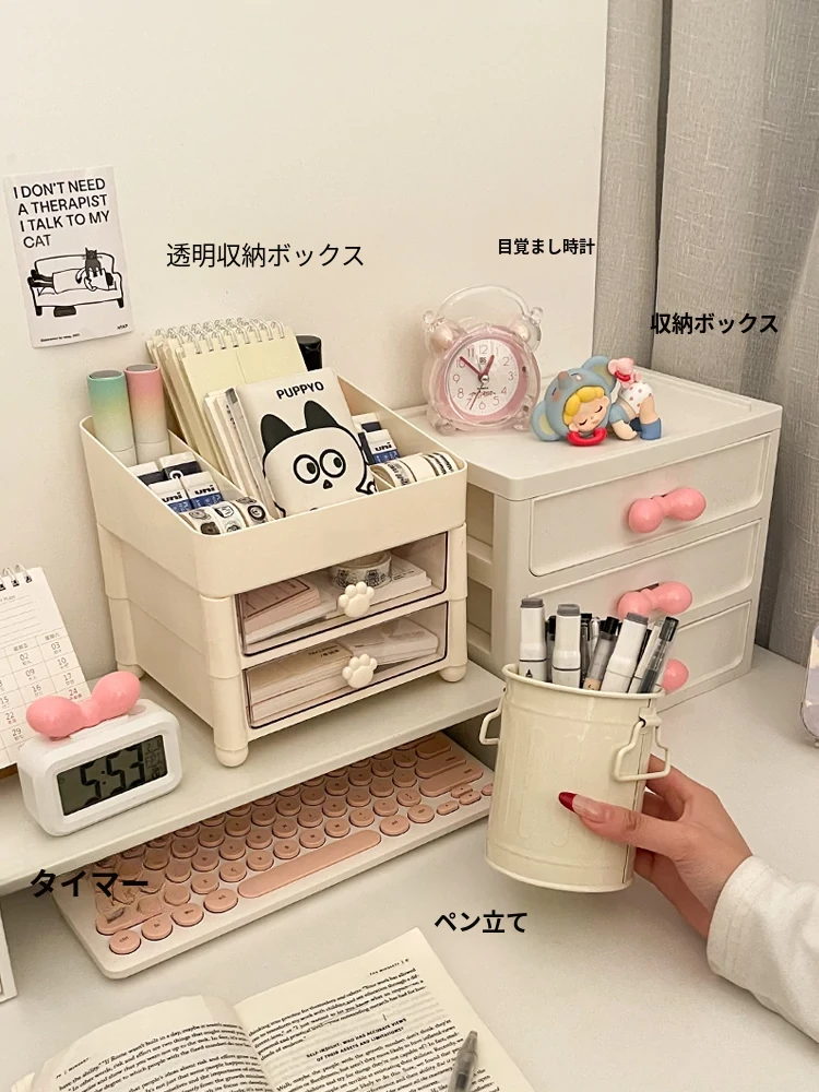 クリーム風デスク収納ボックス・ペン立て・時計・ブックエンド・学生寮やオフィスに最適!デスク周りをスッキリ整理できる便利アイテム。多機能でおしゃれな収納で、毎日をもっと快適に!