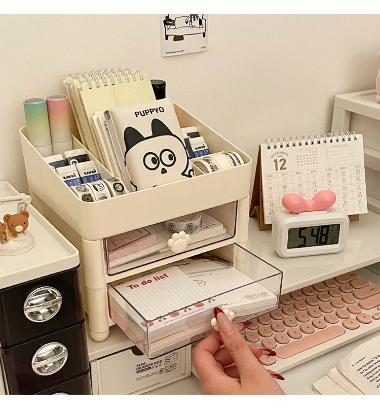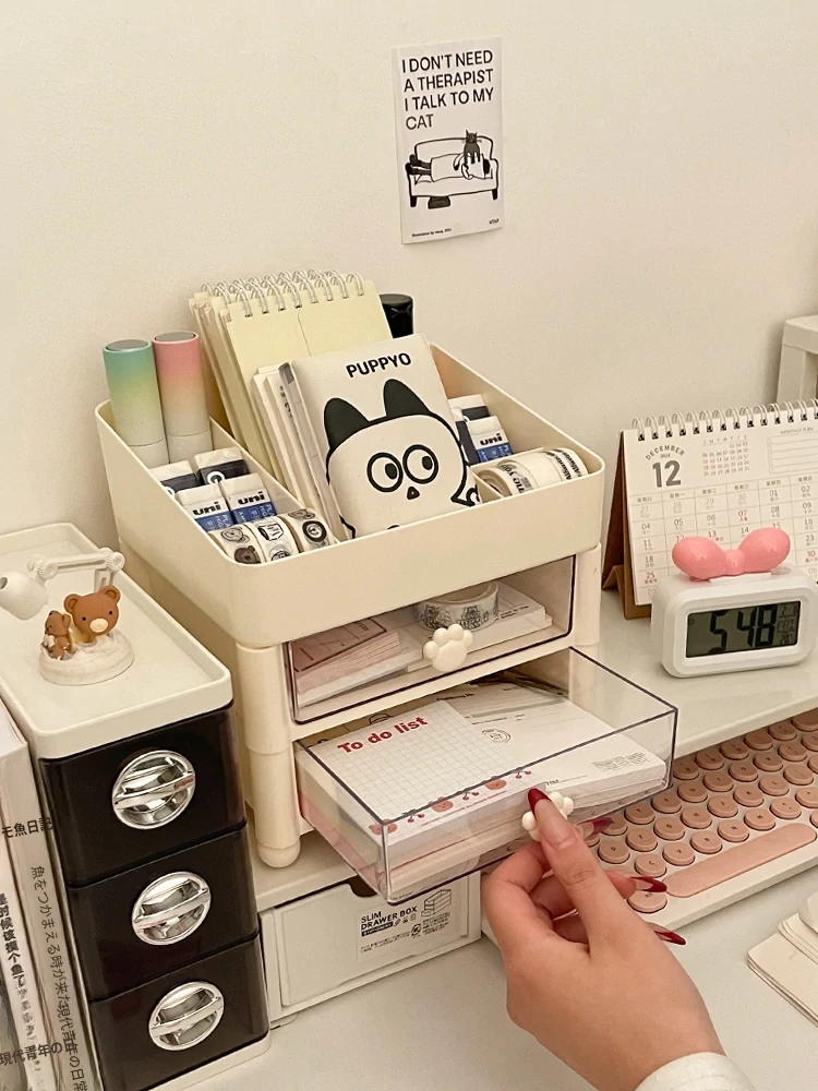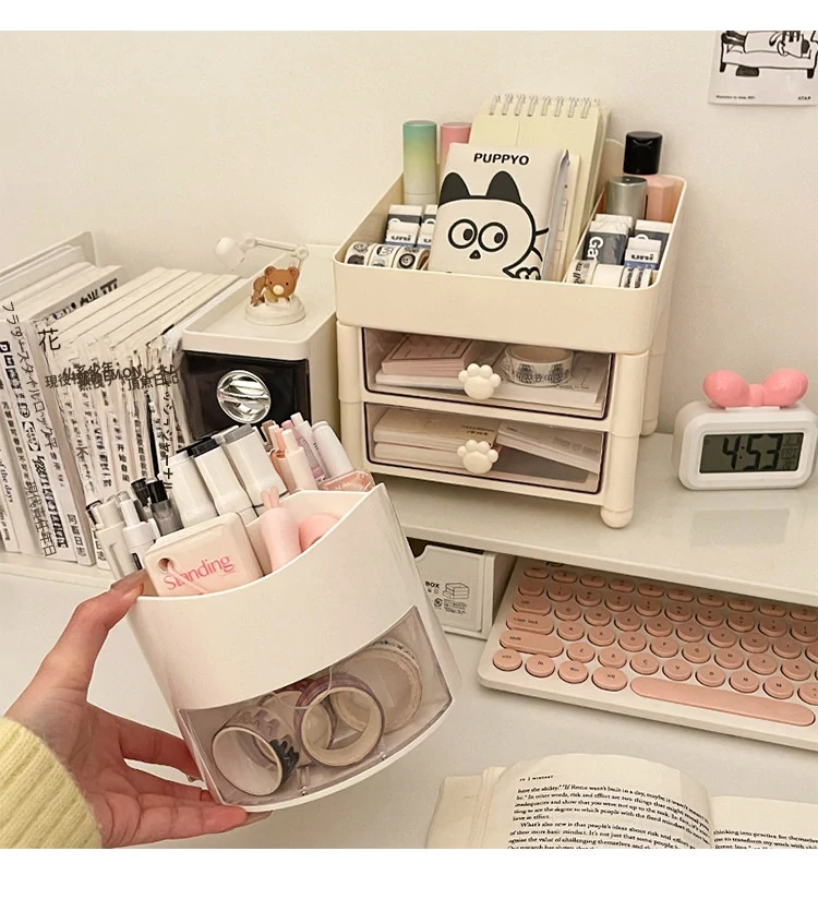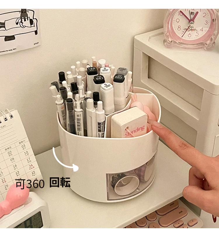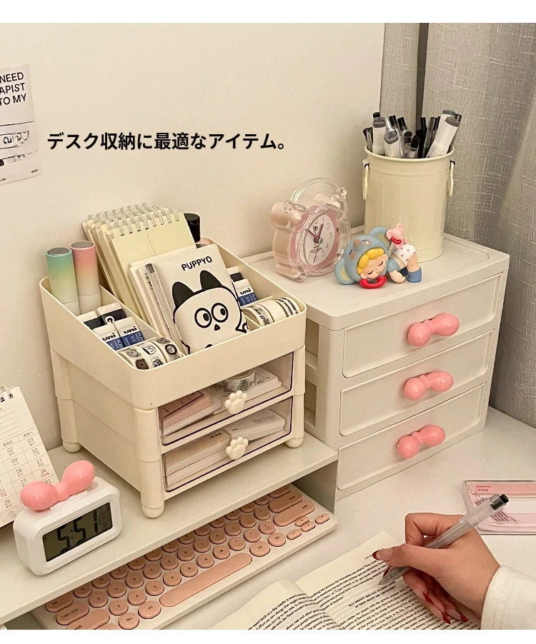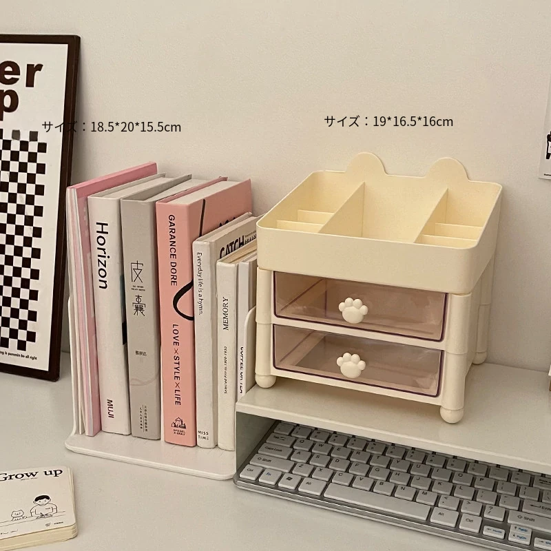 クリーム風デスク収納ボックス・ペン立て・時計・ブックエンド・学生寮やオフィスに最適!デスク周りをスッキリ整理できる便利アイテム。多機能でおしゃれな収納で、毎日をもっと快適に!
