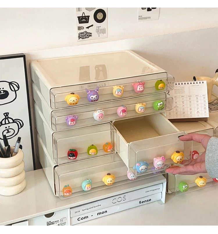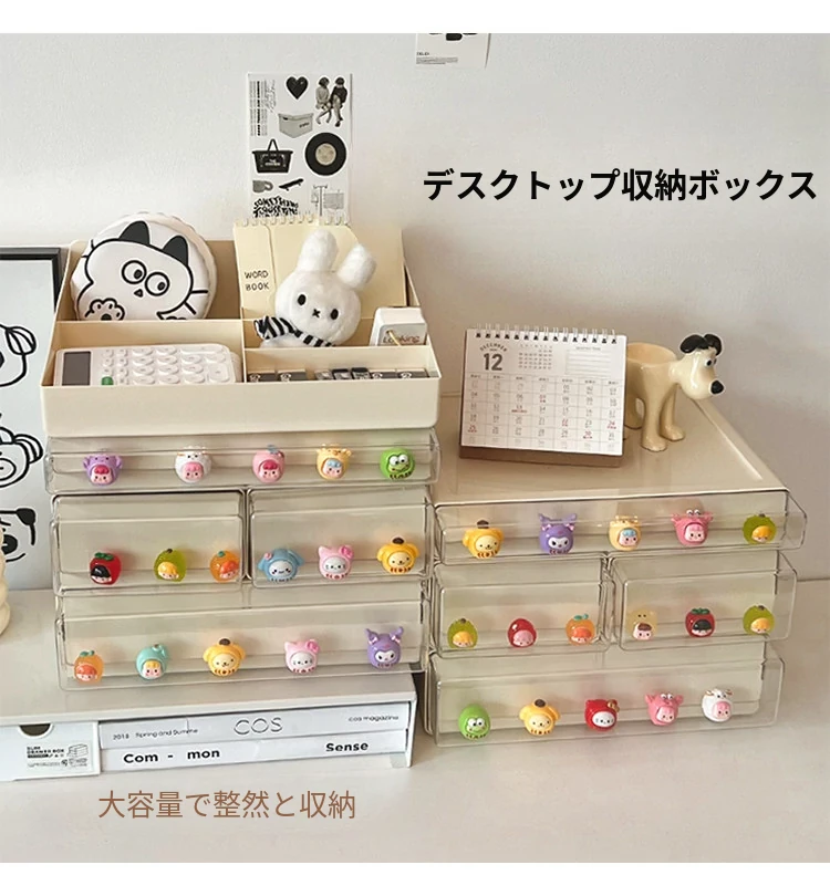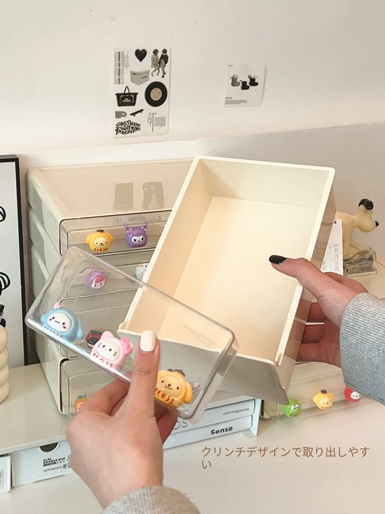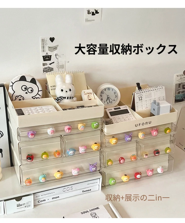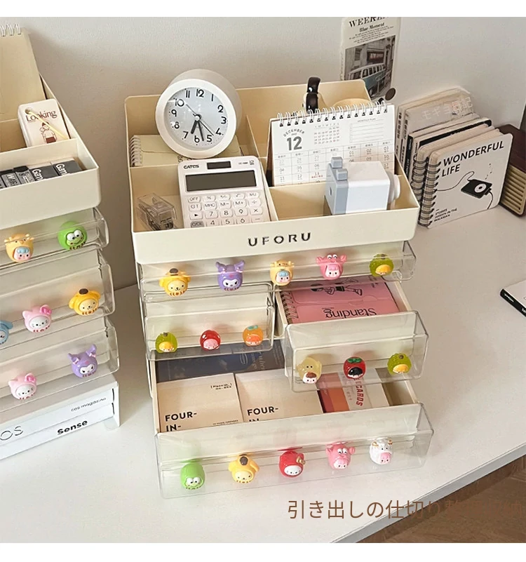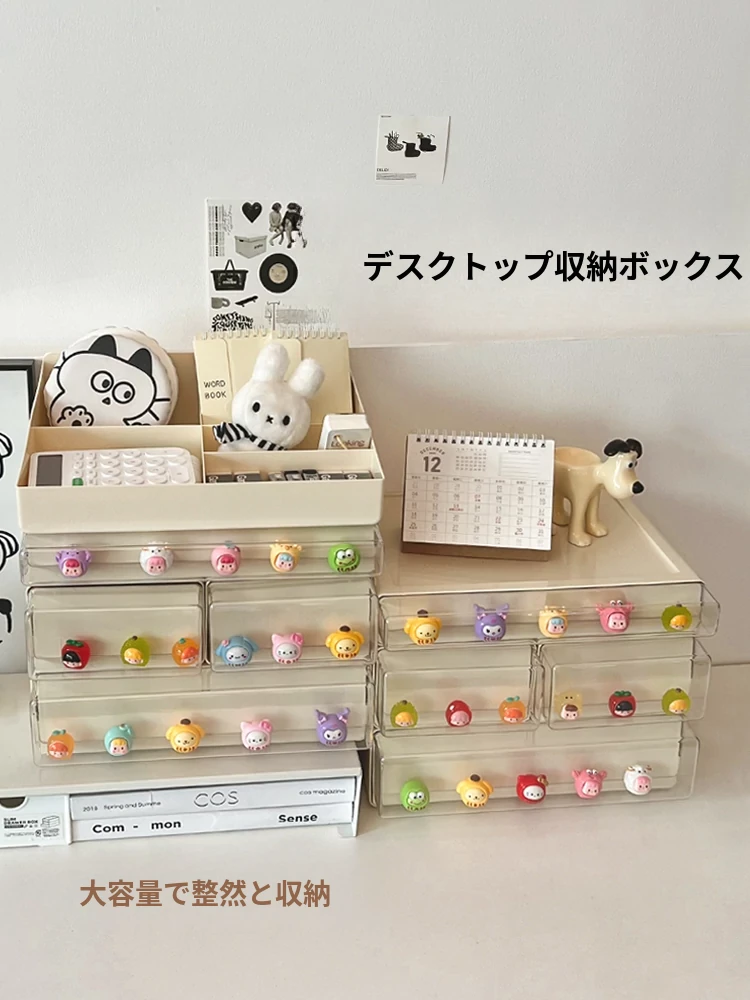クリーミーなデザインのデスク収納ボックス - 学生寮にぴったり!大容量の引き出し式で文房具やフィギュアをすっきり整理。多機能で使いやすい、あなたの学びをサポートします!