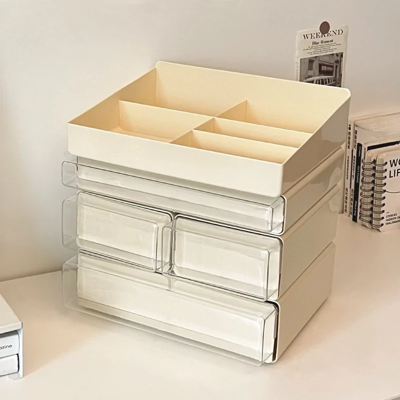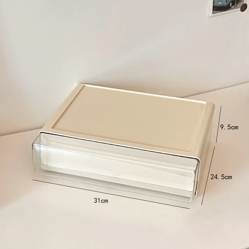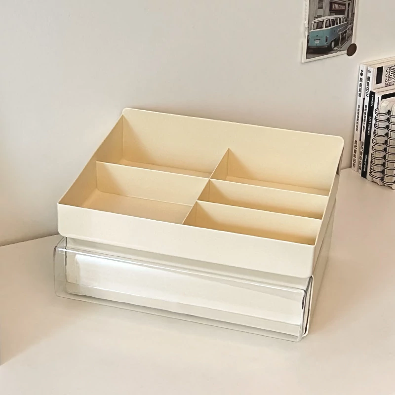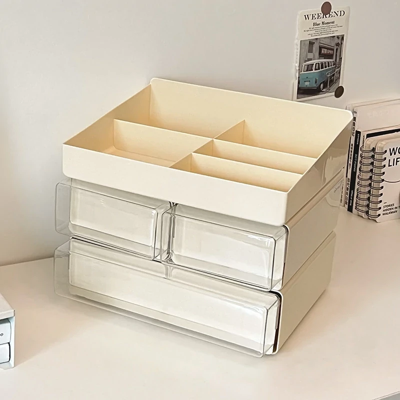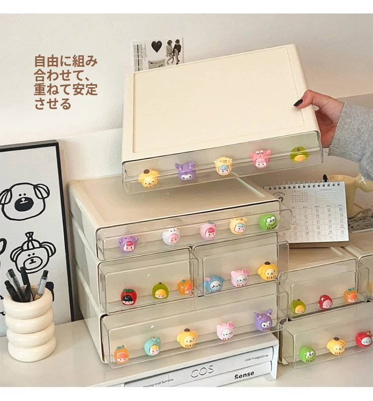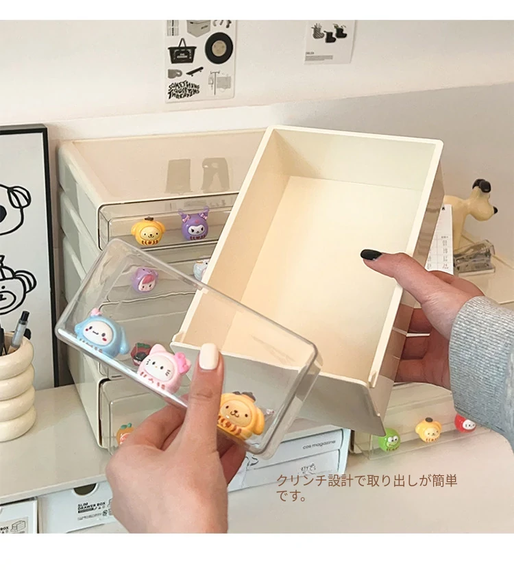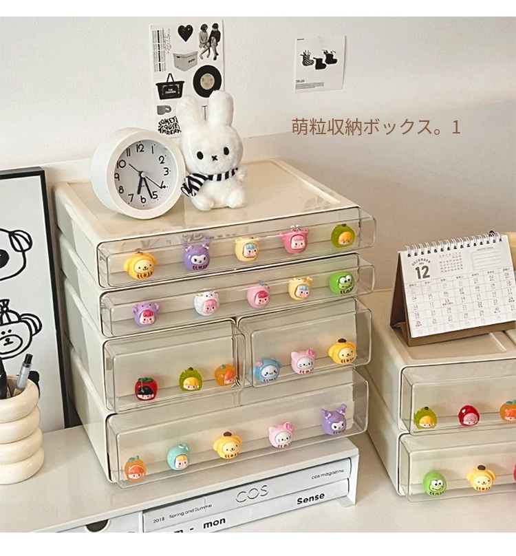 クリーミーなデザインのデスク収納ボックス - 学生寮にぴったり!大容量の引き出し式で文房具やフィギュアをすっきり整理。多機能で使いやすい、あなたの学びをサポートします!
