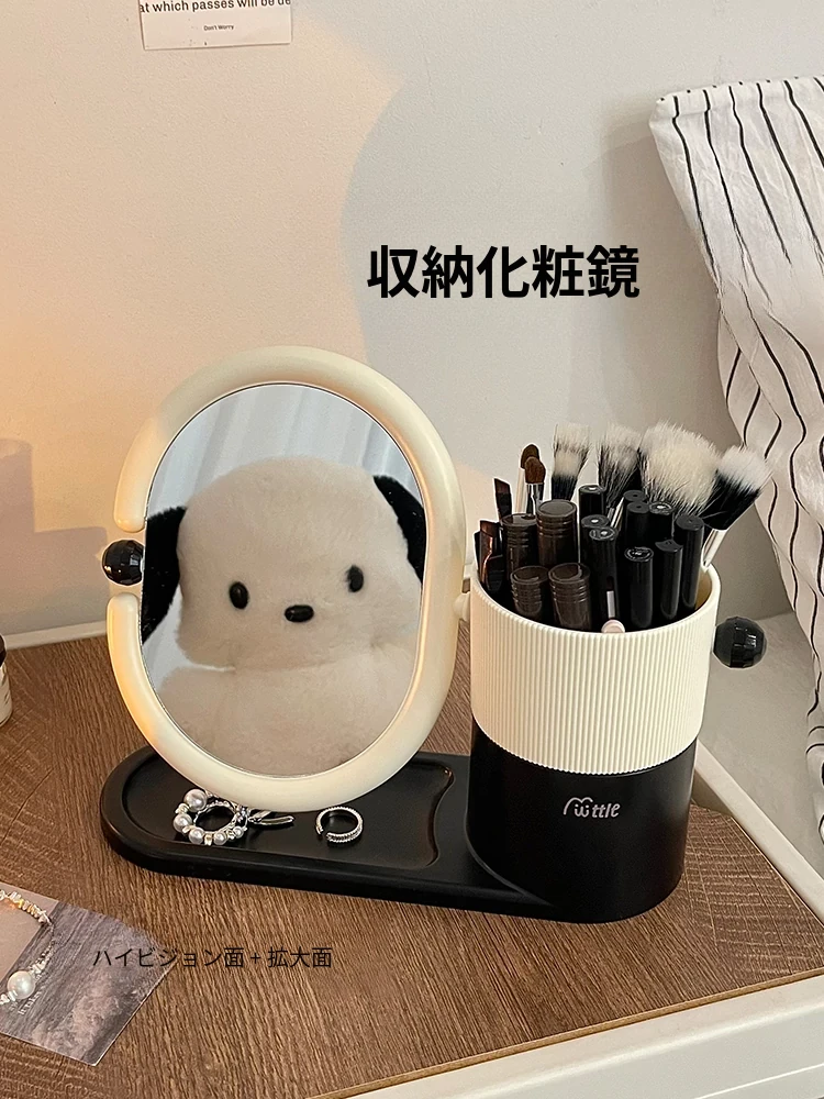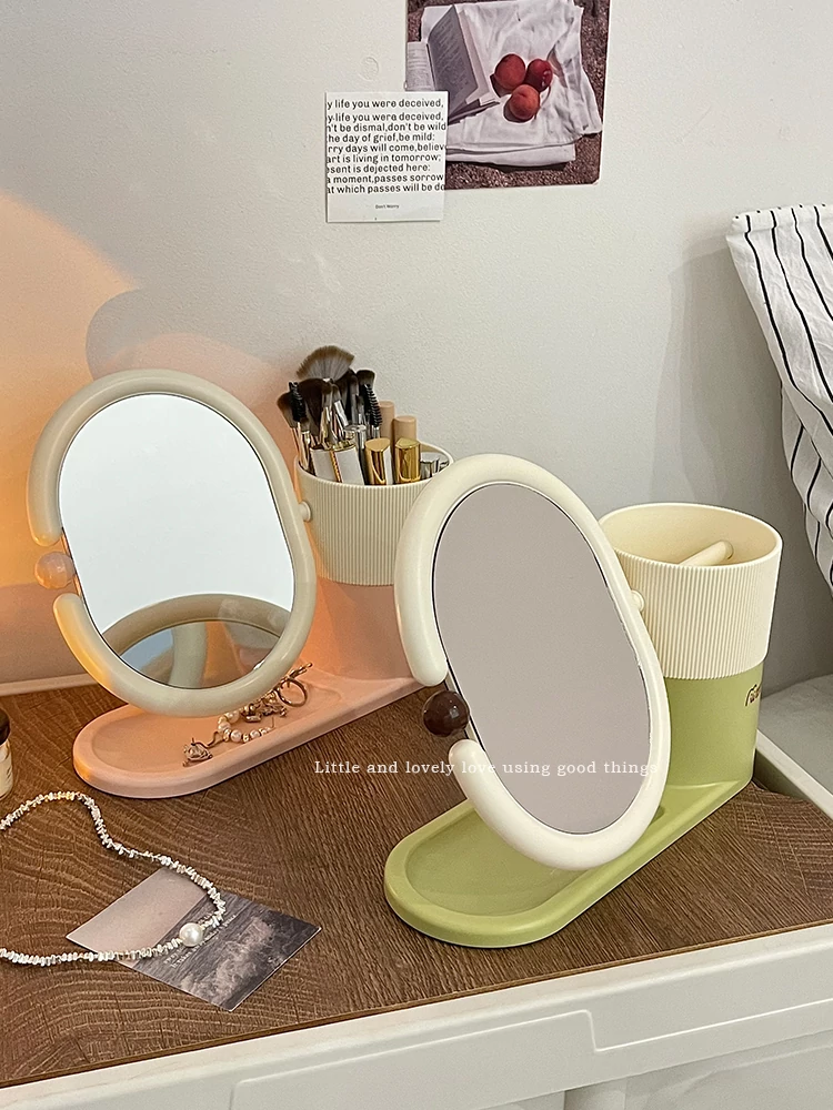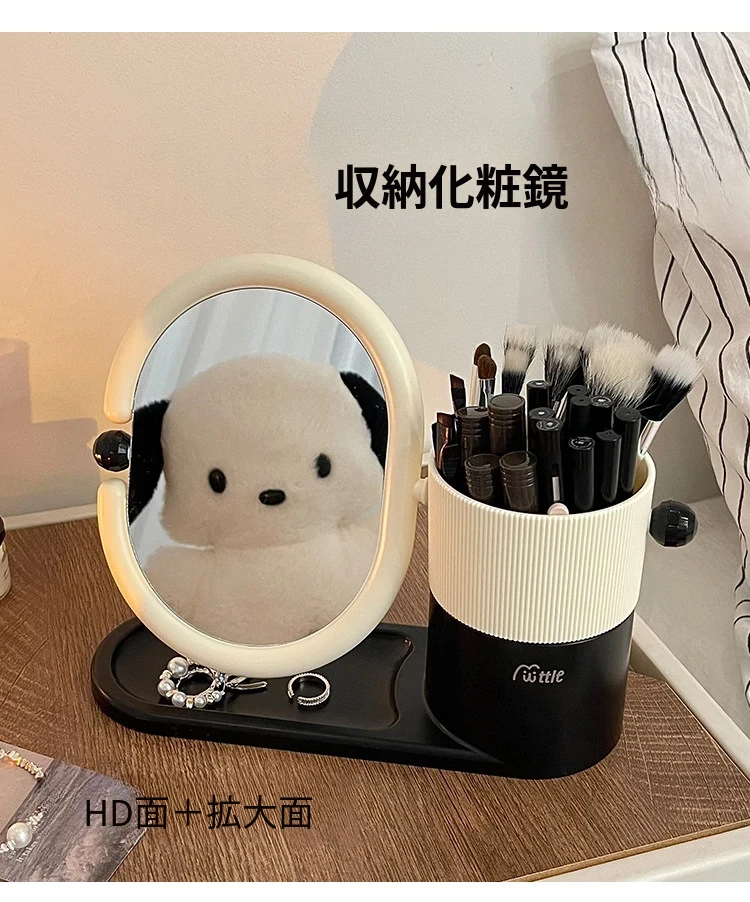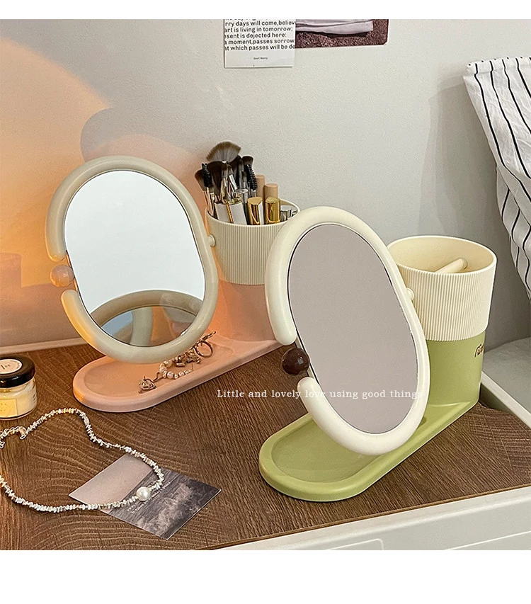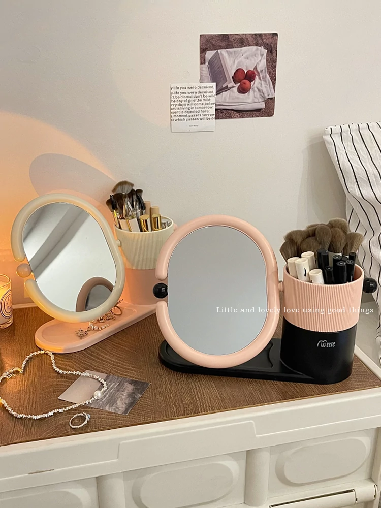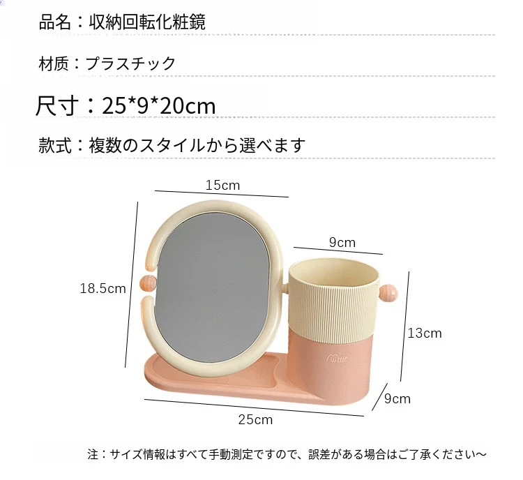 クリームカラーのメイクブラシ収納ケース+両面回転式化粧鏡!大学生の寮にぴったりなデスク整理スタンドで、スッキリとしたおしゃれ空間を実現!あなたのメイクアップを一段と楽しく!