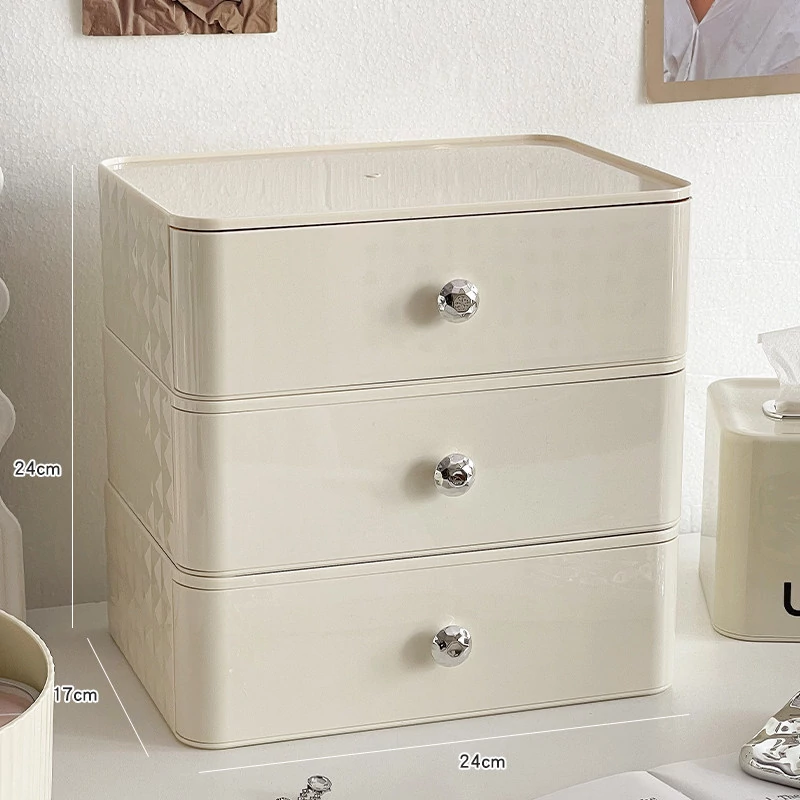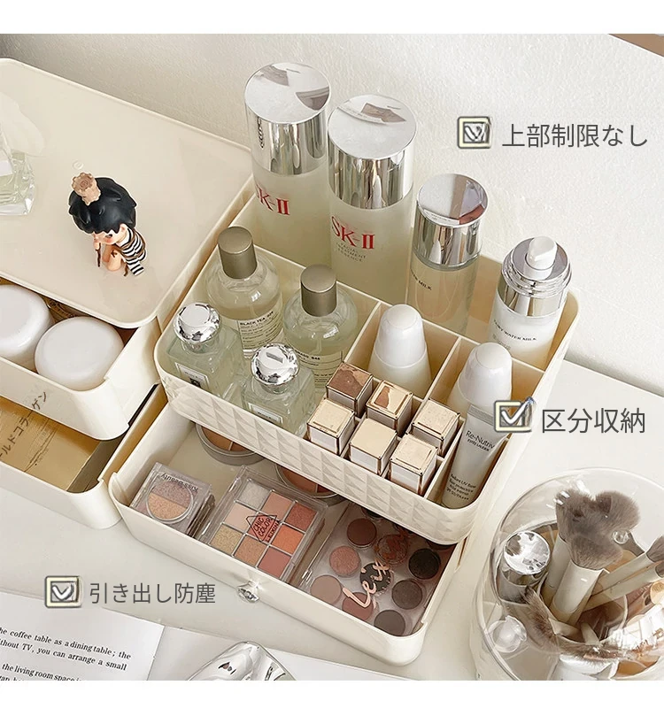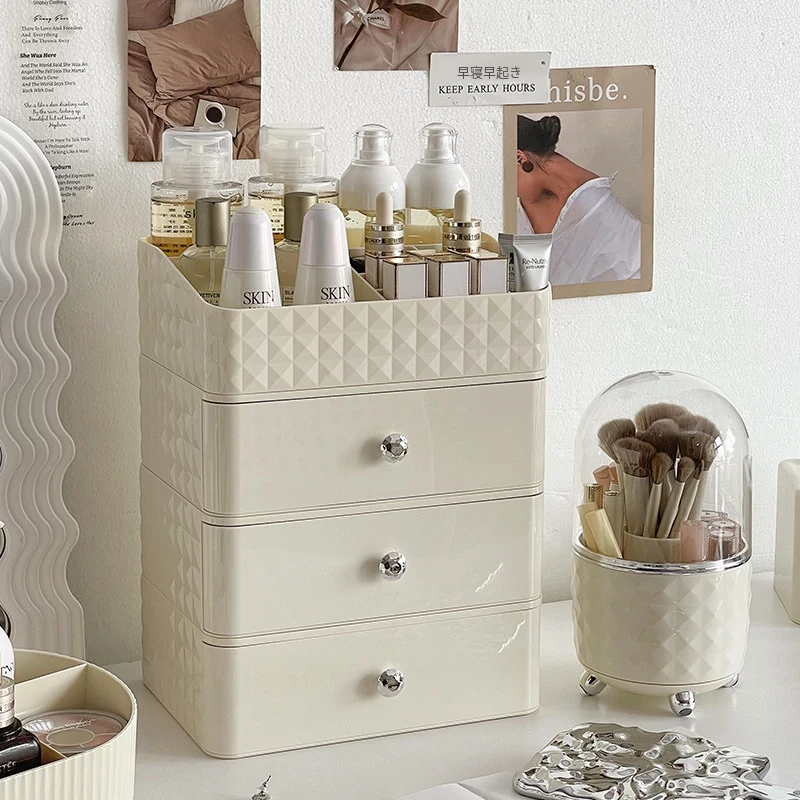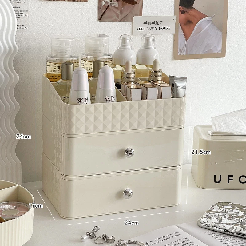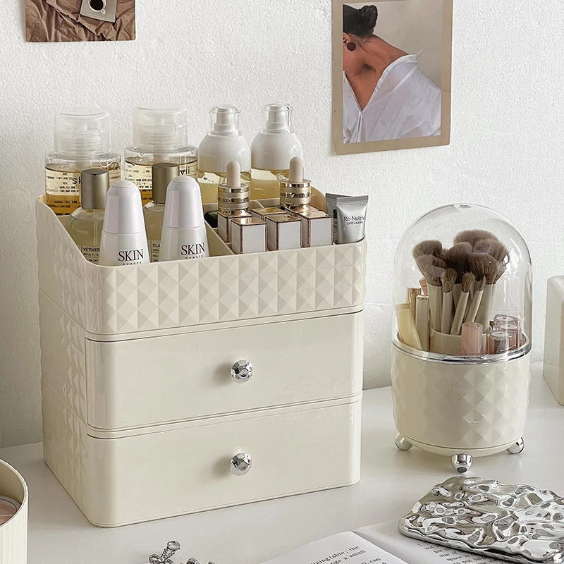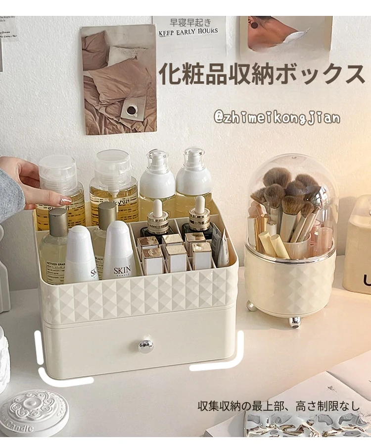 クリーム風化粧品収納ボックス デスクトップメイクブラシ引き出し式化粧台 学生寮向け スキンケアアイテム収納ラック - スタイリッシュで整理整頓が簡単、あなたの美しさを引き立てる必須アイテム!