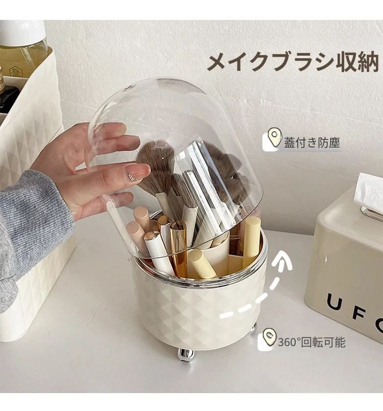 クリーム色引き出し収納ボックス1個+トップグレード+メイクブラシ筒