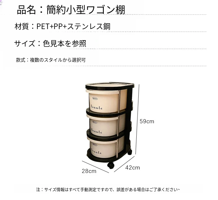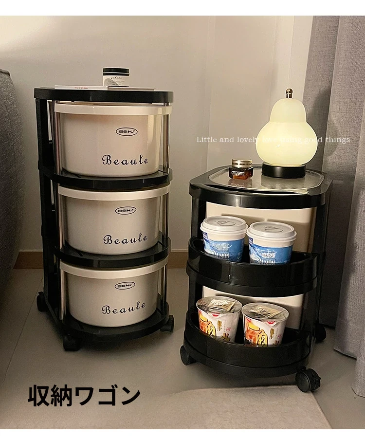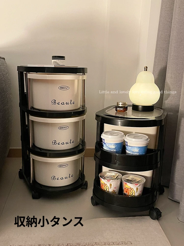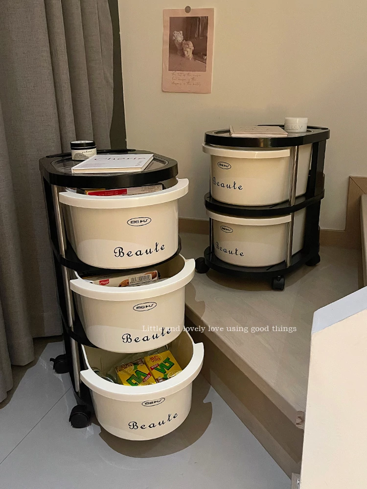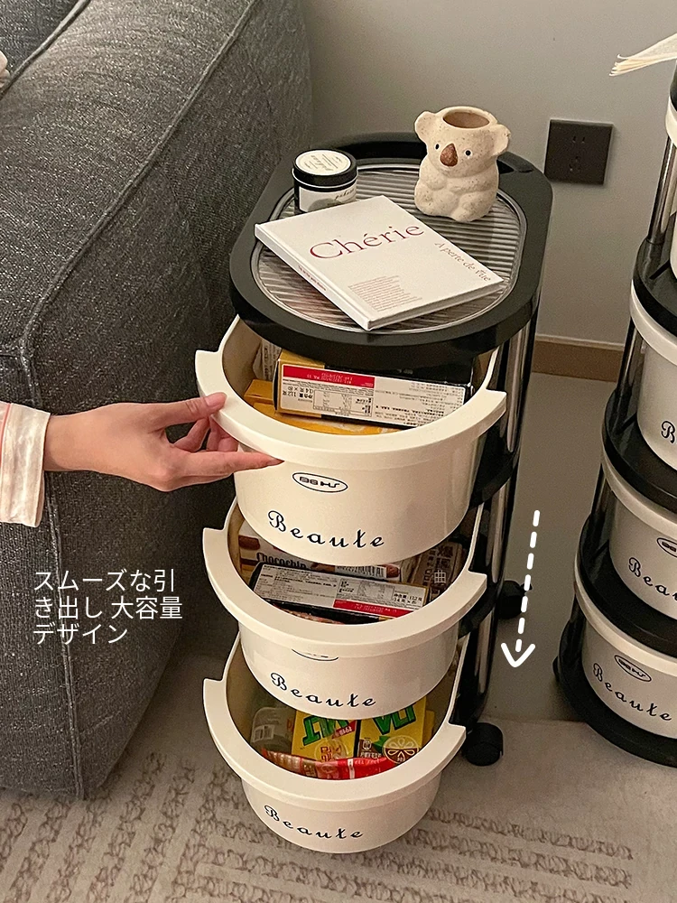 クリーム風の小型カート収納ラック 大容量!リビングや寝室のベッドサイドに最適な引き出し式整理キャビネット お菓子や飲み物の収納にぴったり!