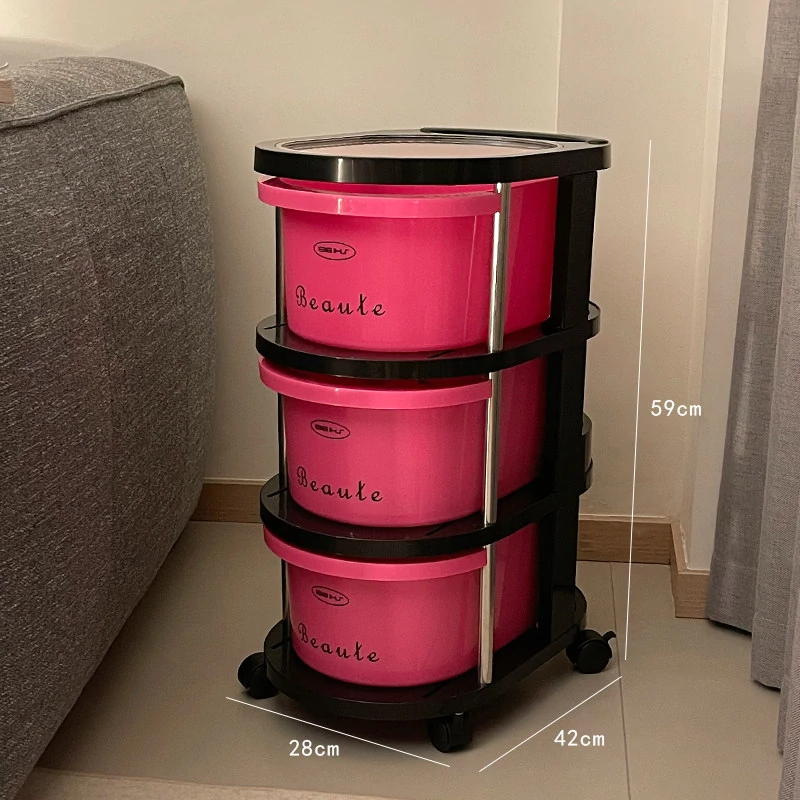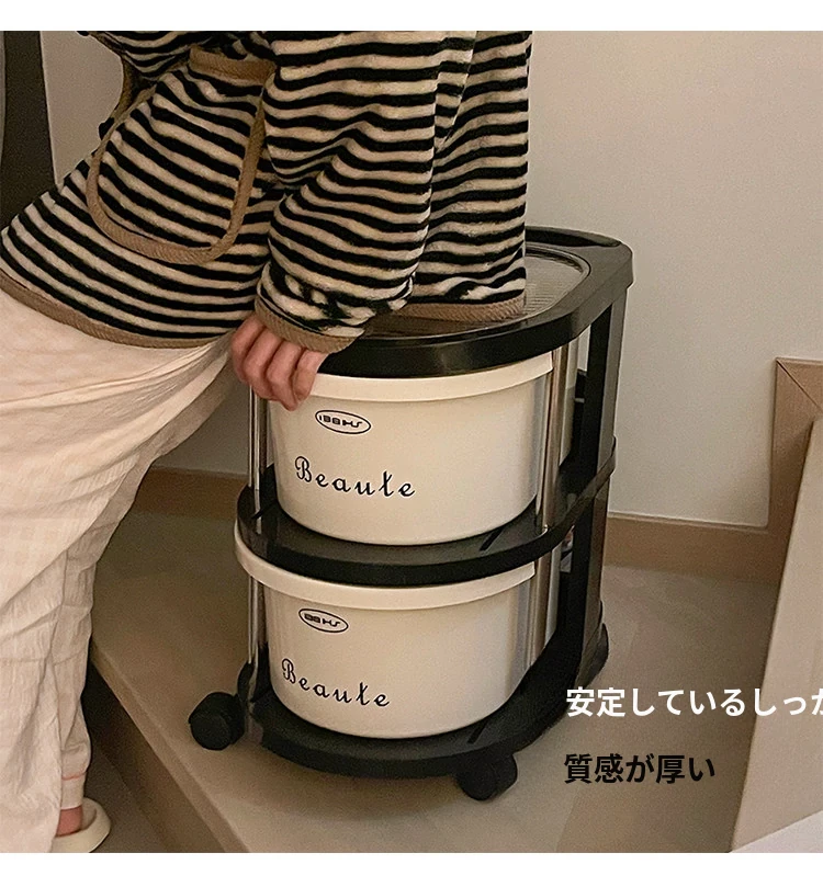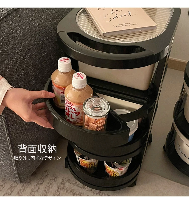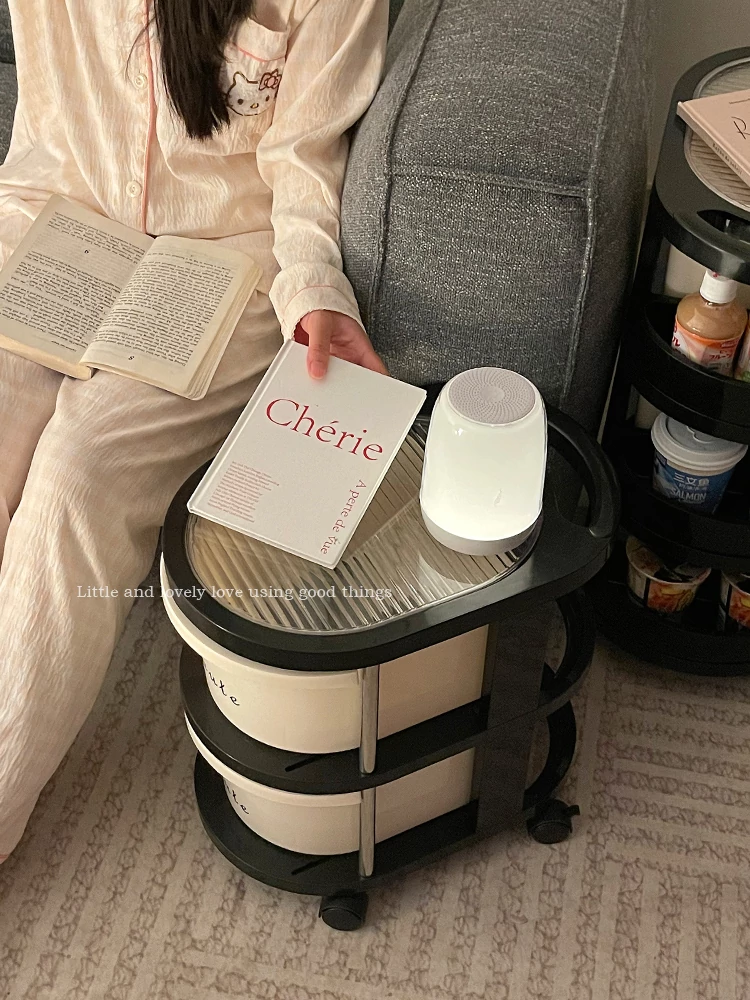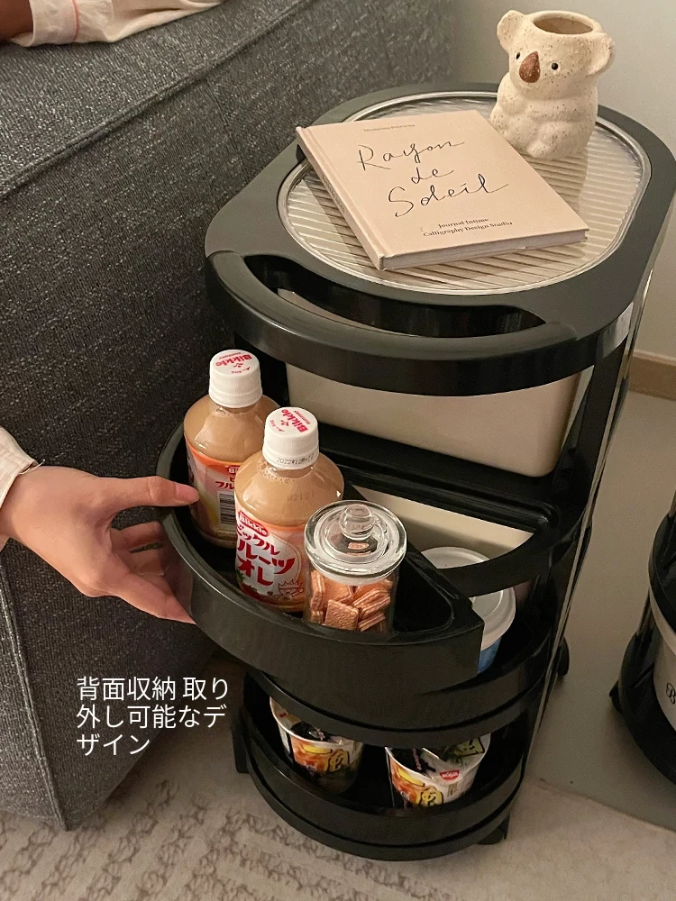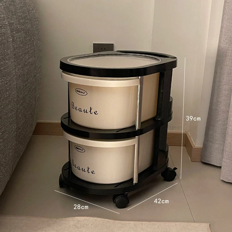 クリーム風の小型カート収納ラック 大容量!リビングや寝室のベッドサイドに最適な引き出し式整理キャビネット お菓子や飲み物の収納にぴったり!