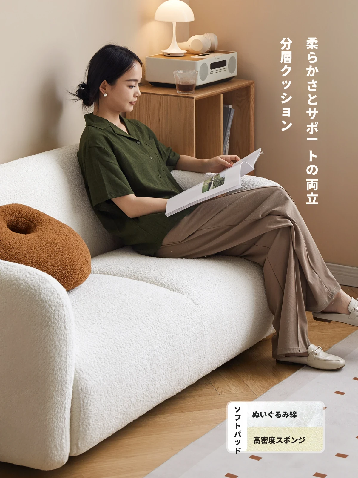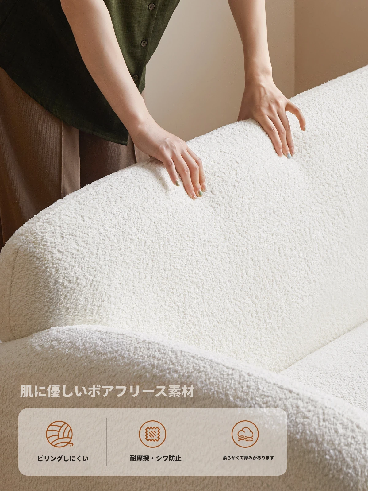 【快适自由!】ヴィシャファブリック3人掛けソファ - 小型家庭用、北欧風アイボリーシープボア、モダンで暖かく、コンパクトなリビングに最適!