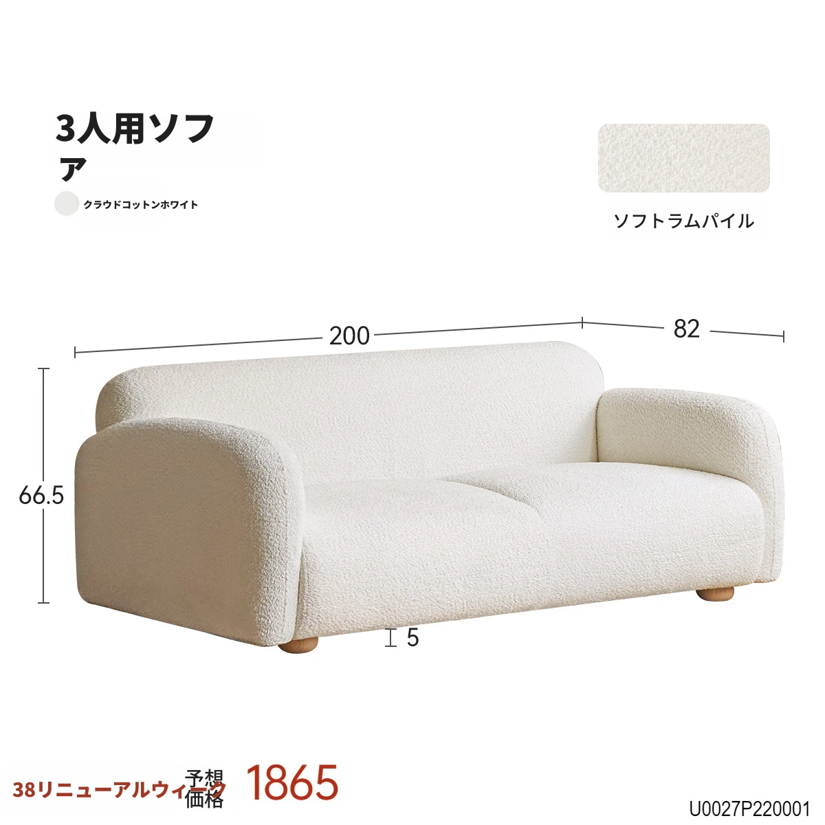 3人掛けソファ【クラウドコットンホワイト】(2000*820*665mm)