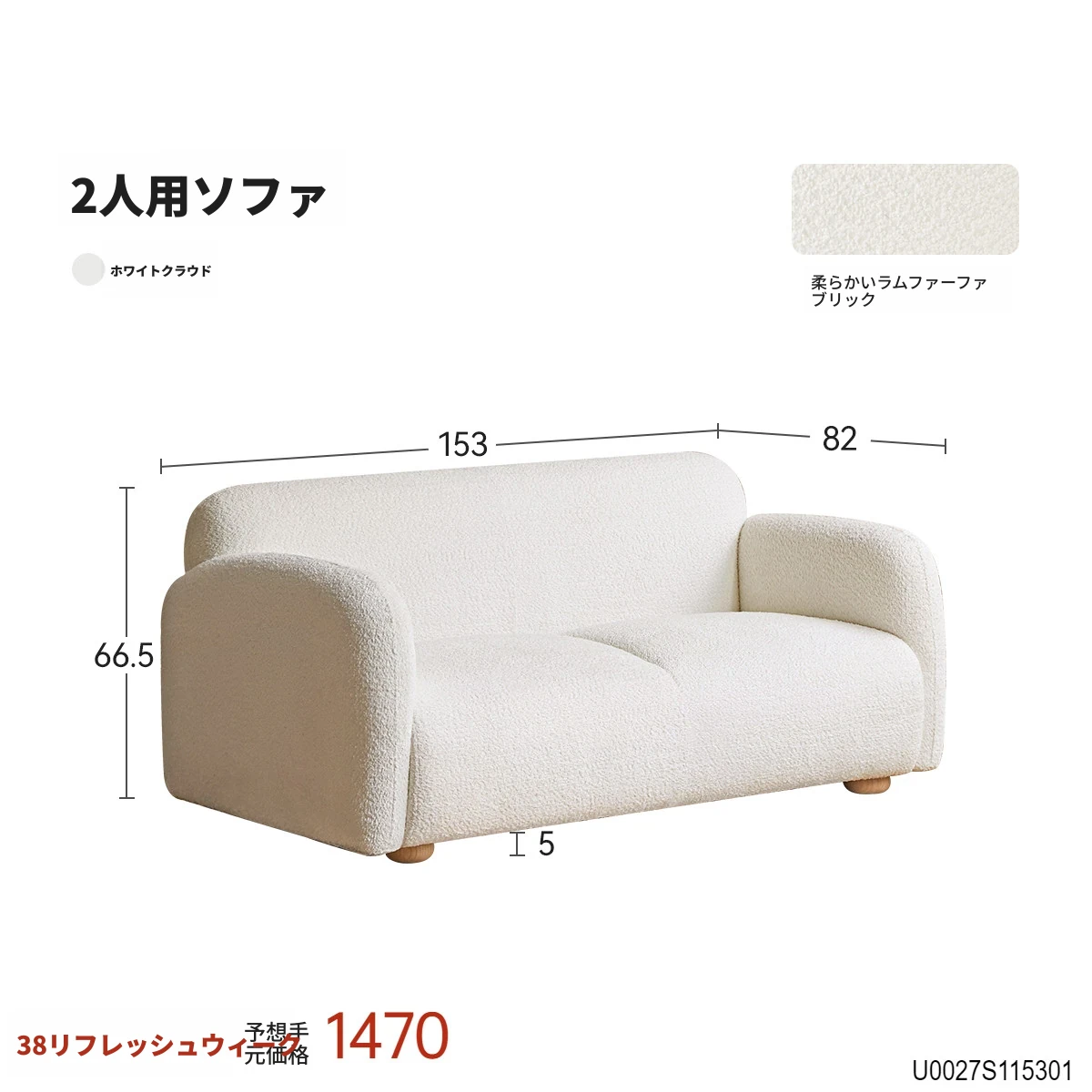 2人掛けソファ【クラウドコットンホワイト】(1530*820*665mm)