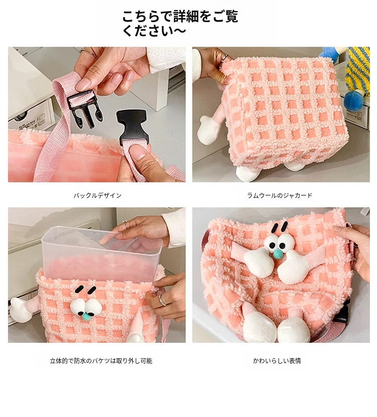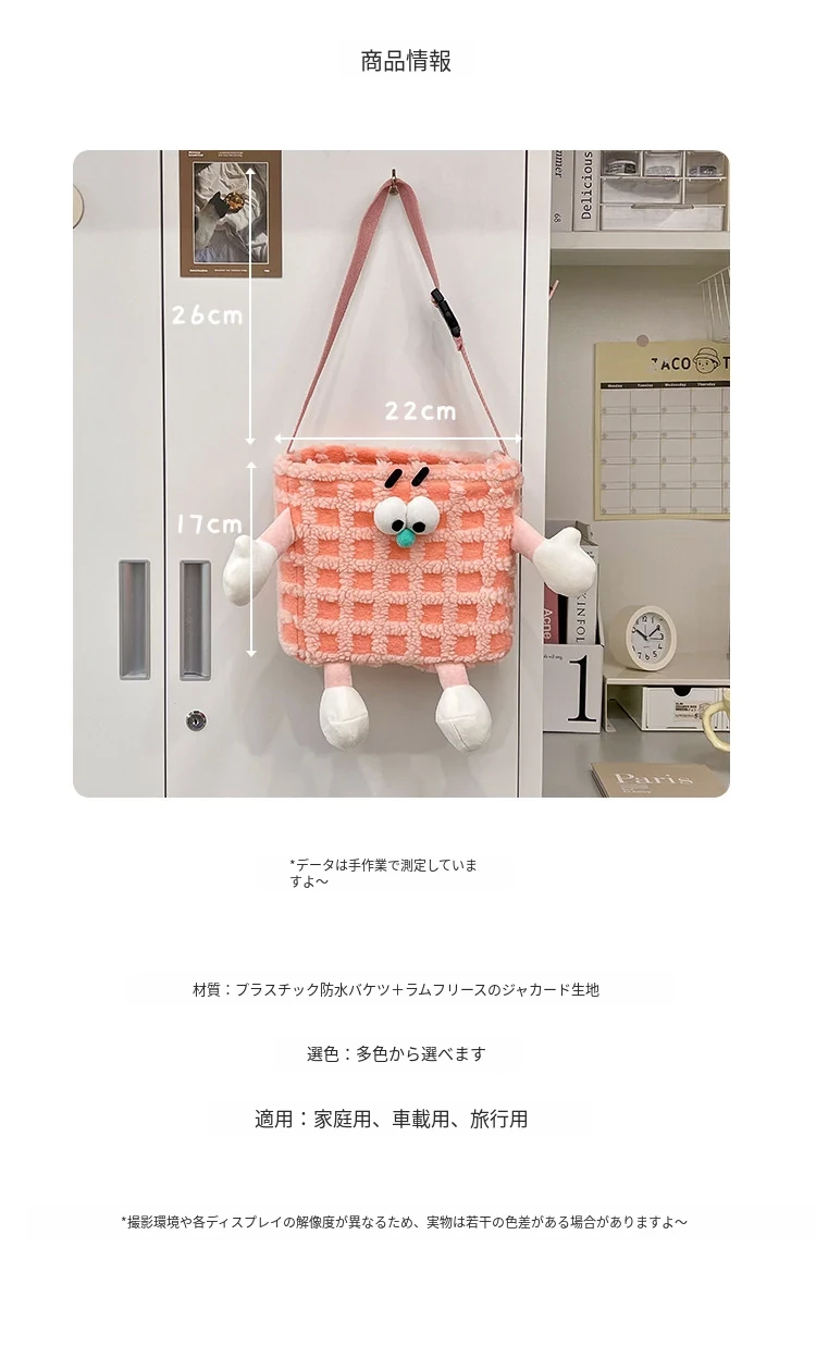 かわいいカートゥーン収納ハンギングポケット - 寮生活にぴったり!壁掛け式でベッドサイドやドア裏に便利に取り付けられ、小物をスッキリ整理!お部屋を可愛く彩るアイテムです。