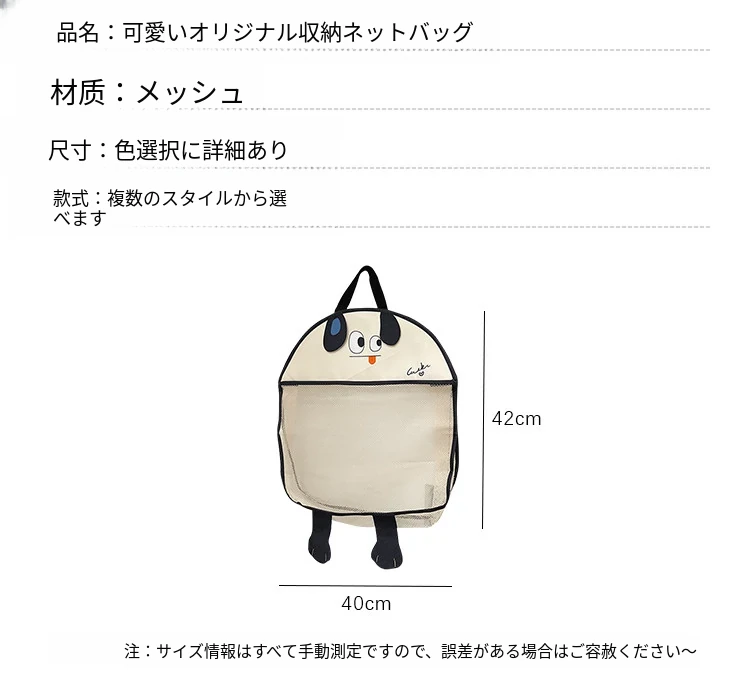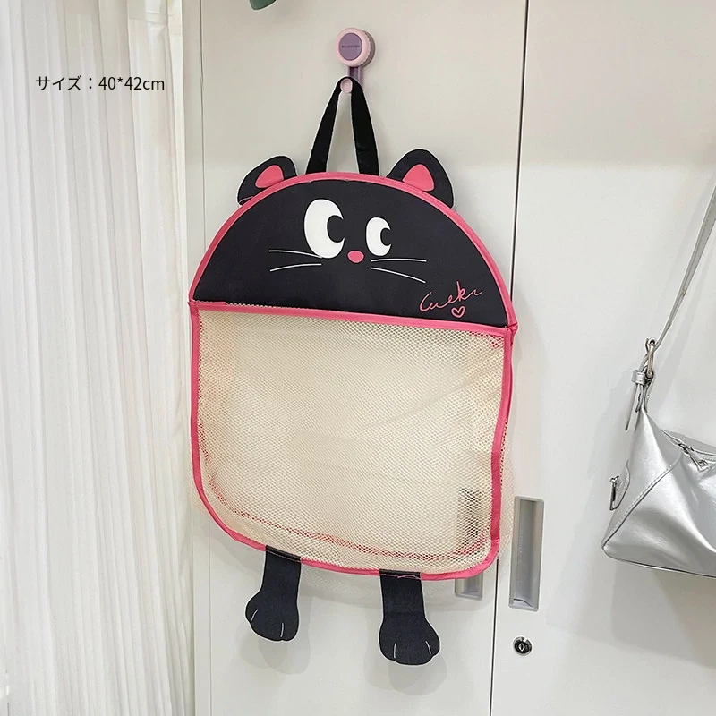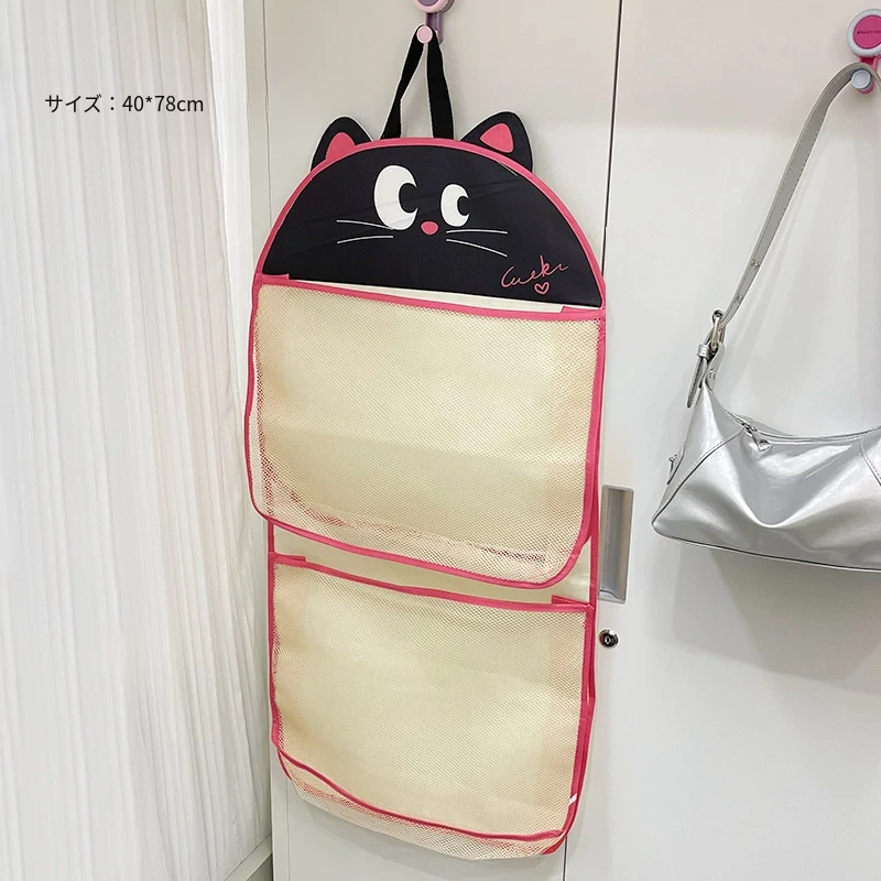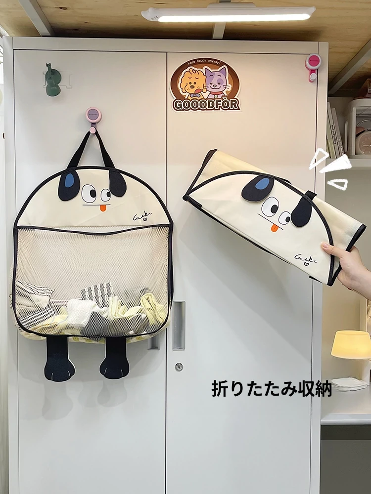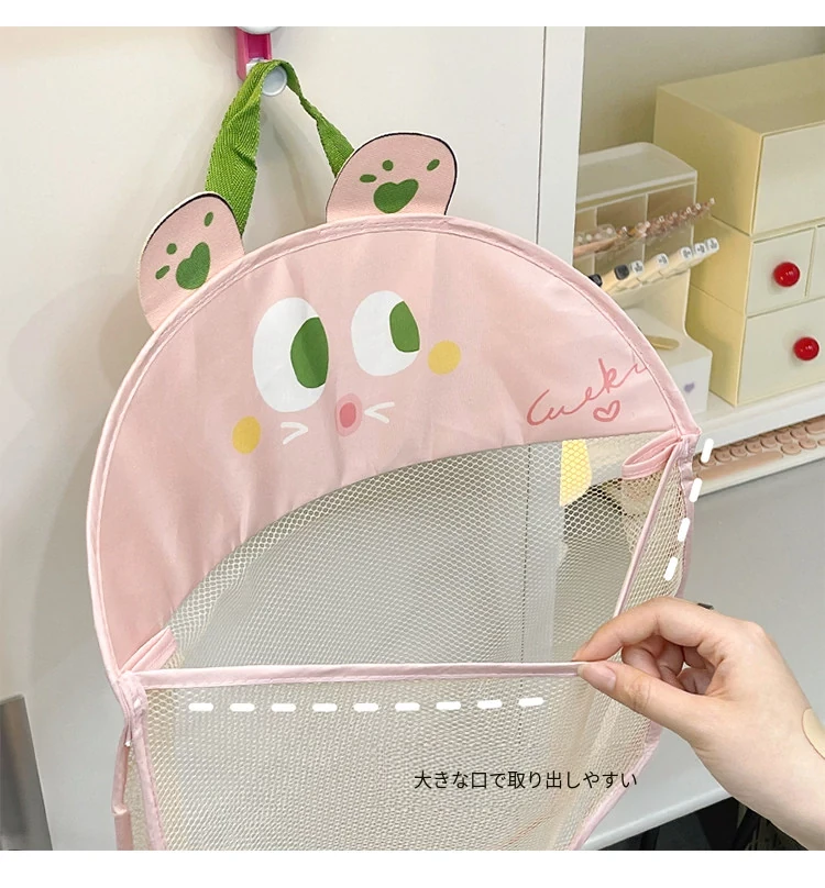 かわいいデザインの壁掛け収納ポケット - 寮生活をもっと便利に!ドアの裏やベッドサイド、壁やクローゼットにぴったり。靴下やおもちゃをスッキリ整理できるネットバッグタイプ。