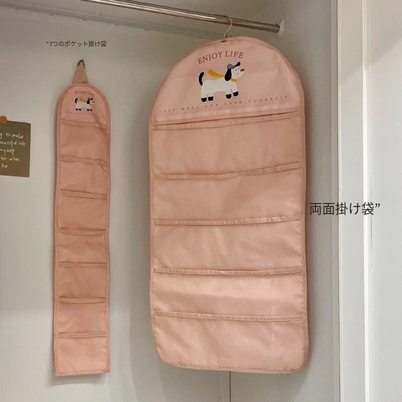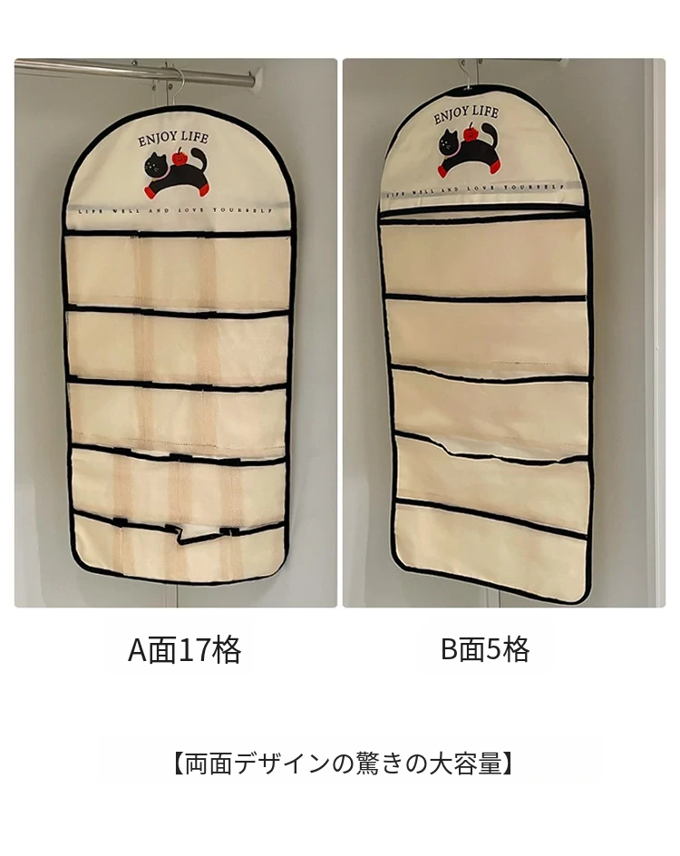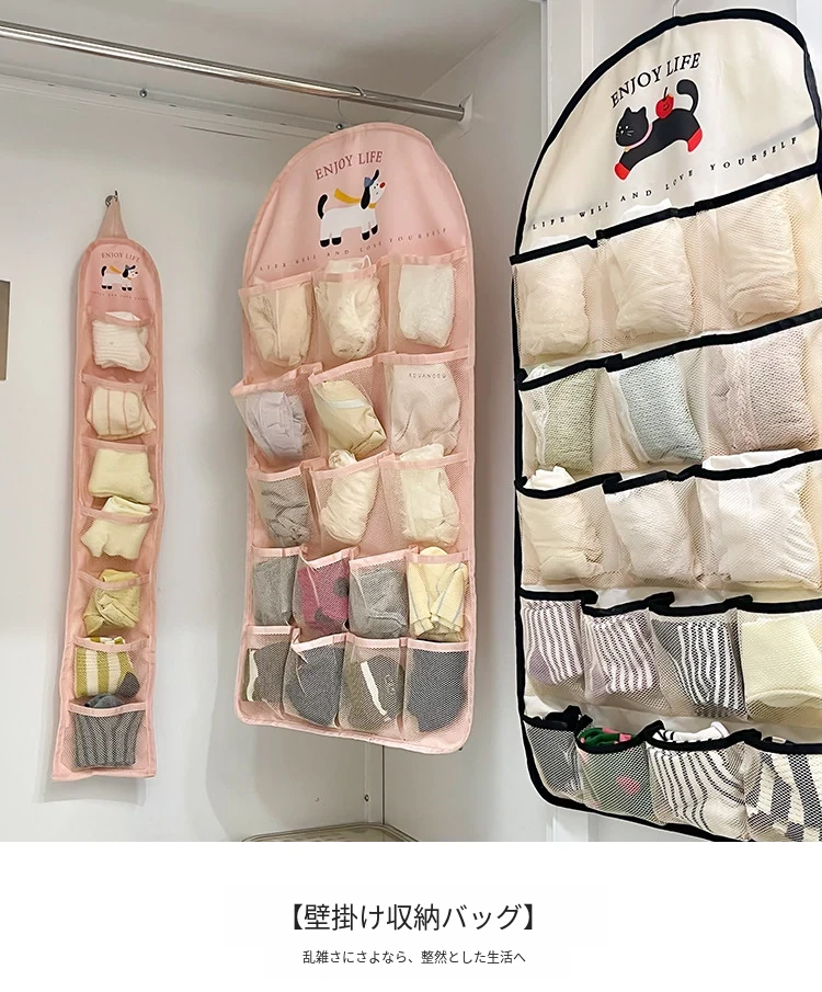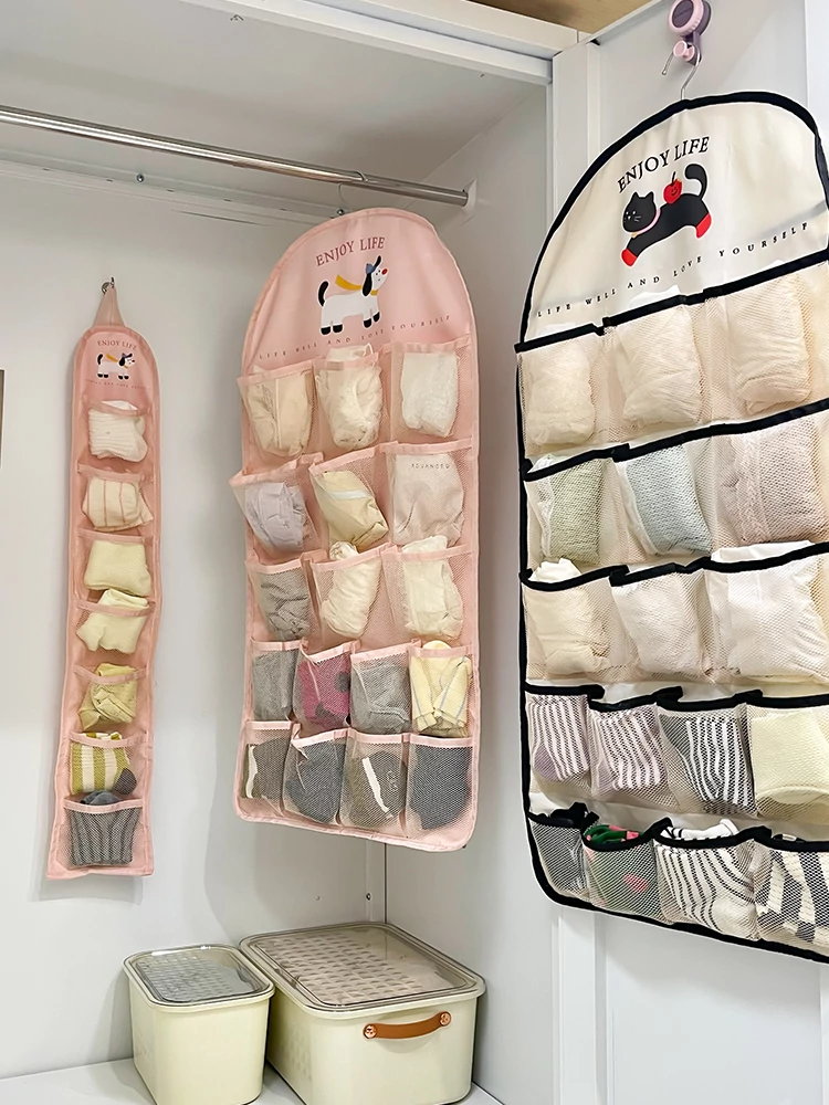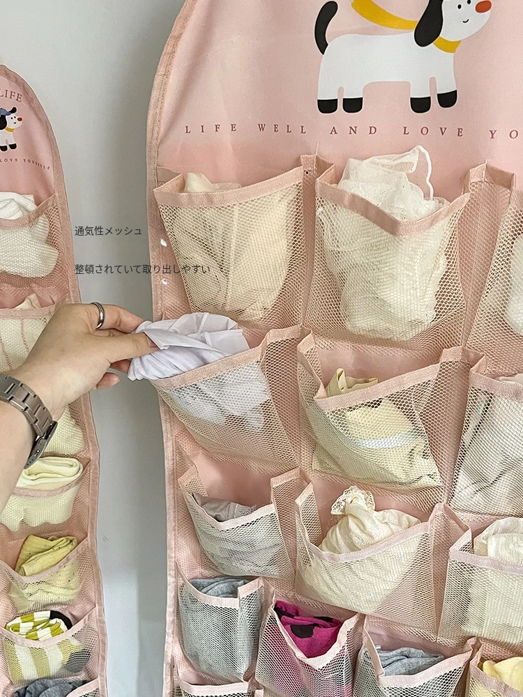 かわいい両面収納バッグ!クローゼットや寮での下着、靴下、ブラジャーをスッキリ整理!吊り下げ式で省スペース、便利でおしゃれな収納ネットバッグです。