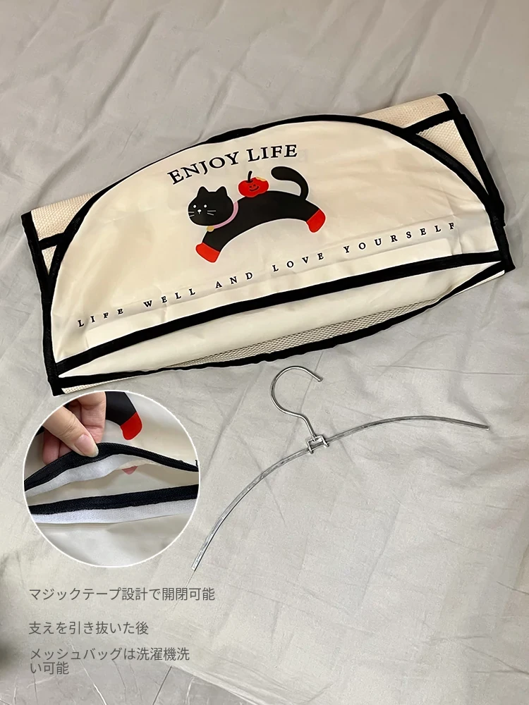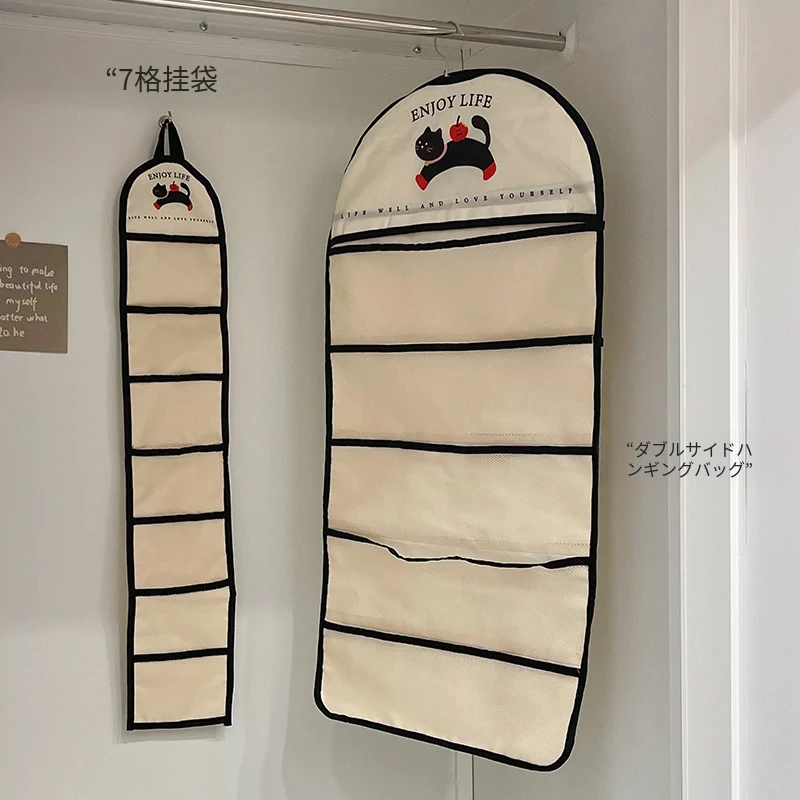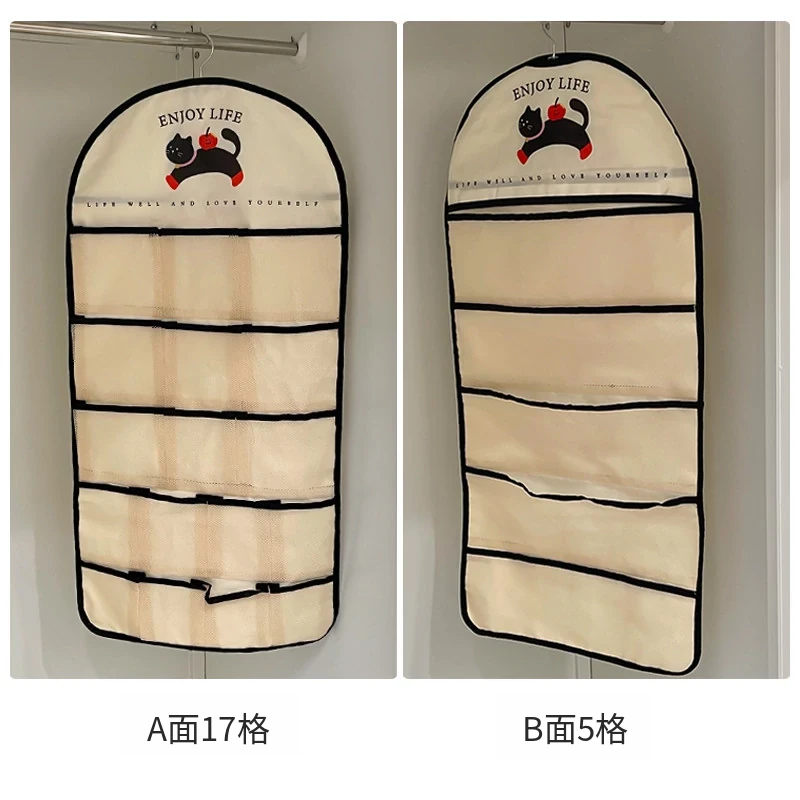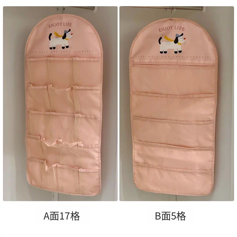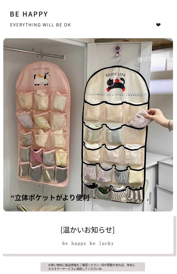 かわいい両面収納バッグ!クローゼットや寮での下着、靴下、ブラジャーをスッキリ整理!吊り下げ式で省スペース、便利でおしゃれな収納ネットバッグです。