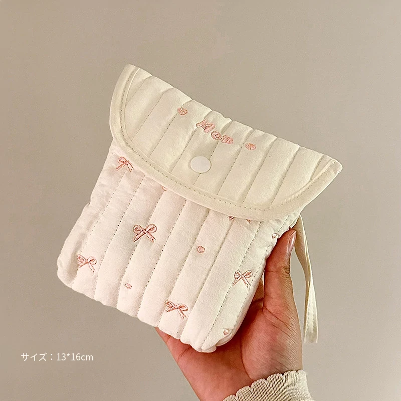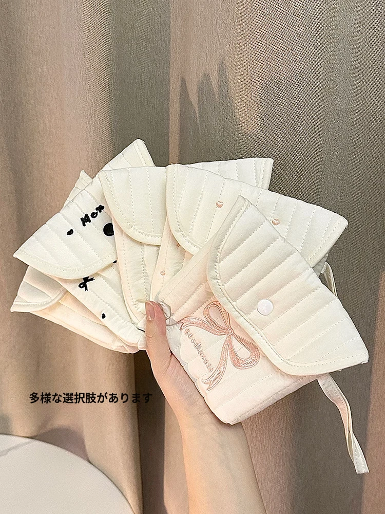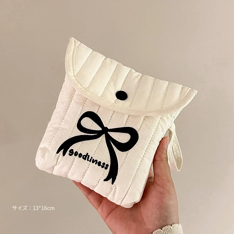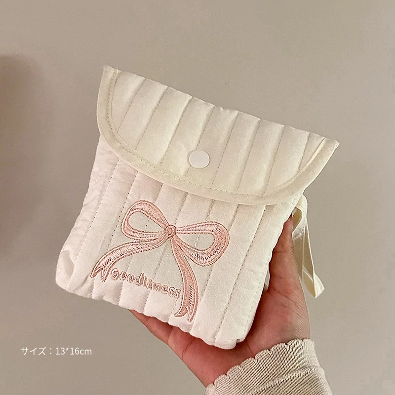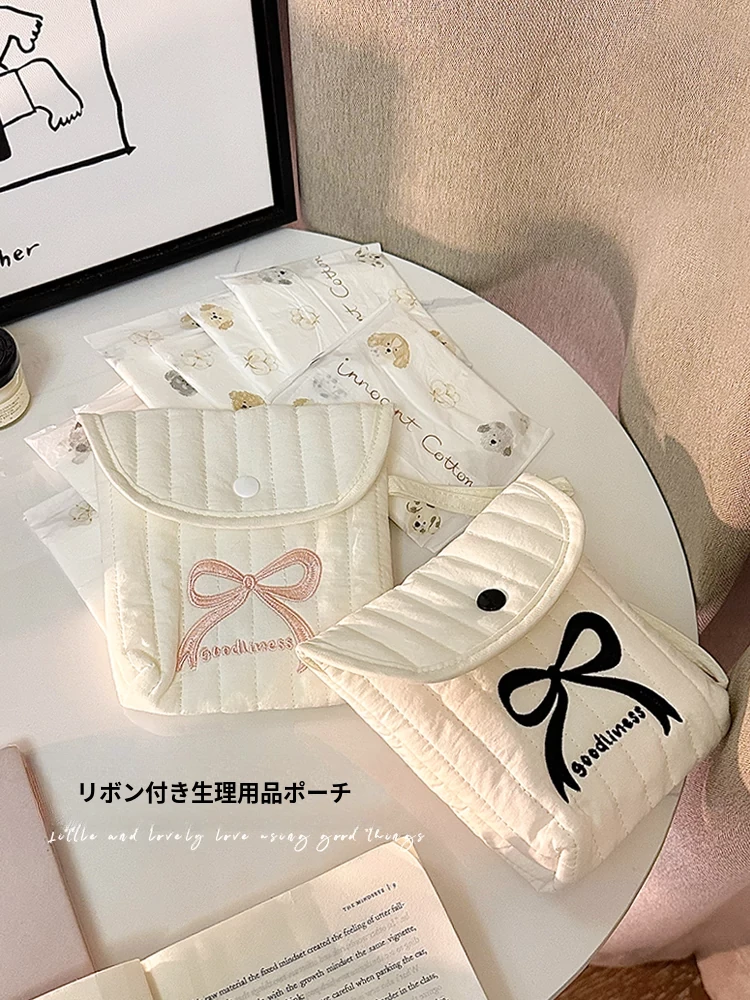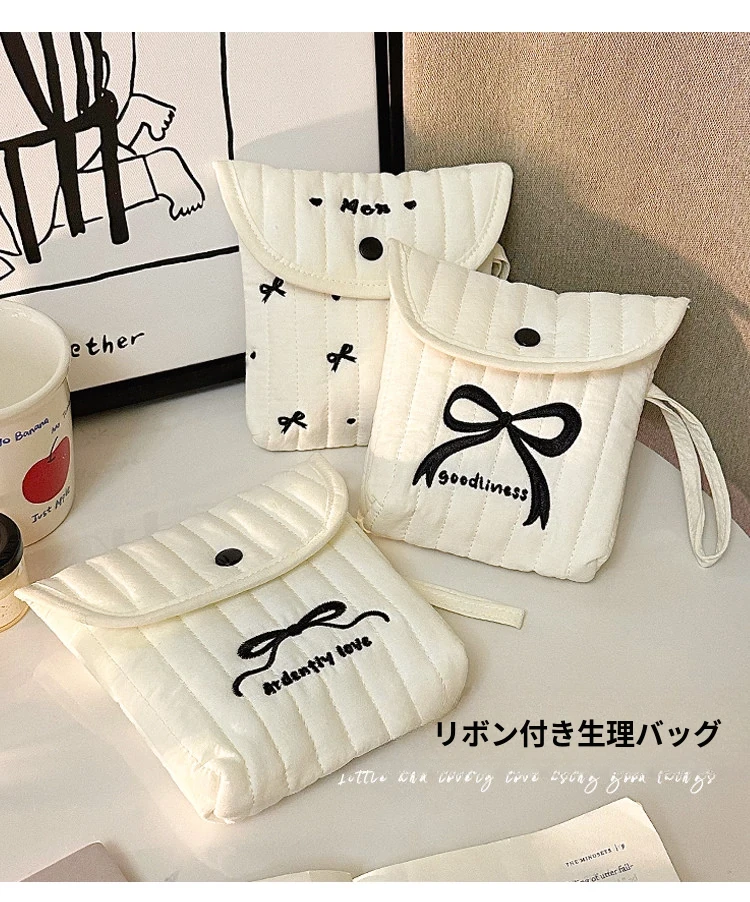 愛らしいハート型リボンの生理用品収納ポーチ|大容量&持ち運びに便利!女性にぴったりなコンパクトな月経ポーチ。