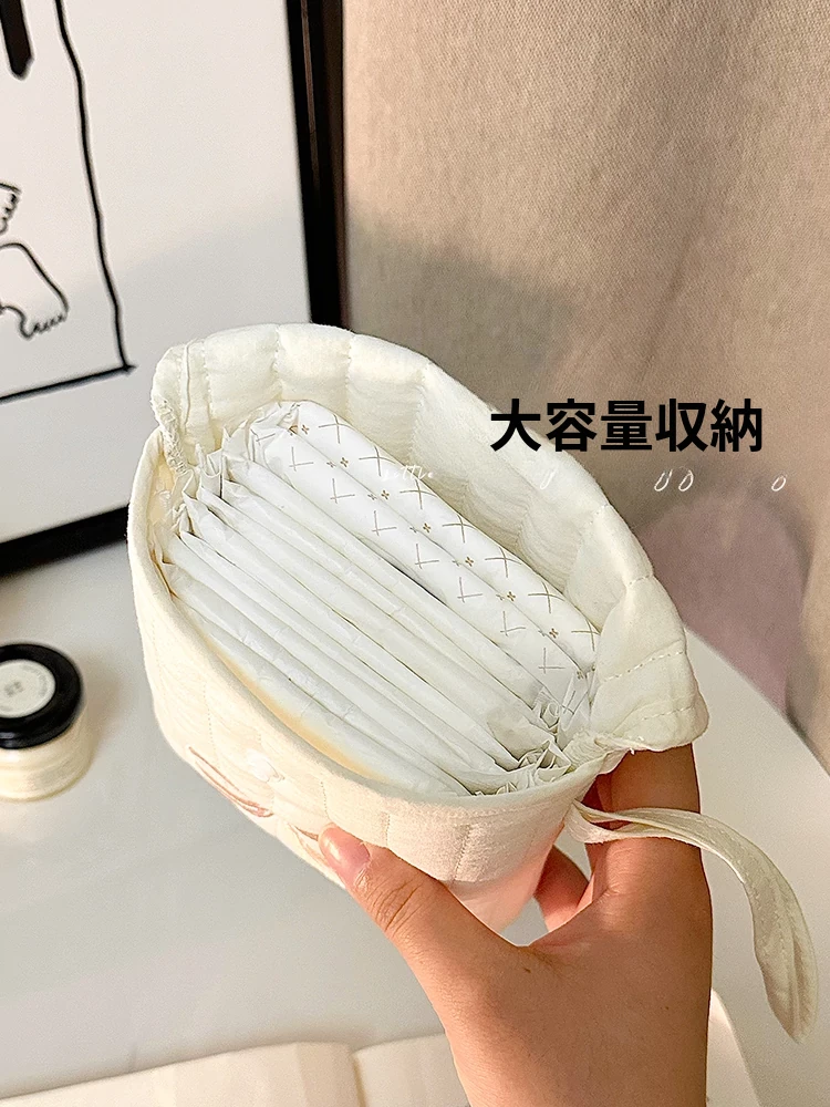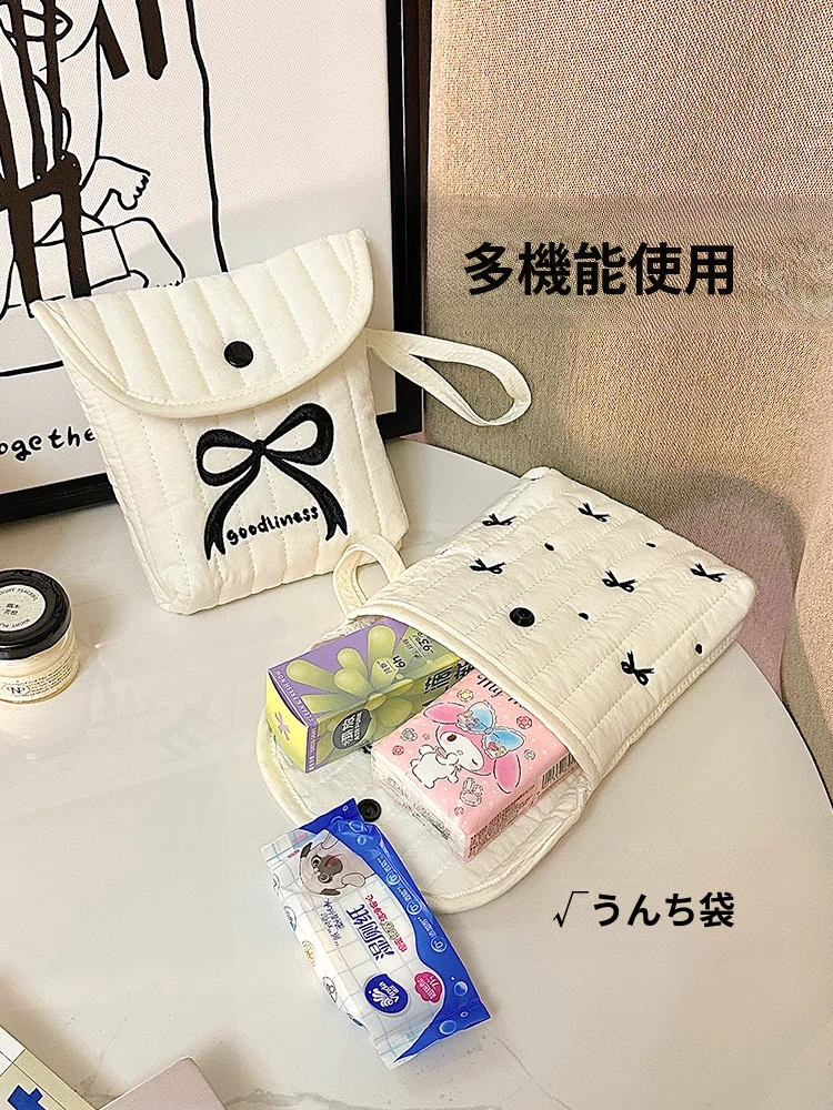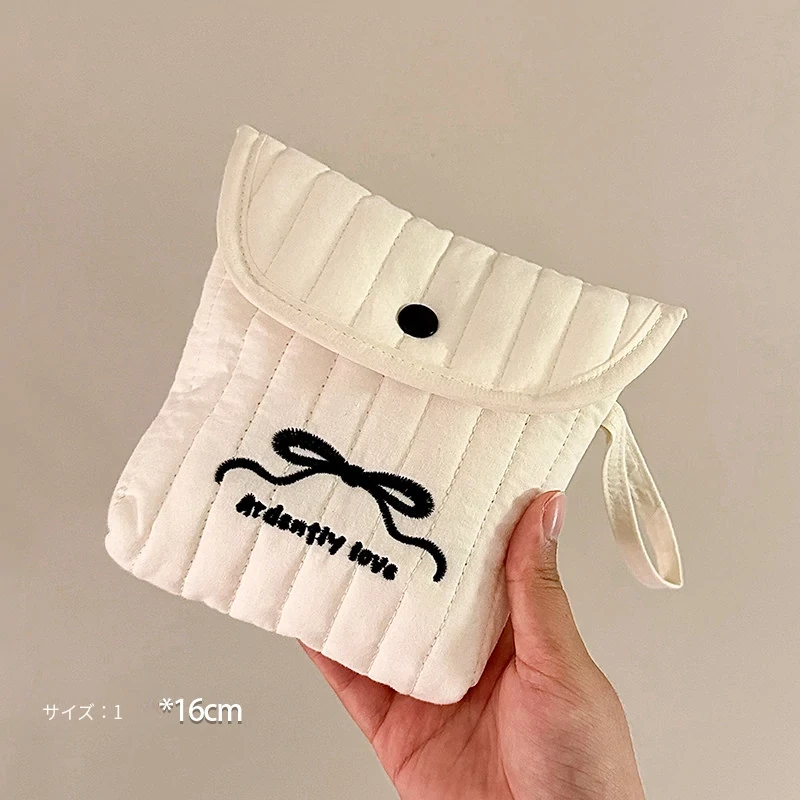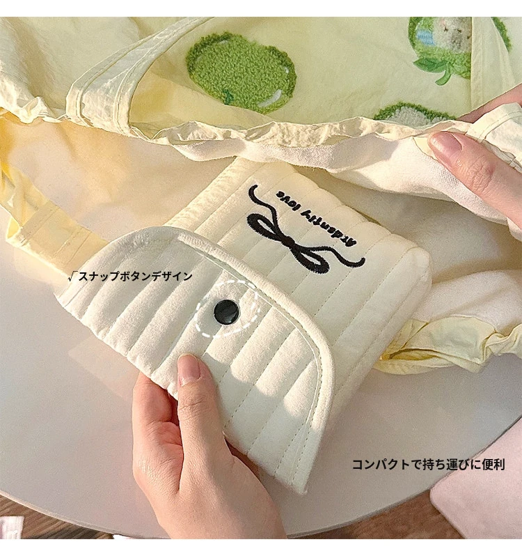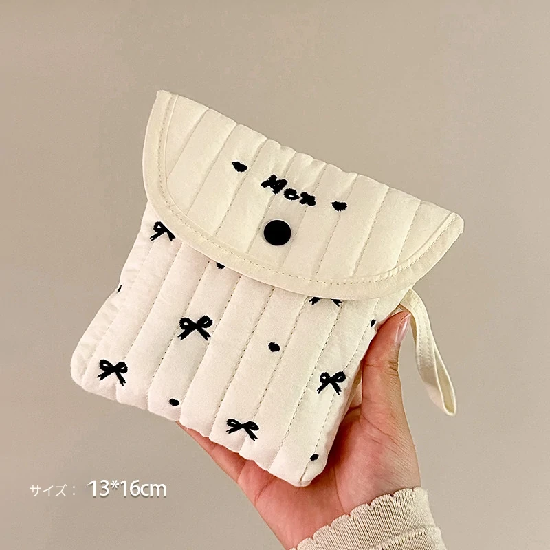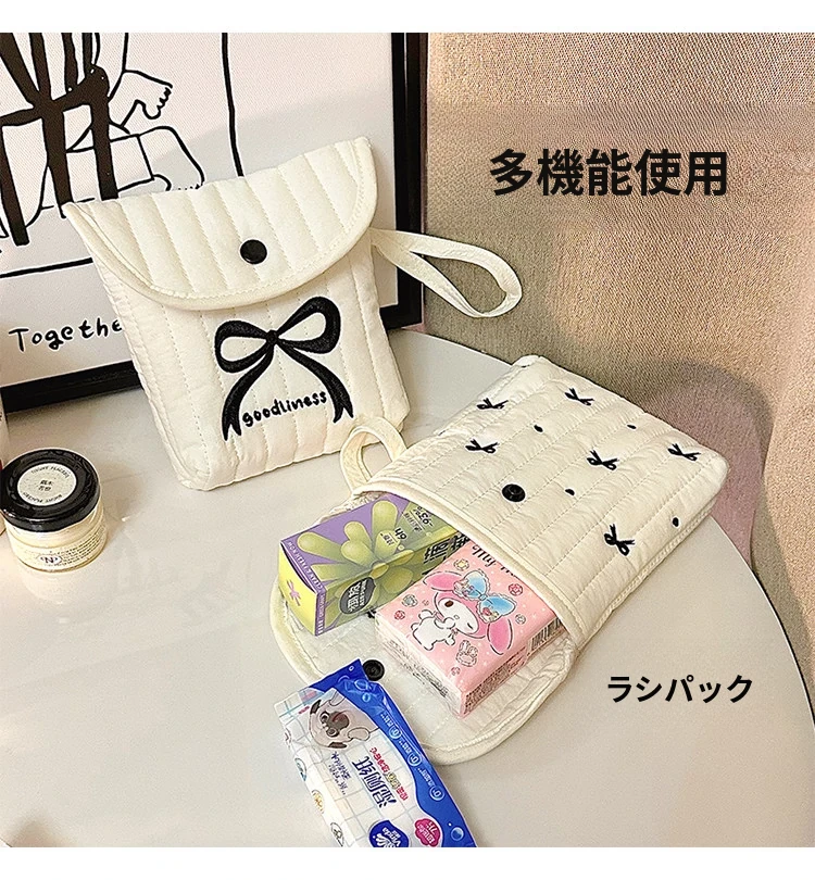 愛らしいハート型リボンの生理用品収納ポーチ|大容量&持ち運びに便利!女性にぴったりなコンパクトな月経ポーチ。