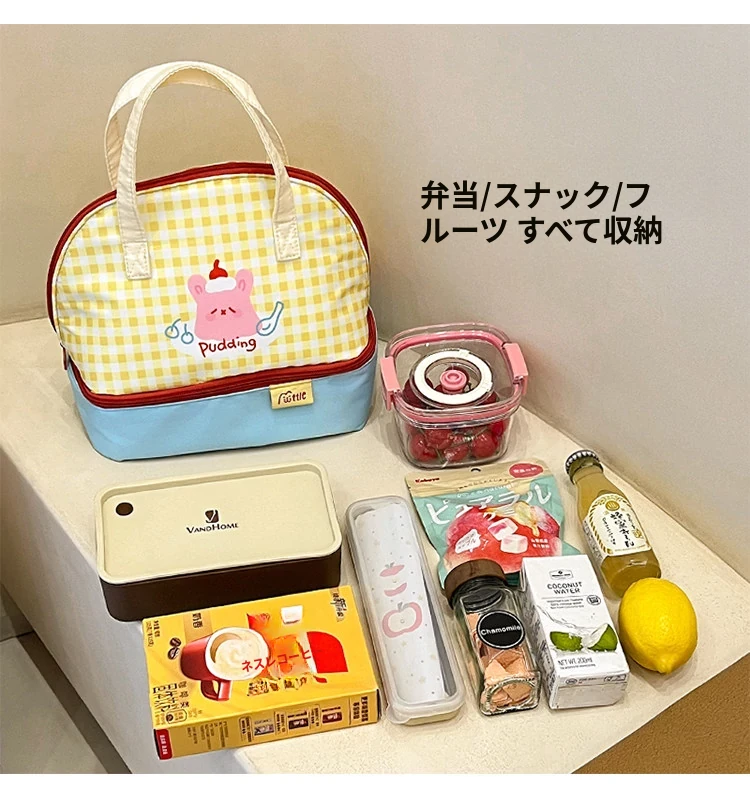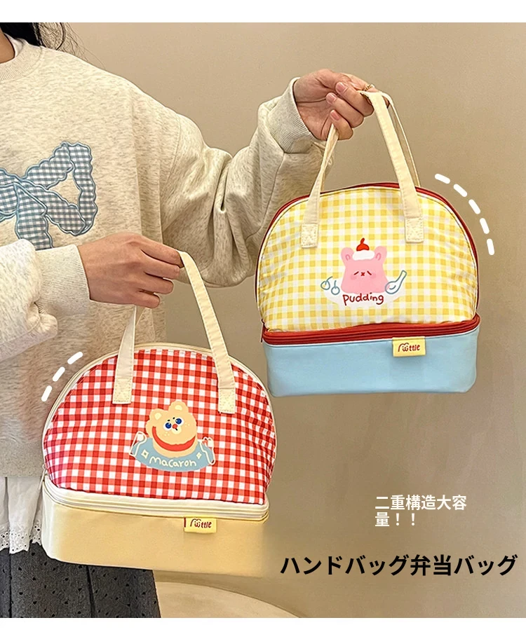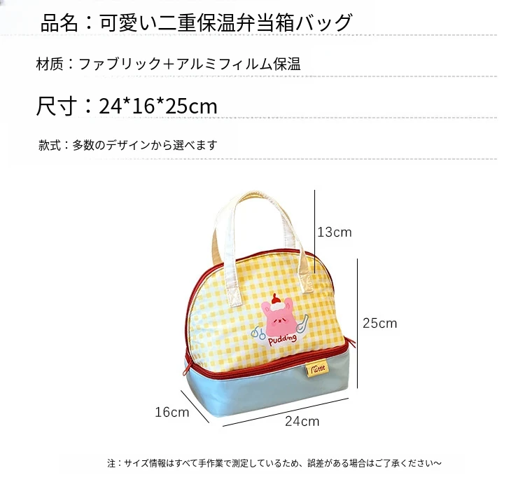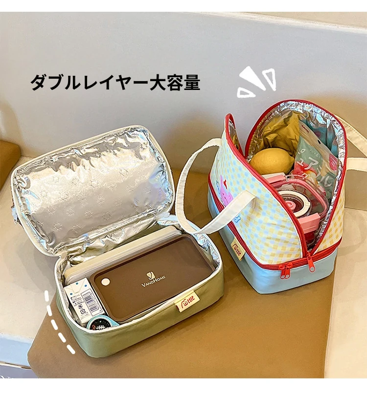 可愛い大容量ランチバッグ|通勤・外出に最適な保温二重層の手提げ弁当袋|おしゃれで使いやすい!