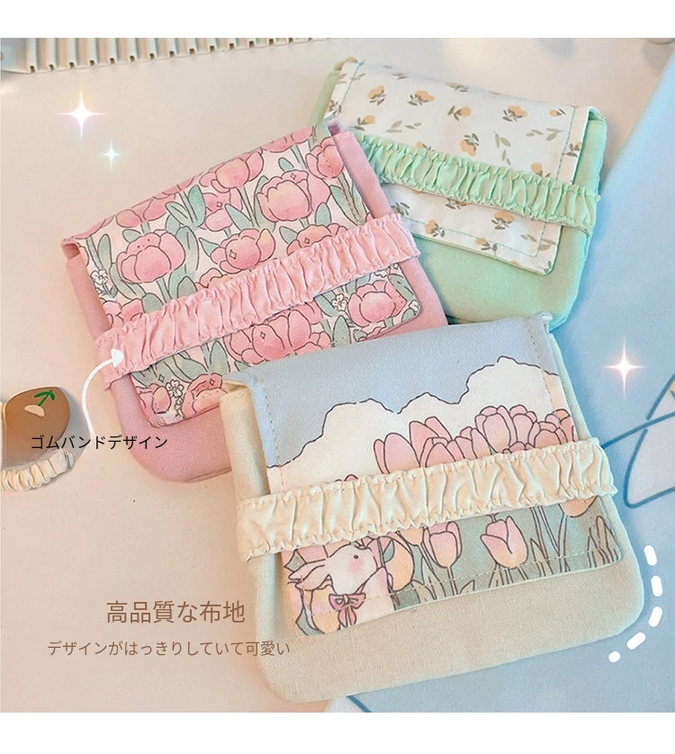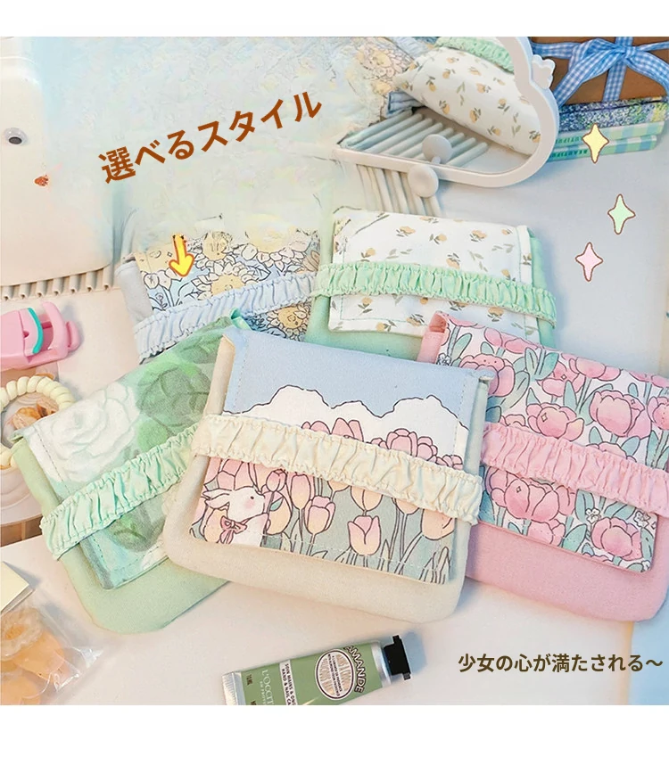 可愛い生理用品収納ポーチ 大容量 学生向け 持ち運び便利 高デザイン 月経用小物入れ