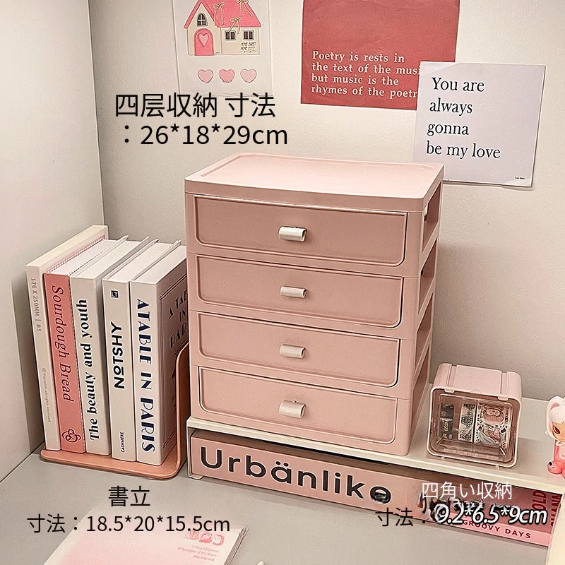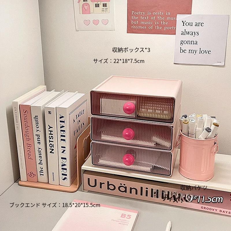 【ブックエンド+多層収納ボックス+小箱】桜ピンク