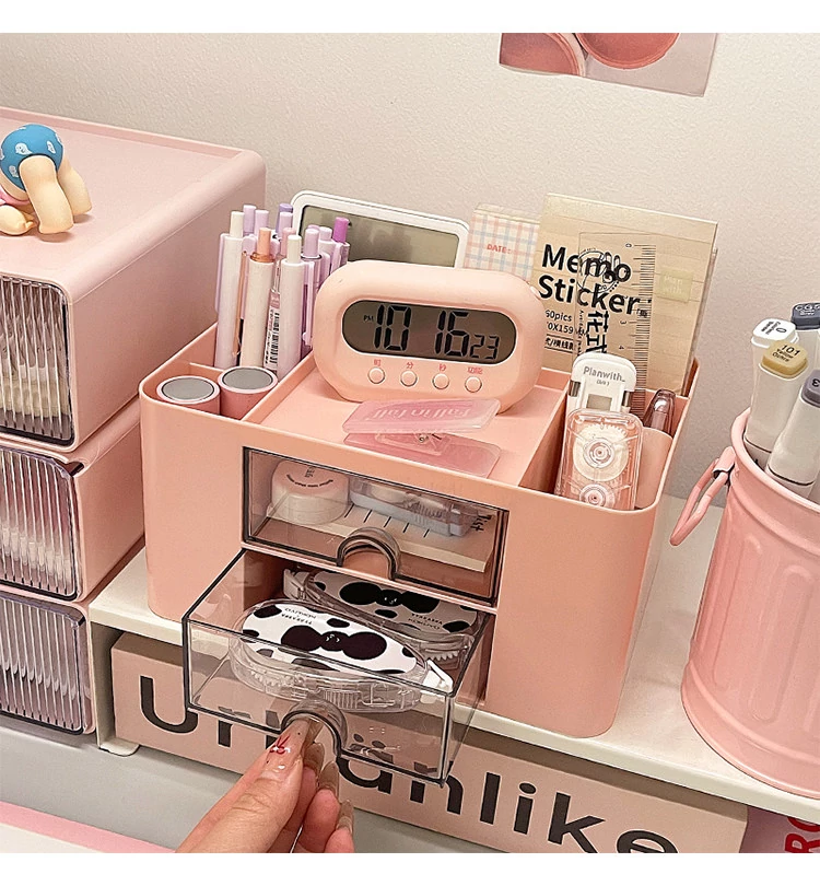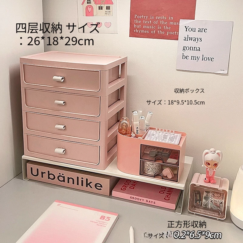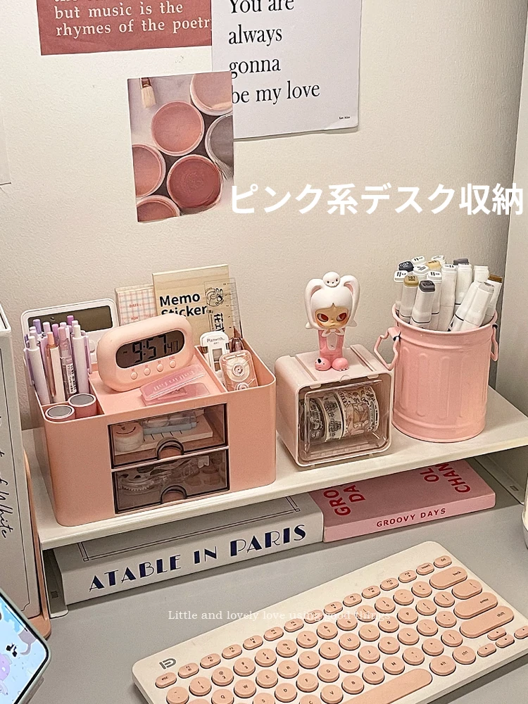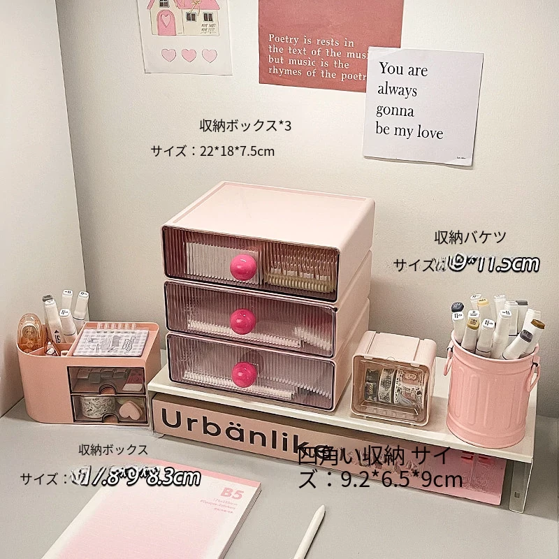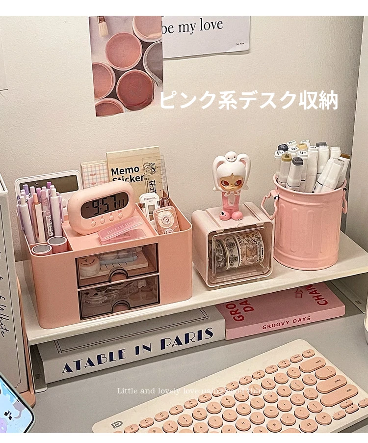 【多層収納ボックス+文房具収納ボックス+小箱】桜ピンク