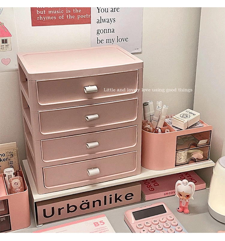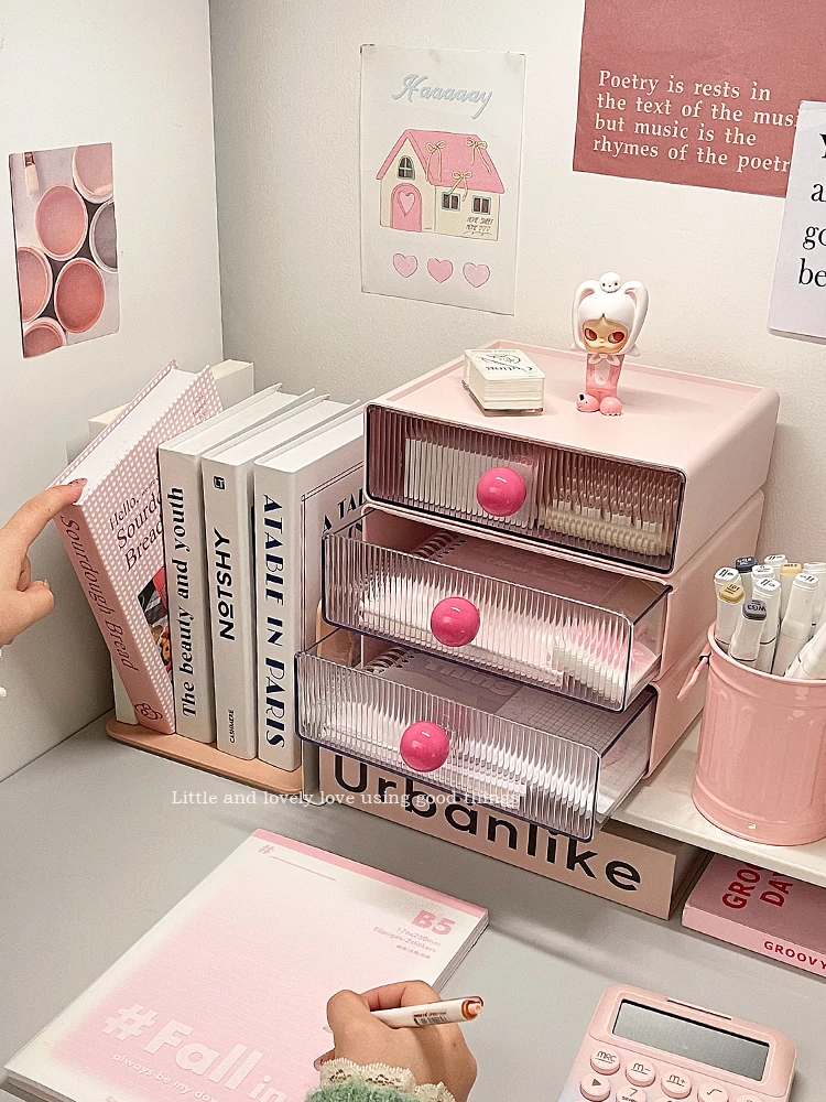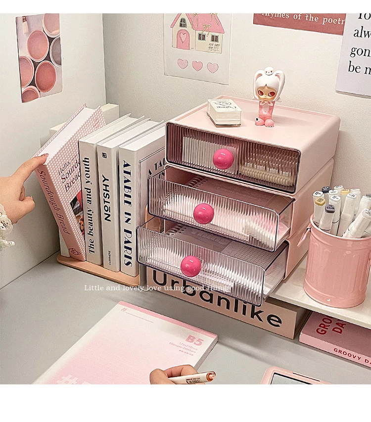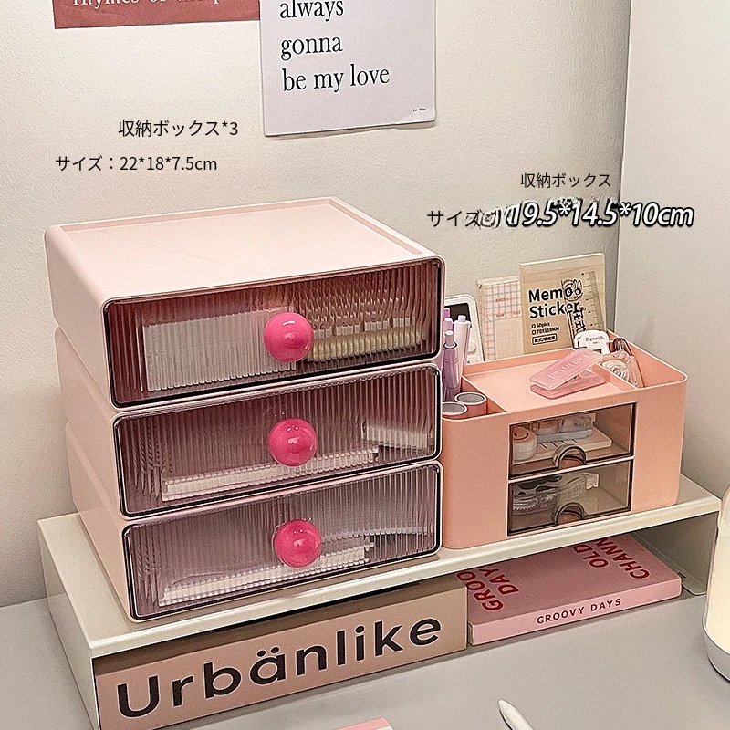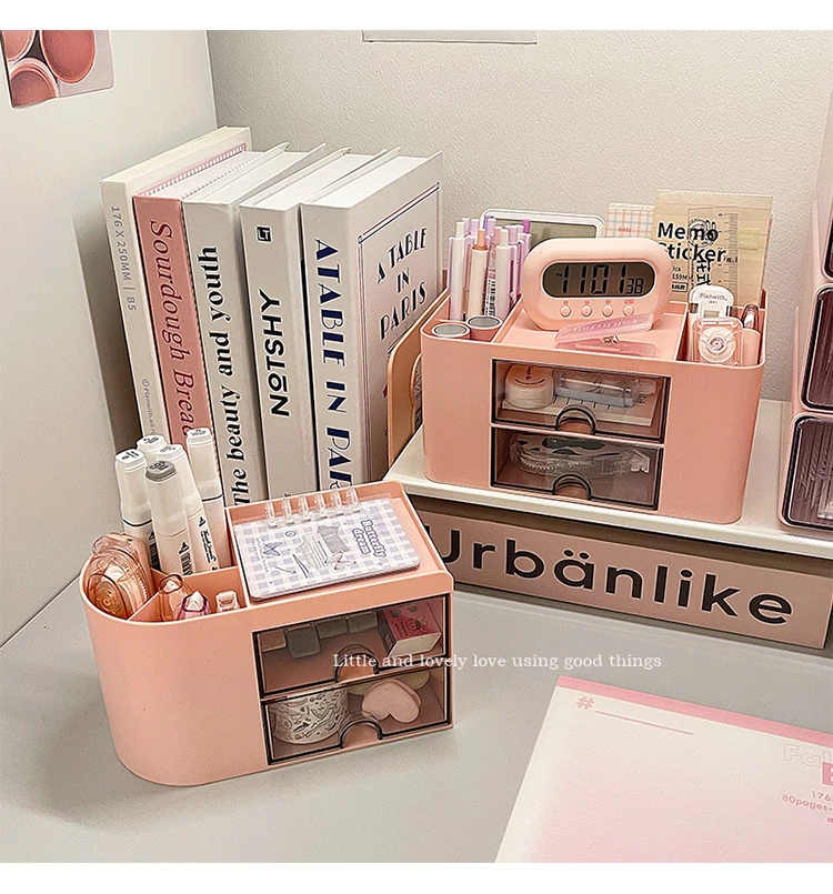 【多層収納ボックス+文房具収納ボックス+小箱】桜ピンク