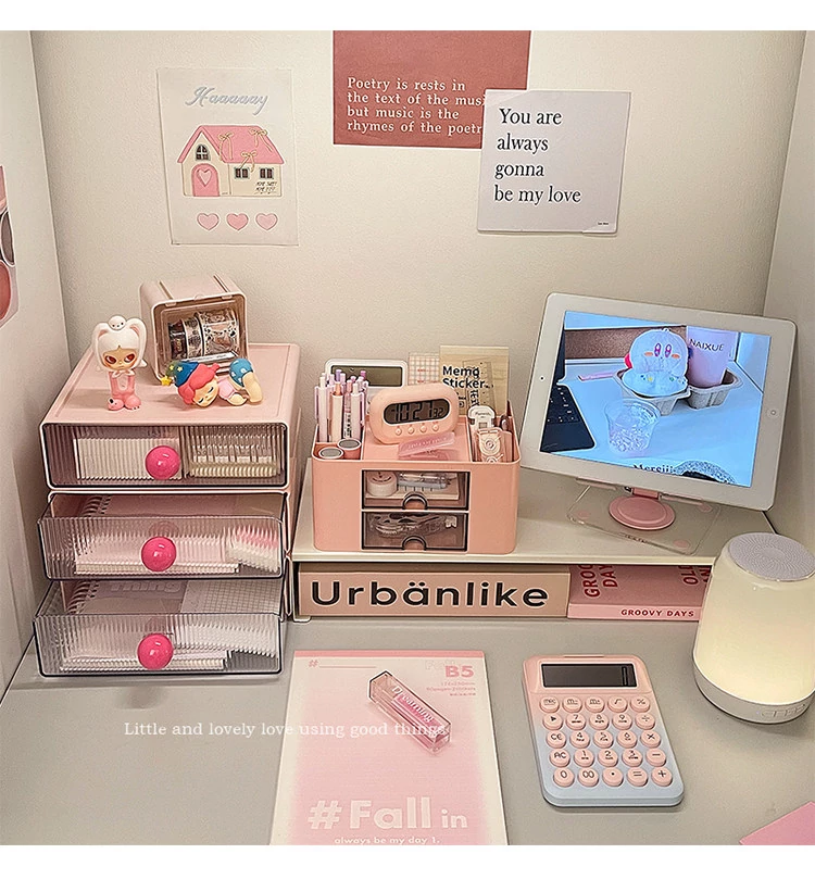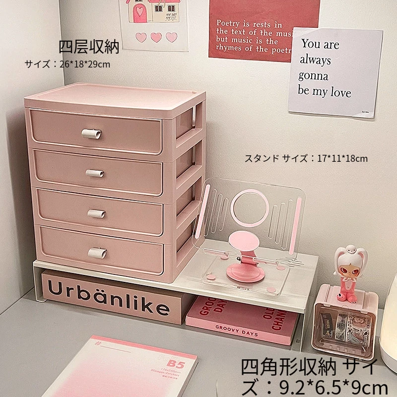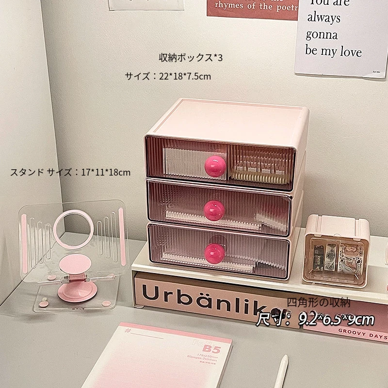 【多層収納ボックス+タブレットスタンド+小箱】桜ピンク