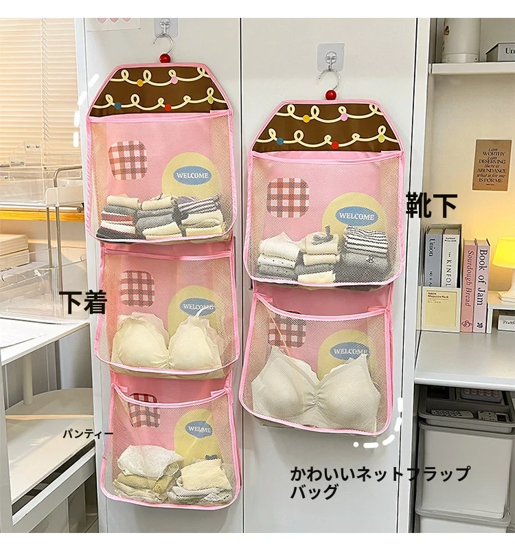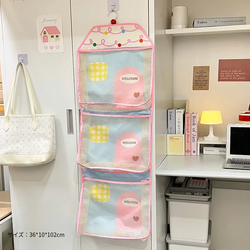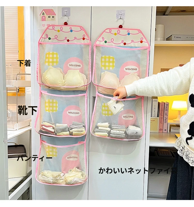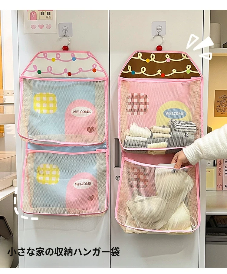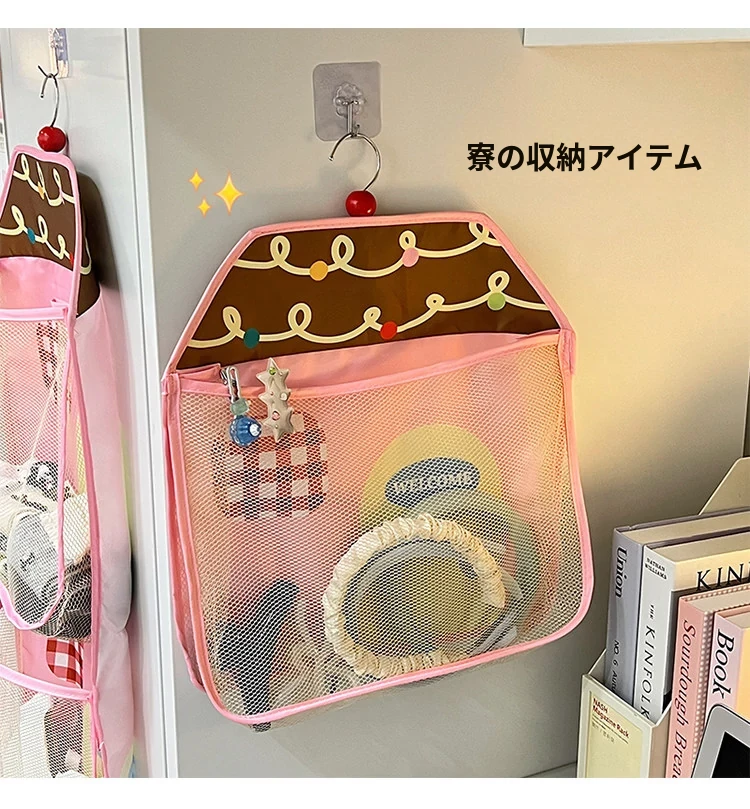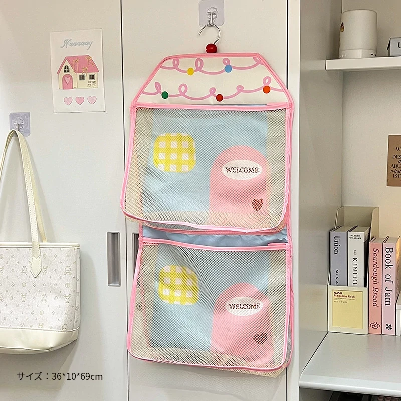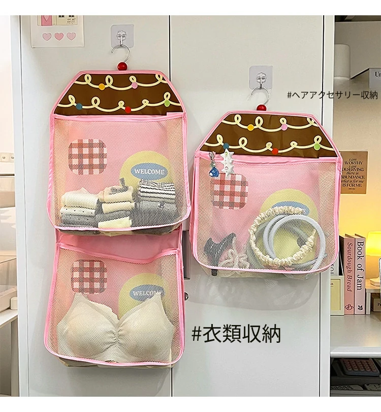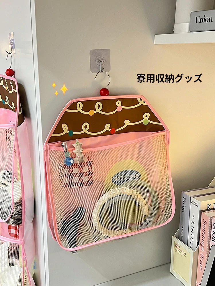 かわいい壁掛け収納ポケット - 女子学生寮にぴったり!ドアの裏やクローゼットに取り付け簡単、穴をあけずに使用可能。ヘアアクセサリーや衣類をすっきり収納して、お部屋をおしゃれに!