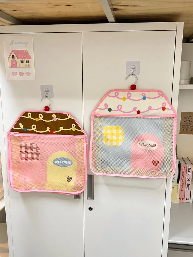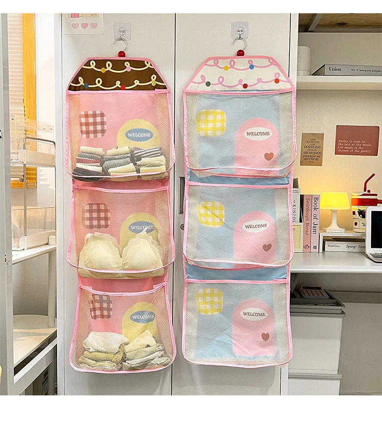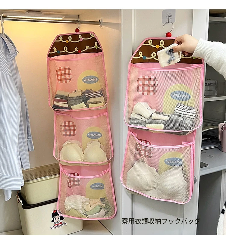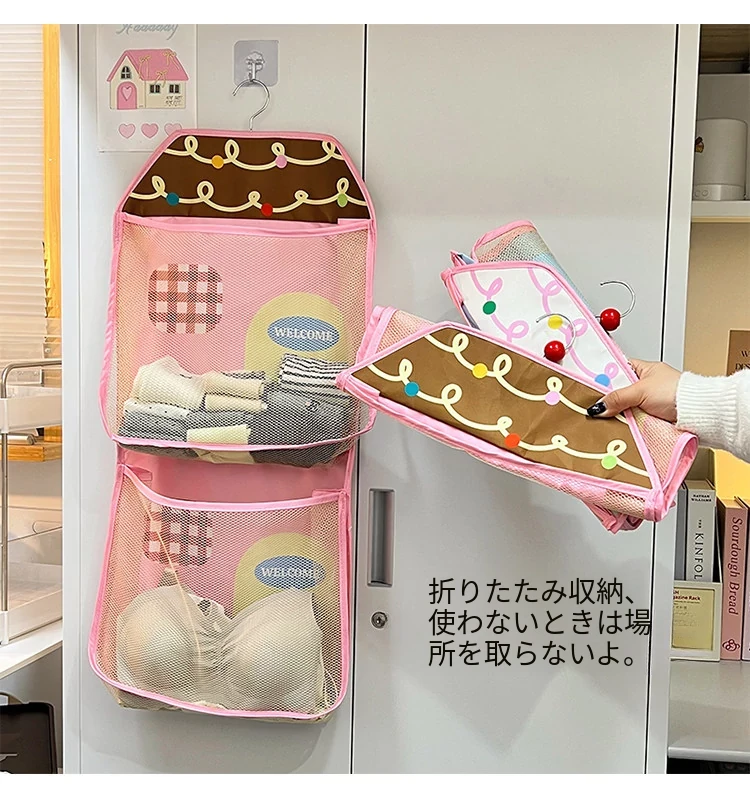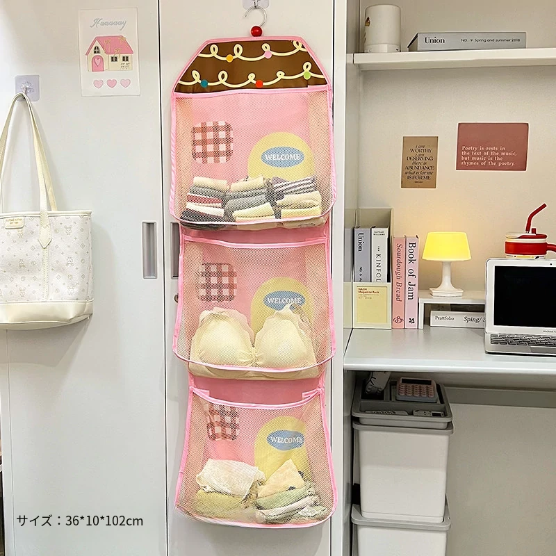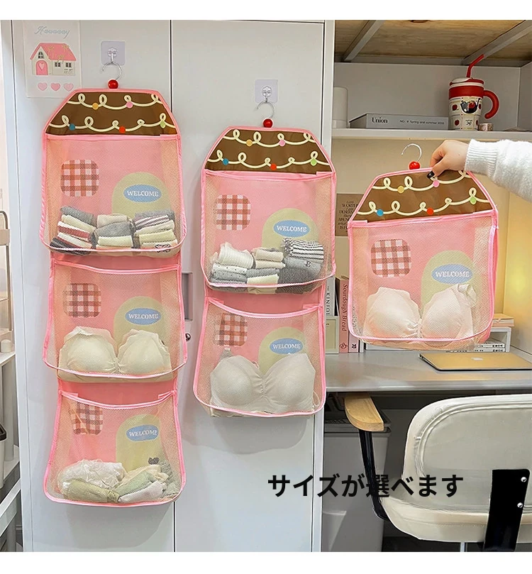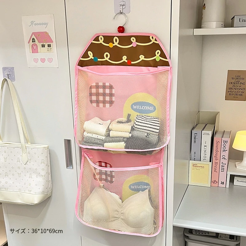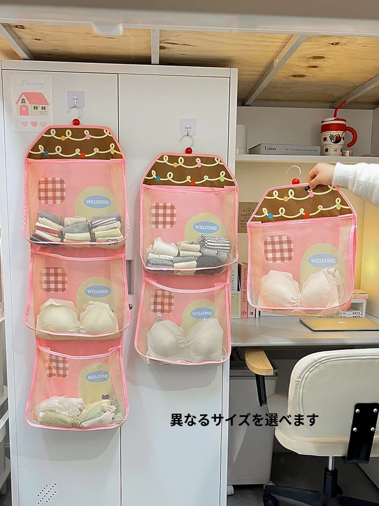 かわいい壁掛け収納ポケット - 女子学生寮にぴったり!ドアの裏やクローゼットに取り付け簡単、穴をあけずに使用可能。ヘアアクセサリーや衣類をすっきり収納して、お部屋をおしゃれに!