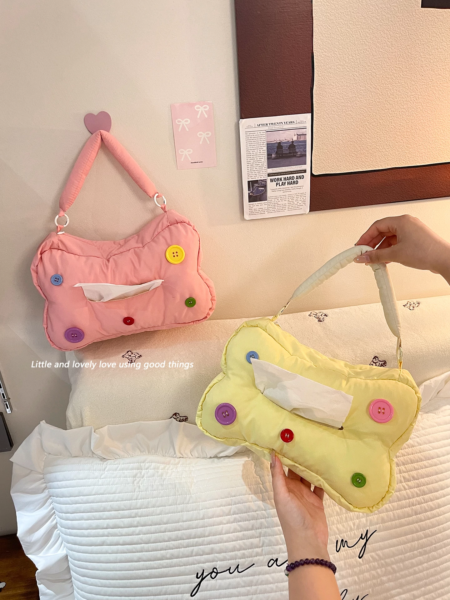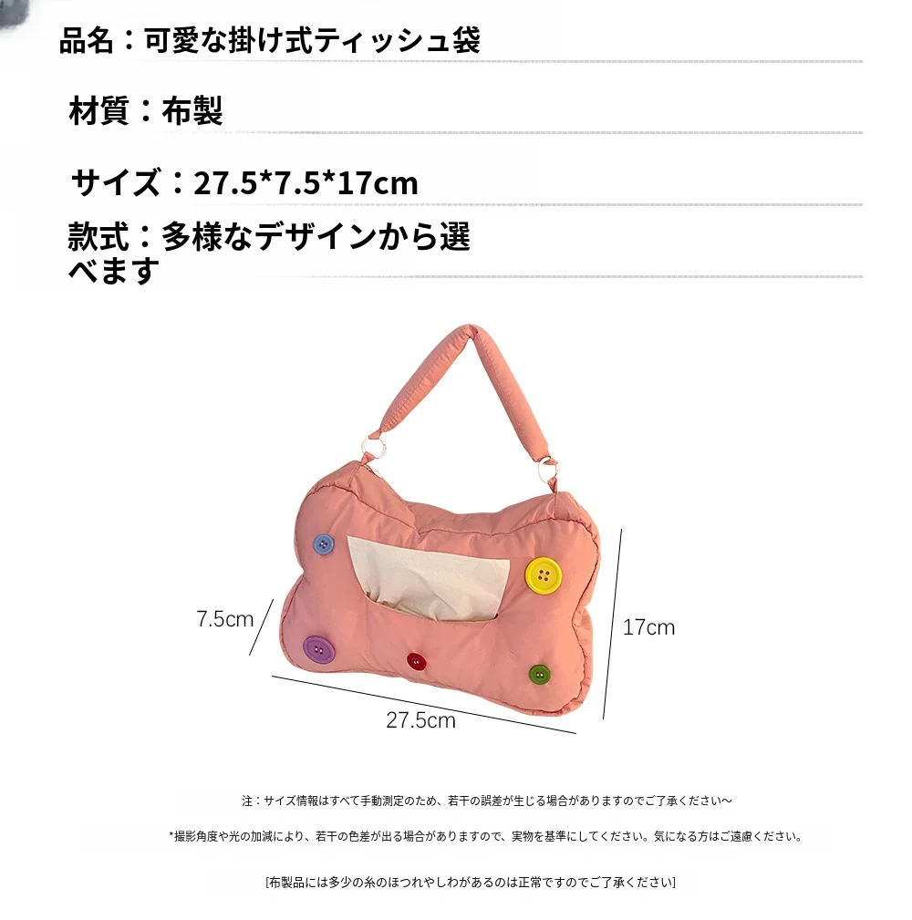 可愛らしい壁掛けティッシュボックス - 車載にも最適!洗顔タオルやペーパーをおしゃれに収納できる、見た目も抜群のティッシュホルダーです。お部屋や車内を可愛く演出しましょう!