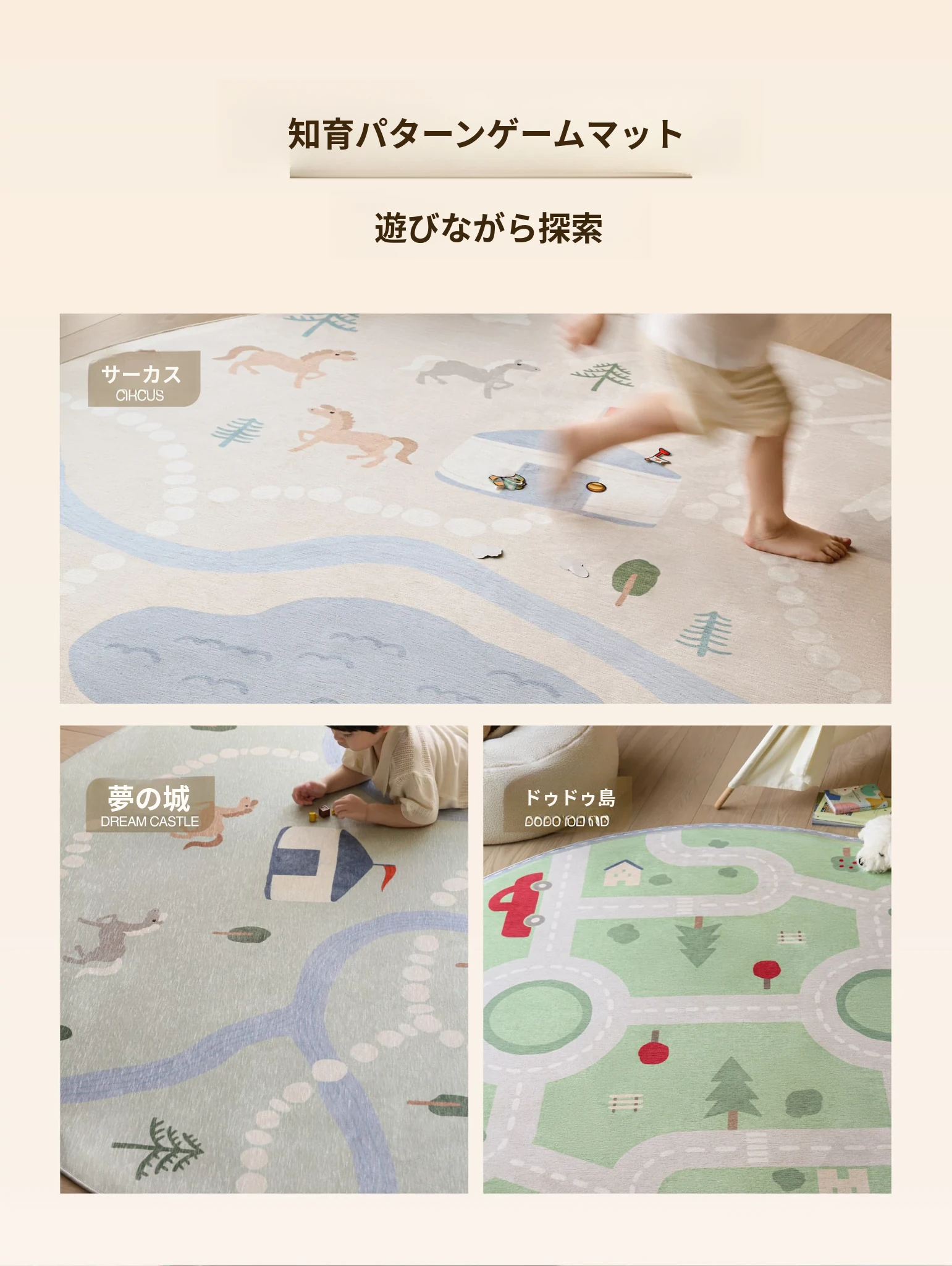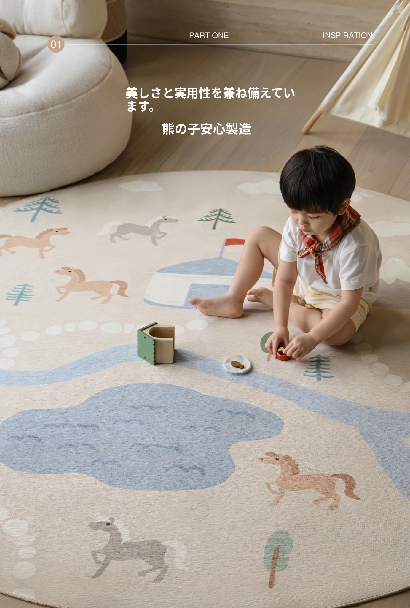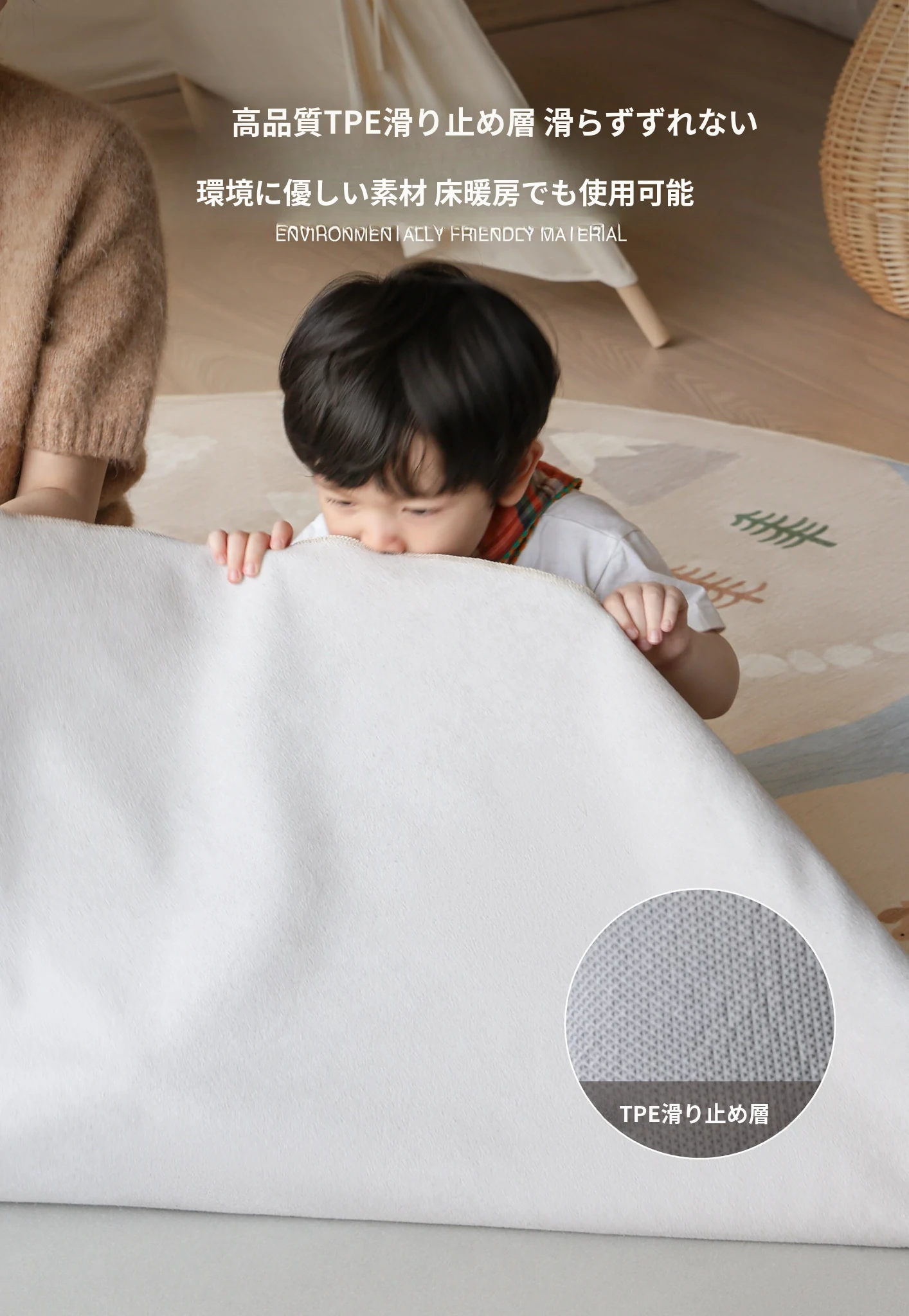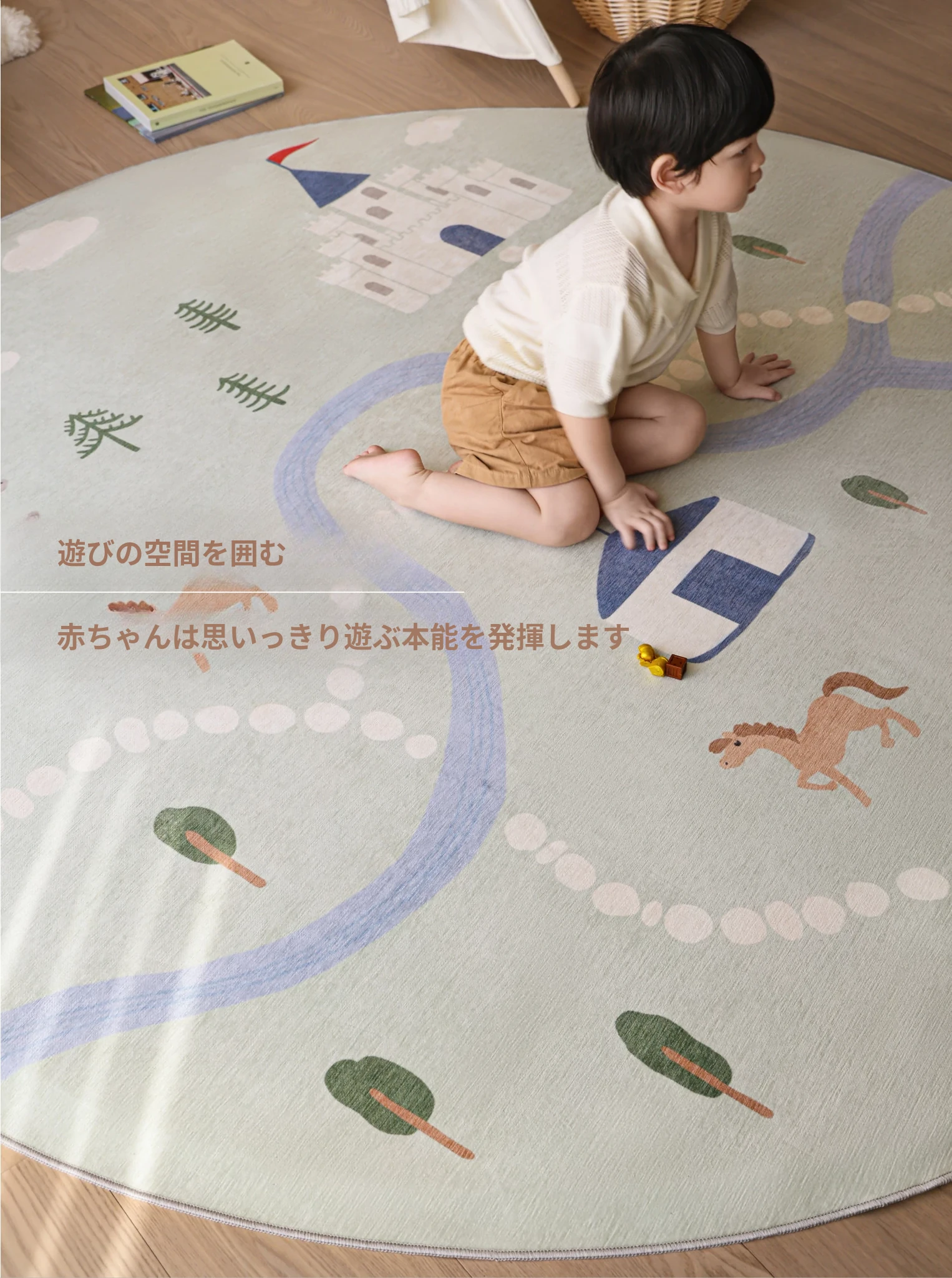 サイボスサーカスの洗える二重層ラグカーペット、子供部屋や寝室にぴったり!おしゃれで高級感溢れる円形マット、洗濯機で簡単お手入れ、赤ちゃんのハイハイにも最適です!