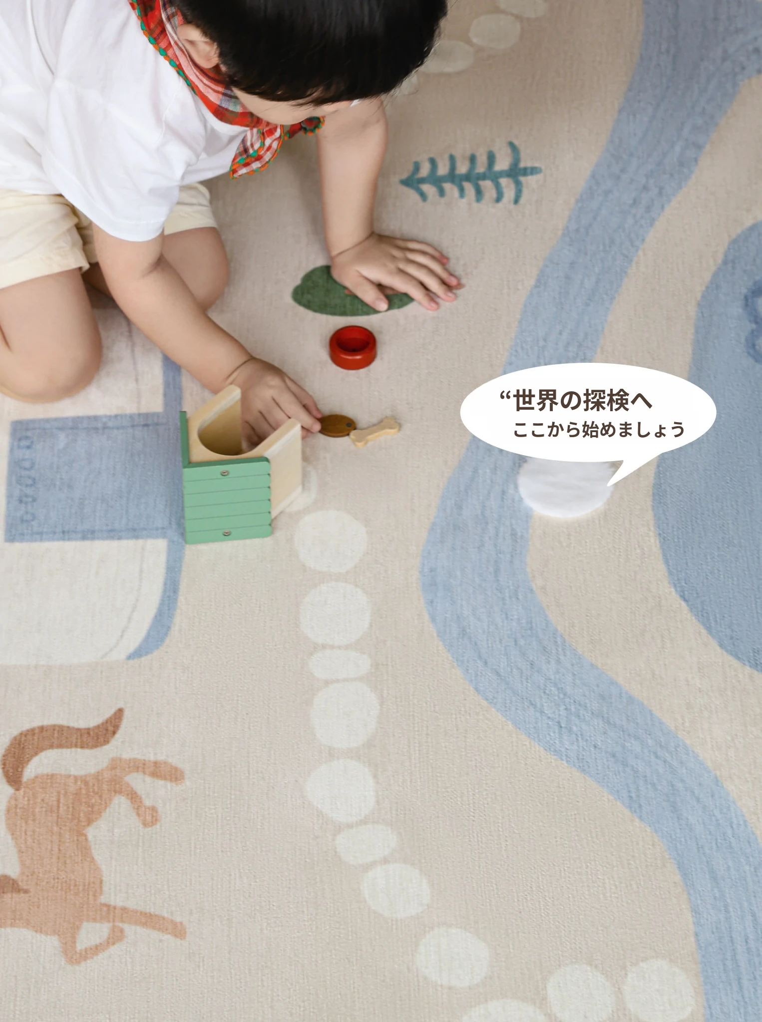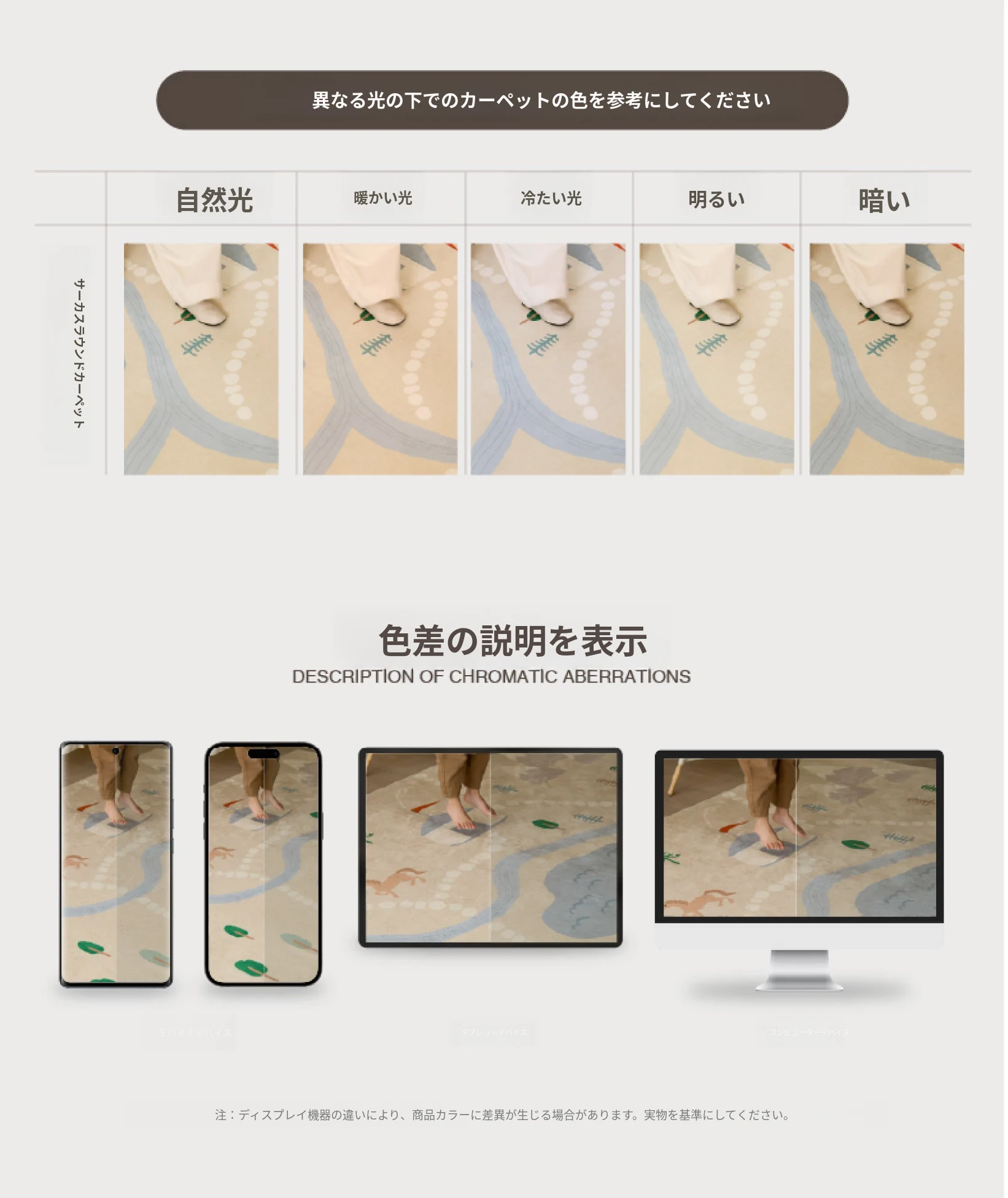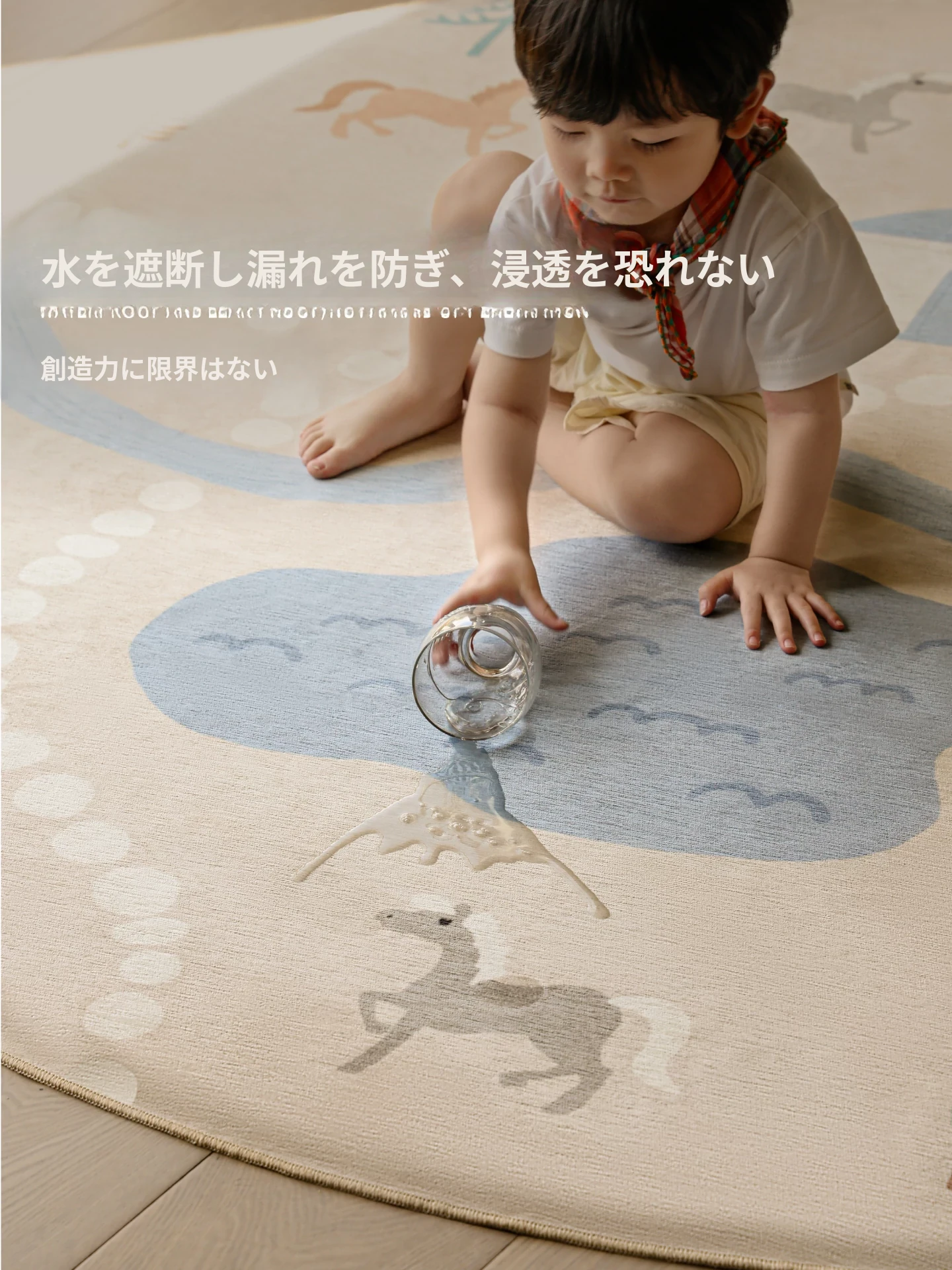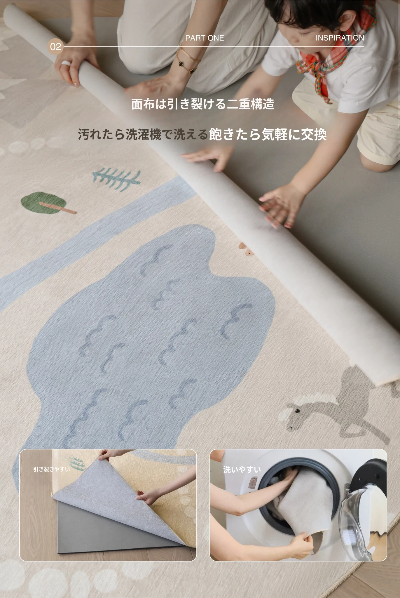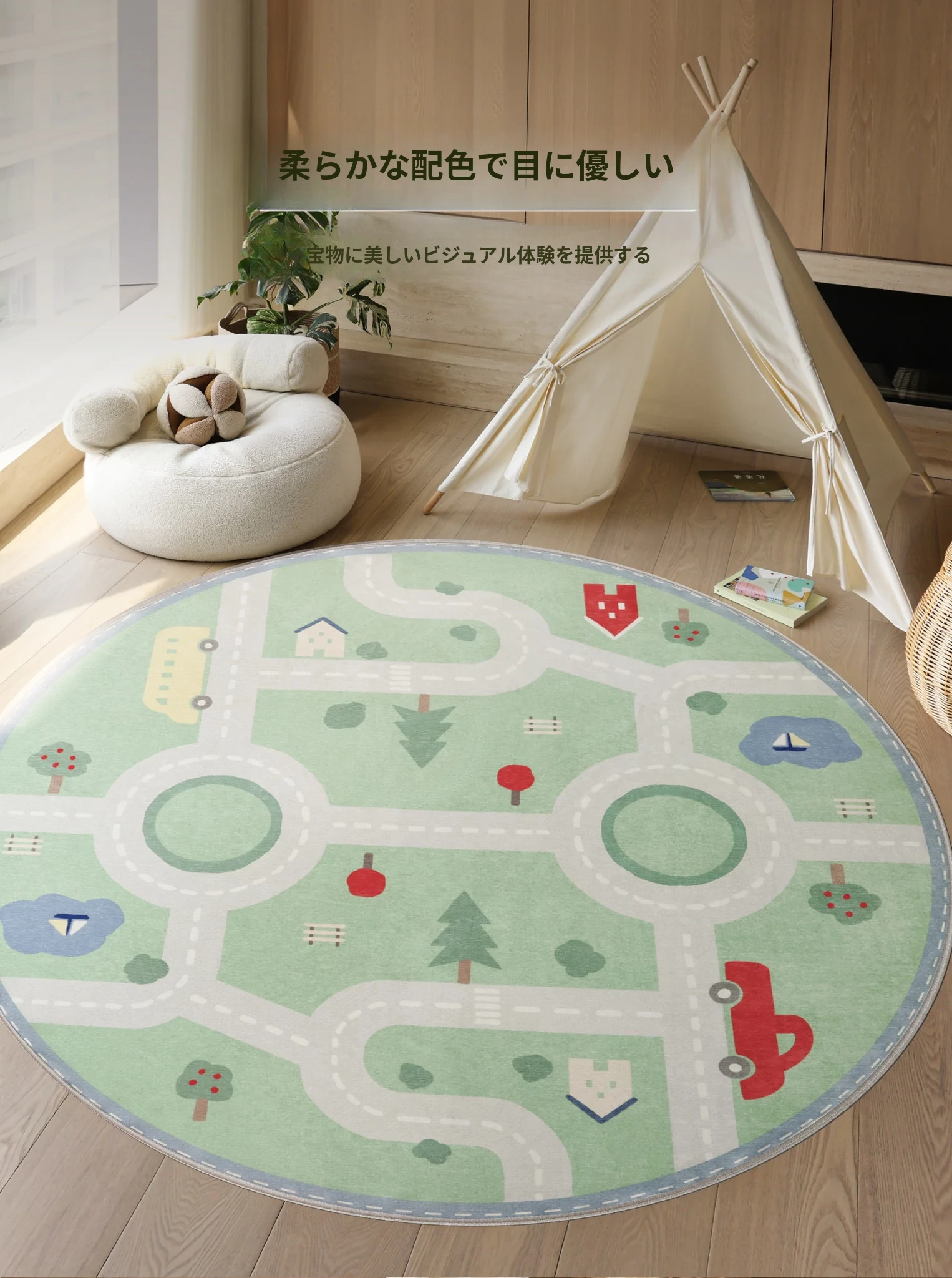 サイボスサーカスの洗える二重層ラグカーペット、子供部屋や寝室にぴったり!おしゃれで高級感溢れる円形マット、洗濯機で簡単お手入れ、赤ちゃんのハイハイにも最適です!