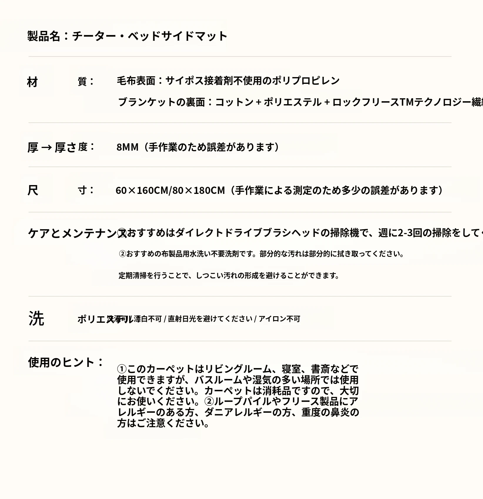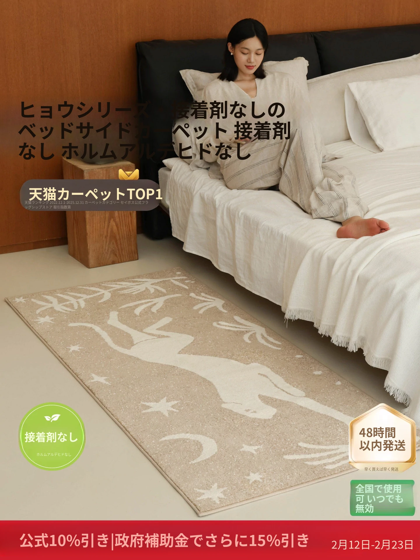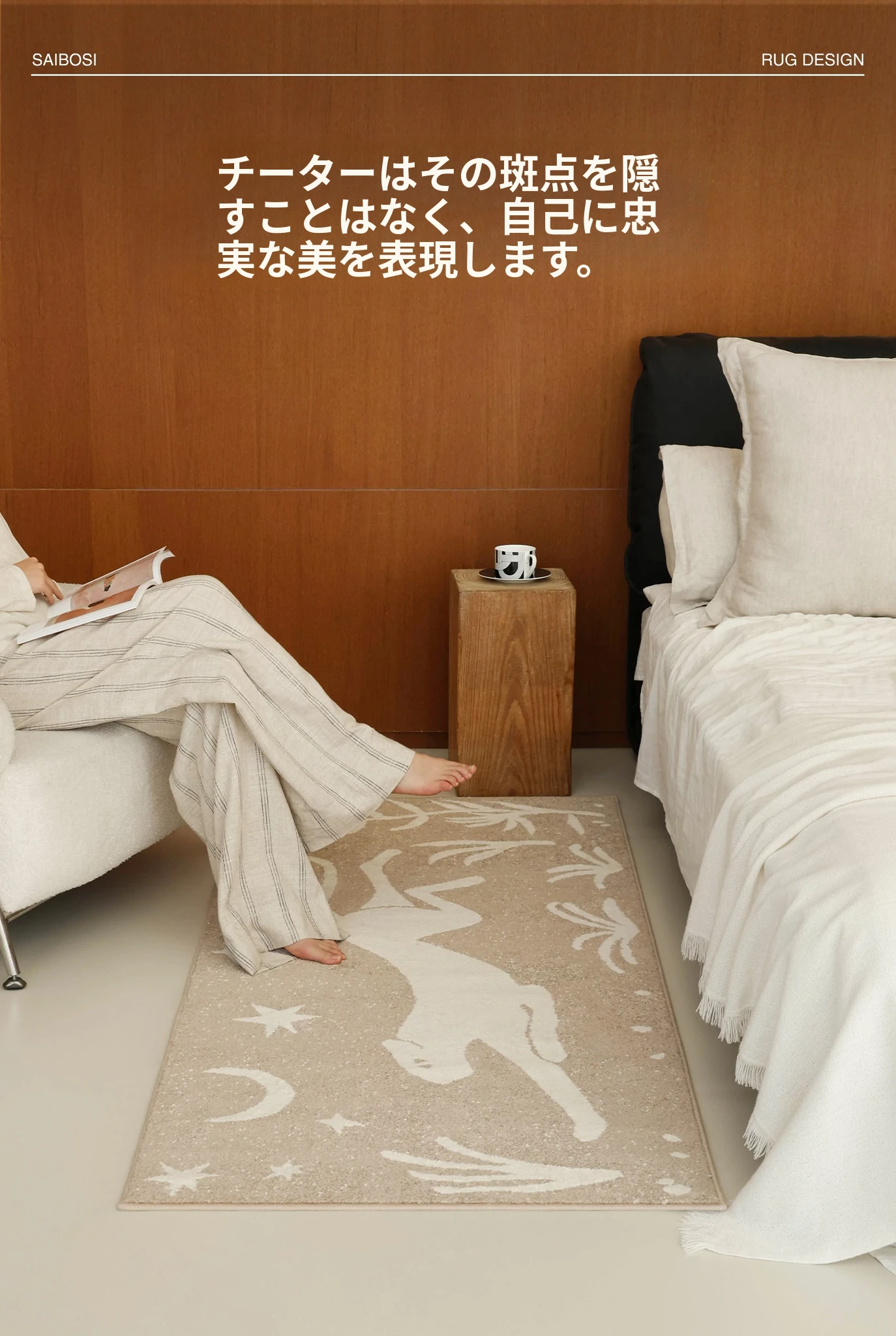 セイボス・ヒョウシリーズ 無接着剤ベッドサイドマット 0ホルムアルデヒド 滑り止め 高級レトロ 寝室・窓際・クローゼット用カーペット