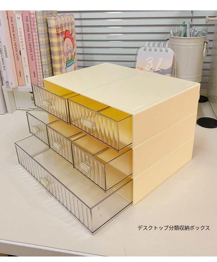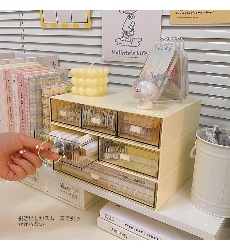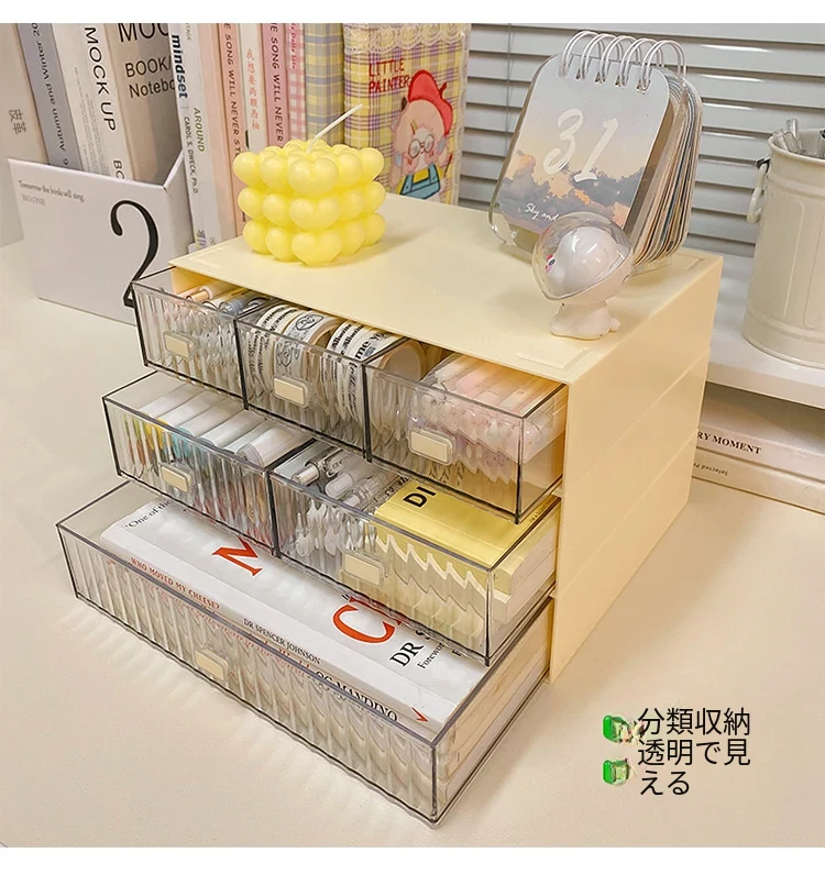 デスク収納ボックス 引き出し式文房具・手帳ラック 学生寮向け整理ボックス 小物収納に最適!机上をスッキリ整理して、勉強効率アップ!