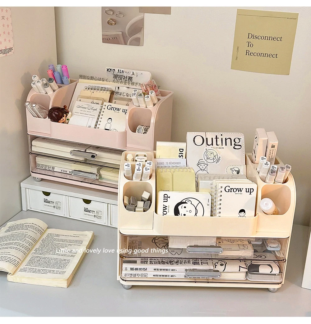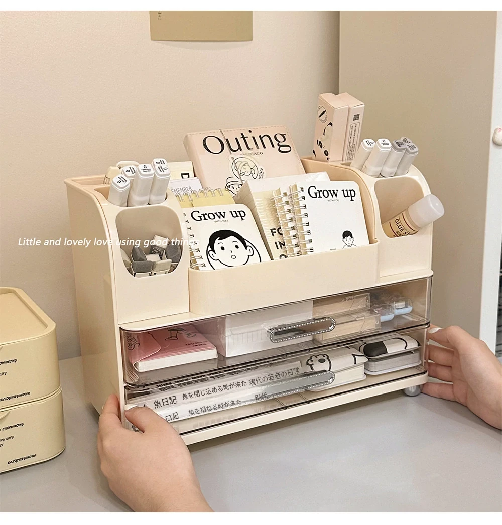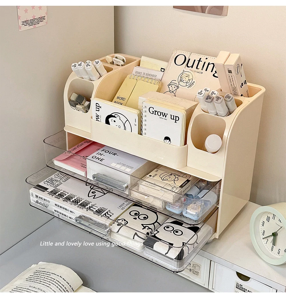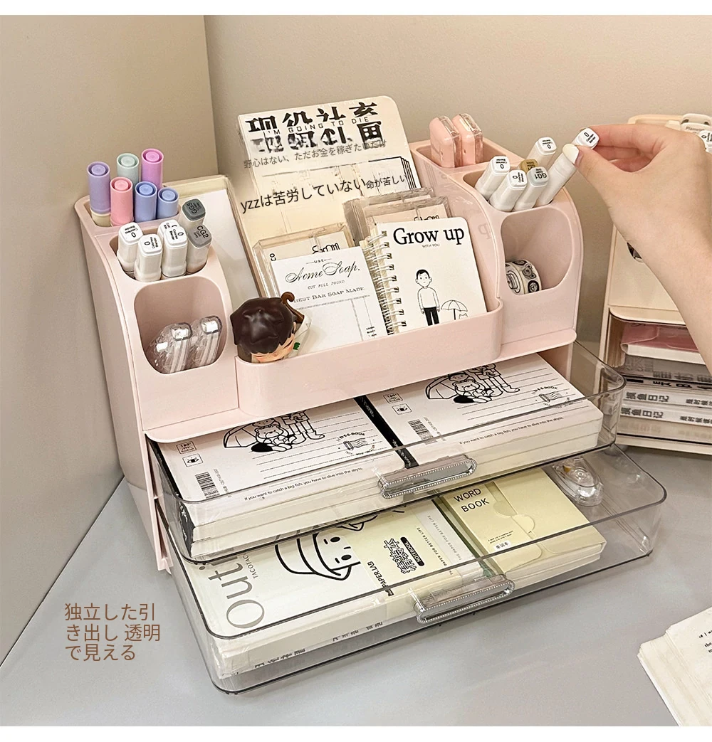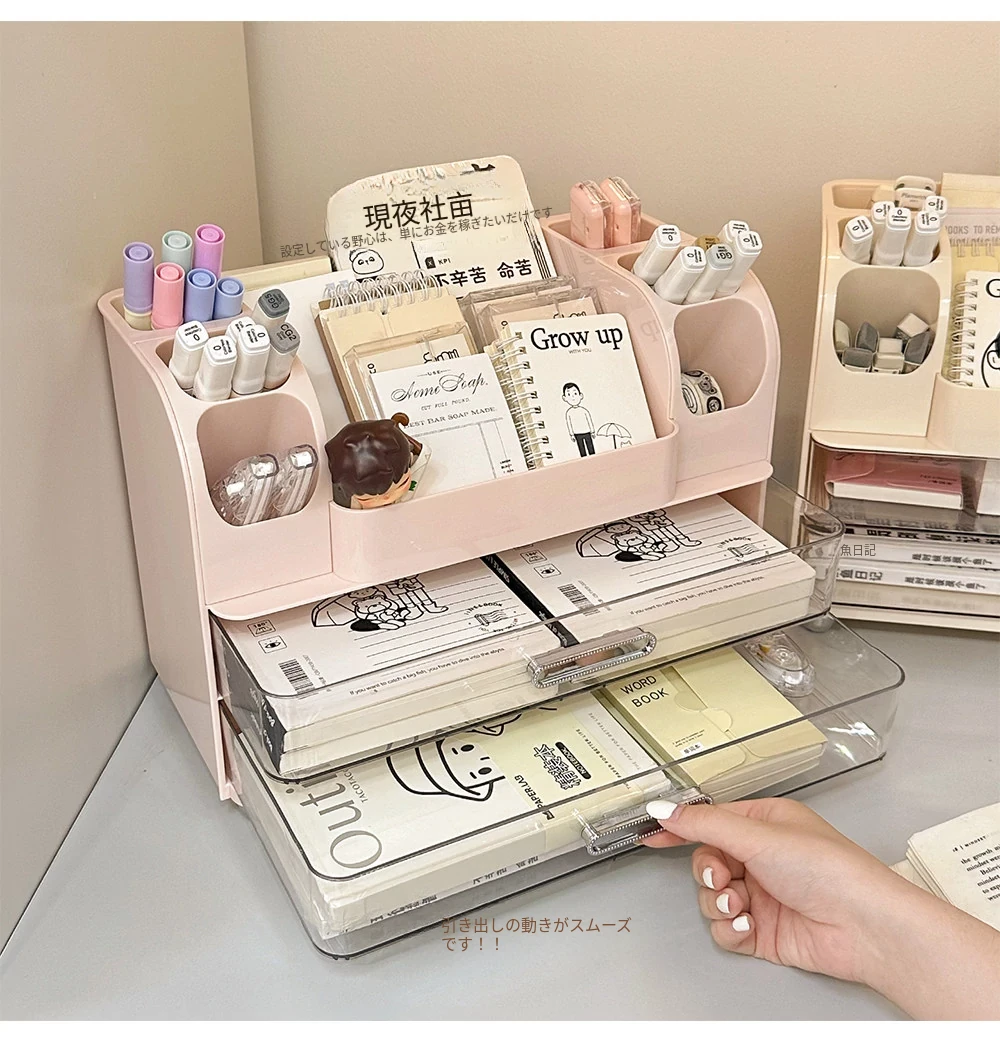 学生の寮や書斎に最適!デスク収納ボックス - 分割デザインで文房具や小物をすっきり整理!オフィスや作業スペースにもピッタリな便利アイテム!