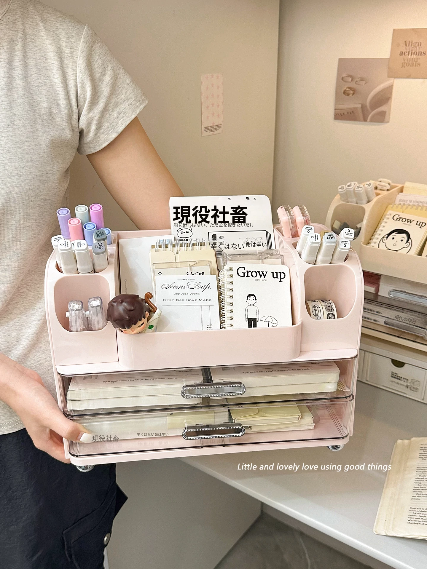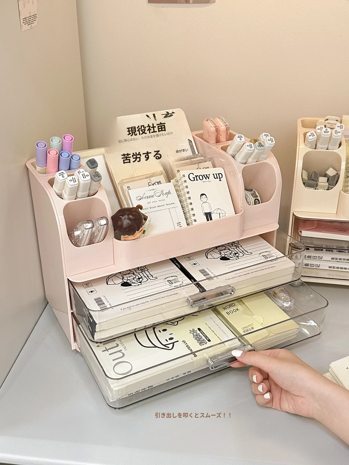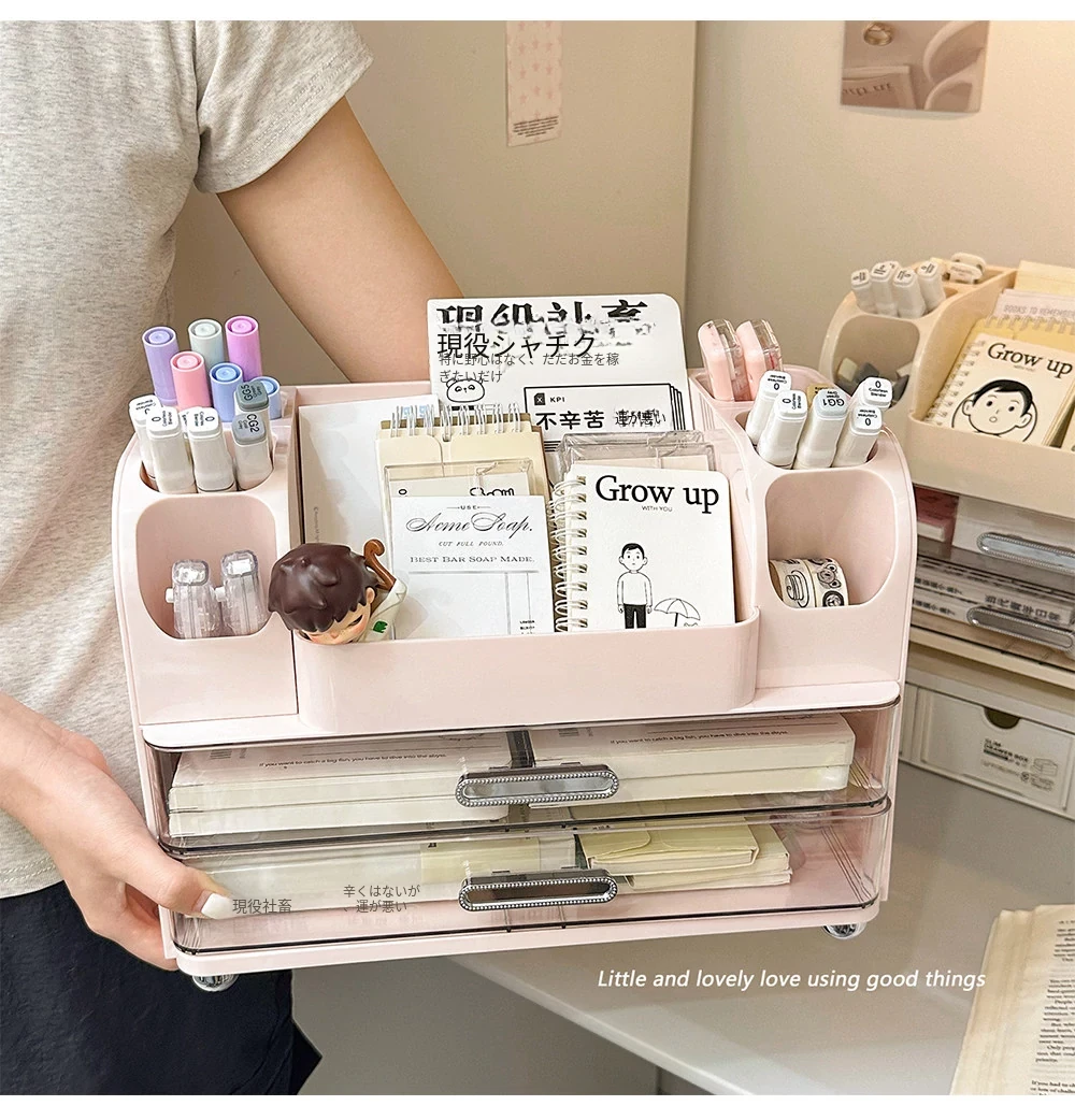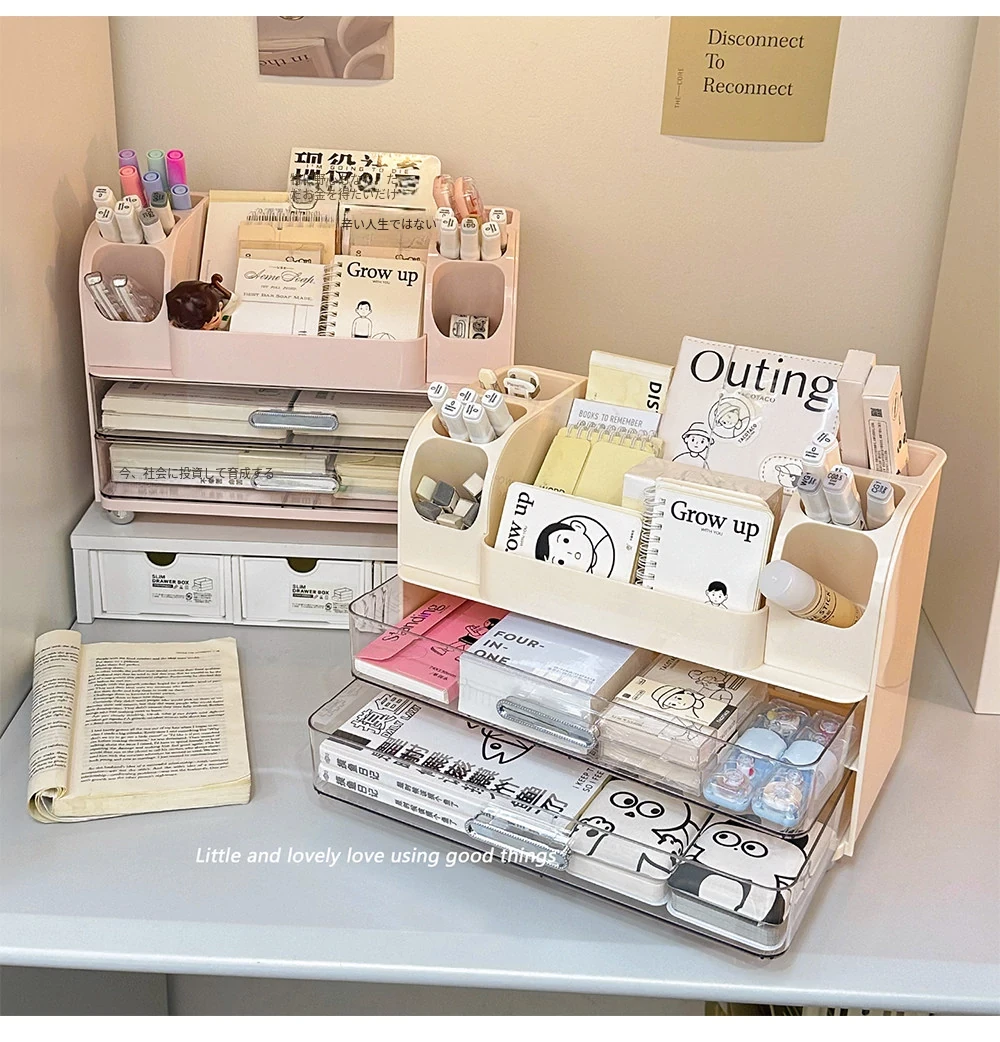 学生の寮や書斎に最適!デスク収納ボックス - 分割デザインで文房具や小物をすっきり整理!オフィスや作業スペースにもピッタリな便利アイテム!