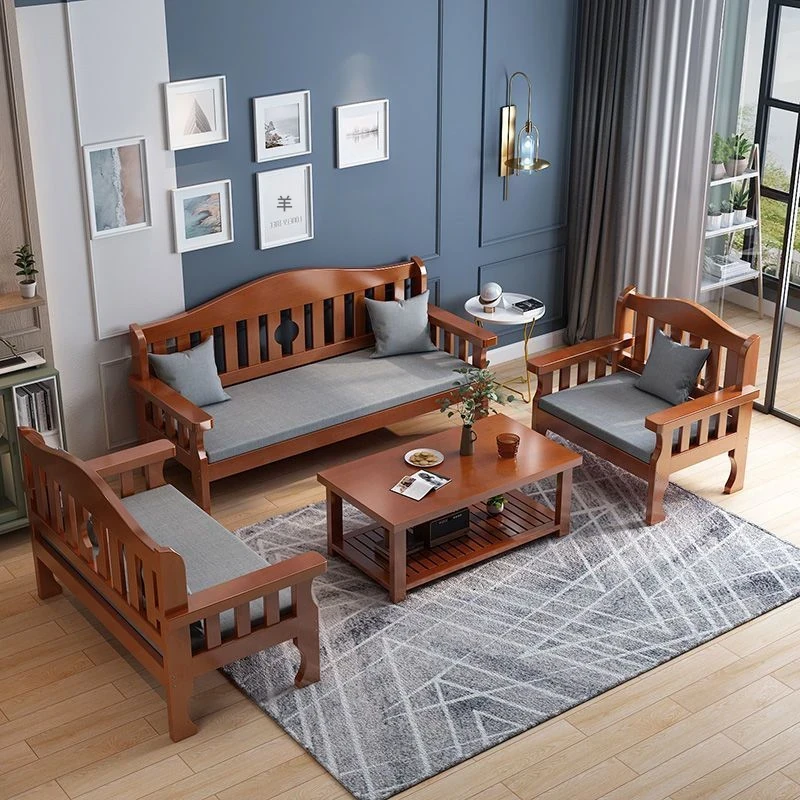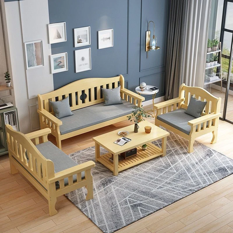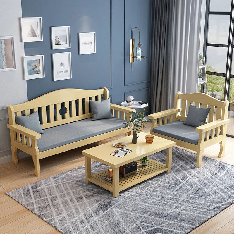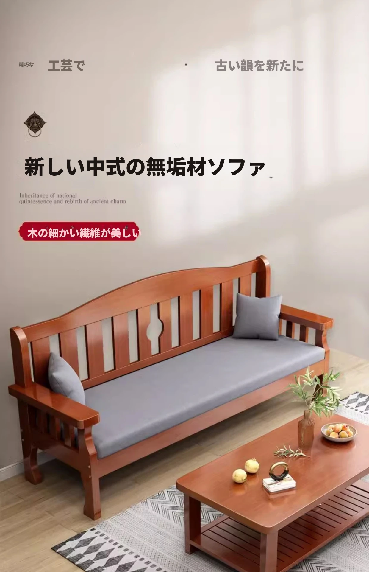 【お得な割引価格】新作!シンプルでおしゃれな実木製ソファセット - 小型リビングにぴったり、背もたれ付きで快適な座り心地を実現!