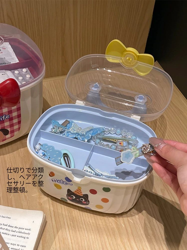 多バイン・キッズヘアアクセサリーボックス - デスクトップ&持ち運び可能な2段大容量!女の子のヘアゴム、ヘアピン、ヘアバンド、ジュエリーをすっきり収納。おしゃれで実用的な収納アイテム、子供たちの毎日をもっと楽しく!