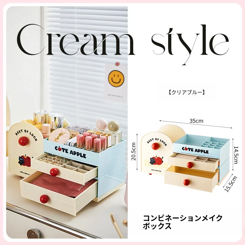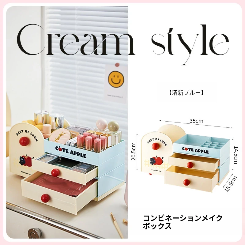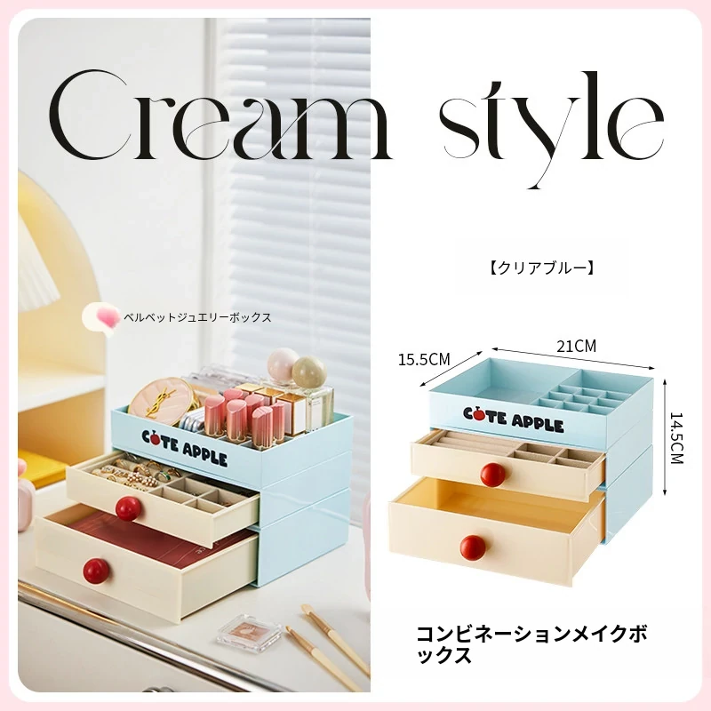 ブルー【三段収納ボックス+フランネルジュエリーボックス】