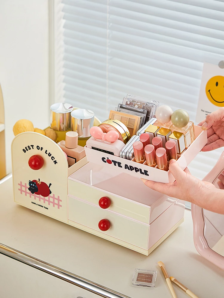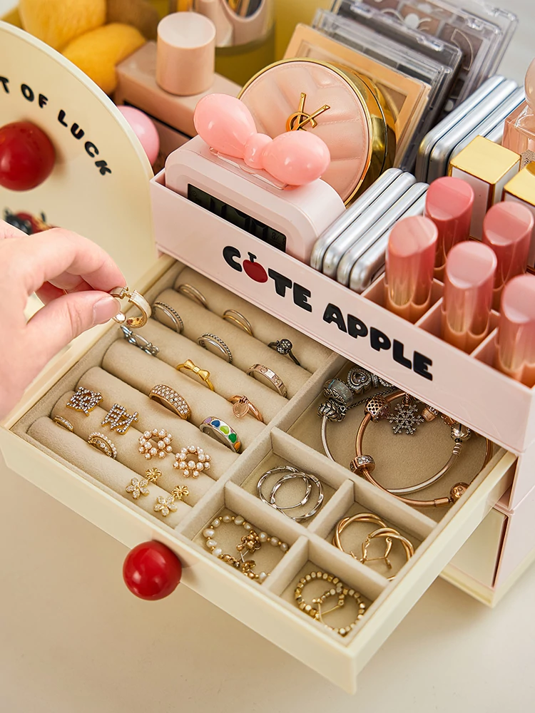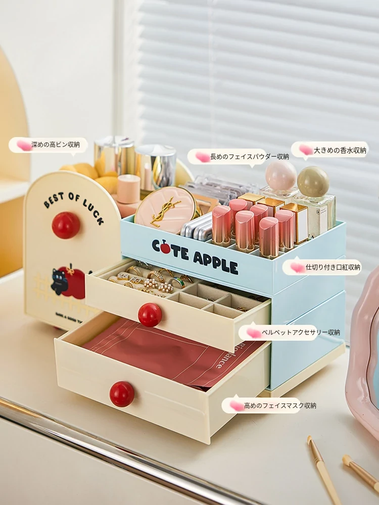 ドーパミン化粧品収納ボックス デスクトップ用ジュエリースタンド 一体型ドレッサー スキンケア・香水・リップを整理する分割収納ラックで、あなたのビューティー空間を華やかに演出!