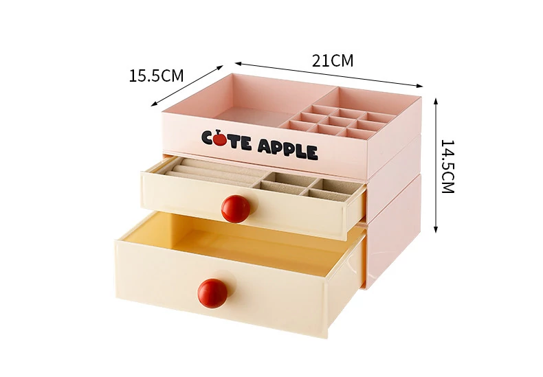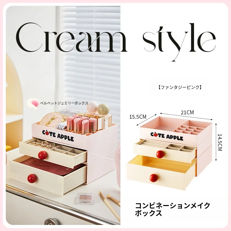 ピンク【三段収納ボックス+フランネルジュエリーボックス】