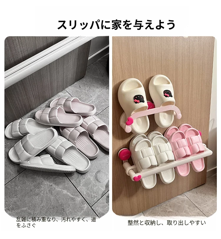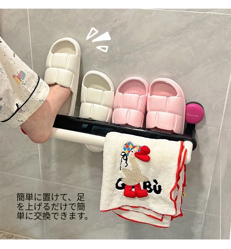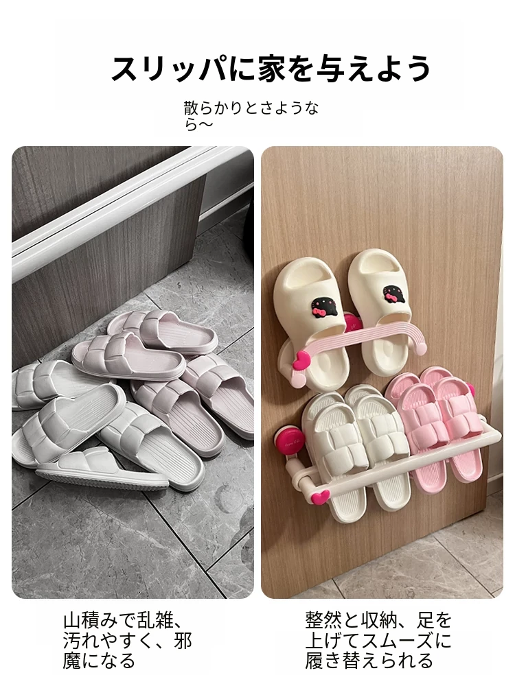 ドーパミンバスルームスリッパラック 壁掛け式 無穴タイプ 入り口ドア後ろの靴収納ラック - スペースを有効活用し、スタイリッシュに整理整頓!