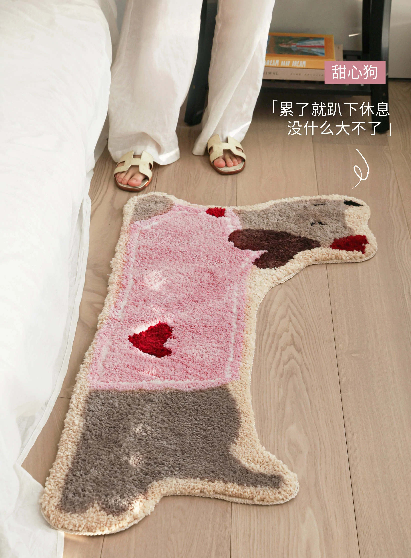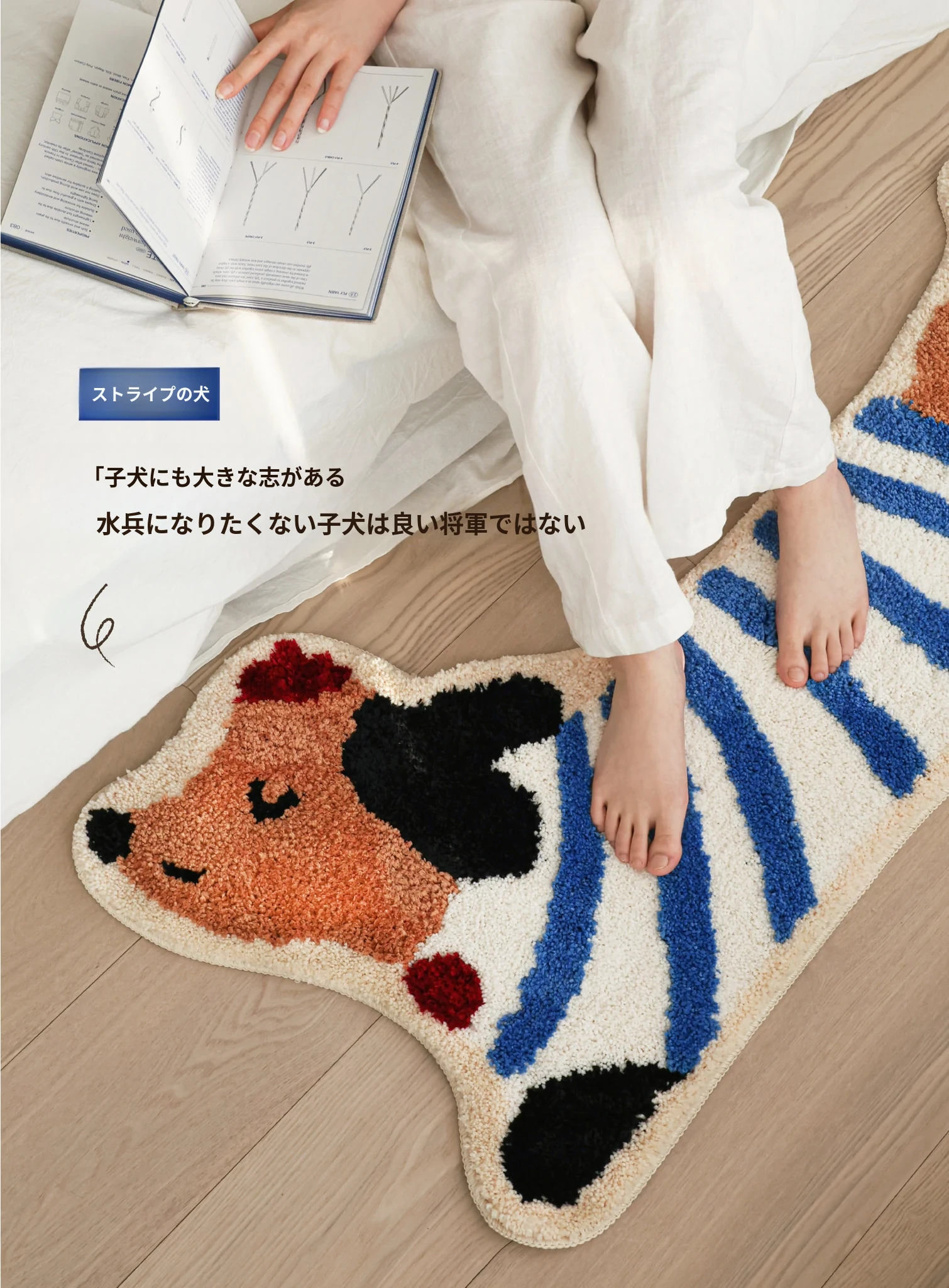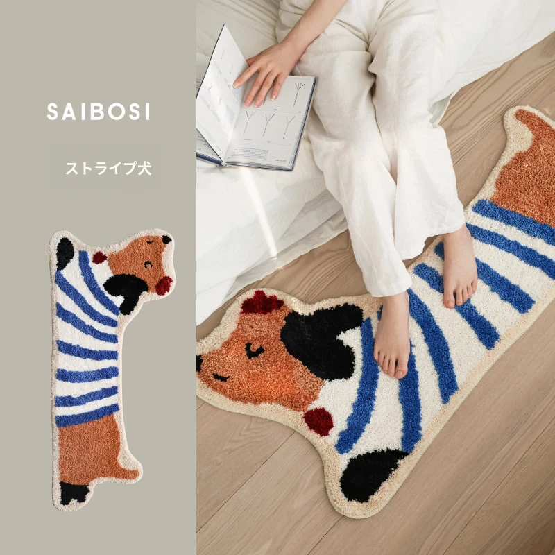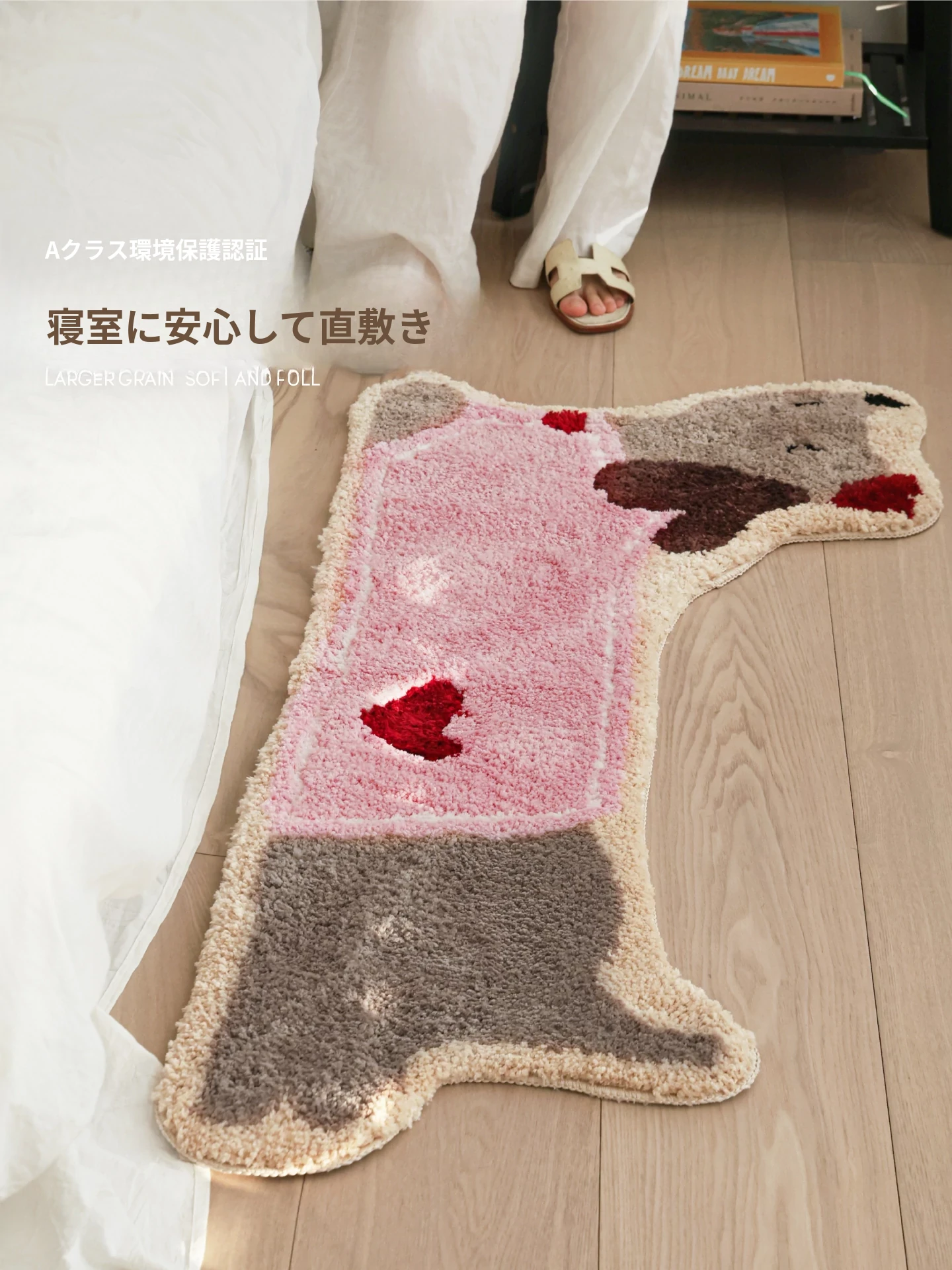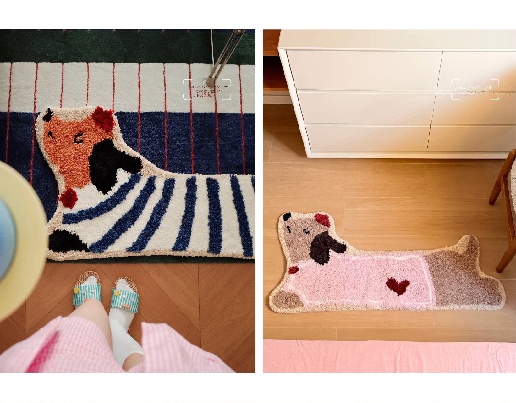 可愛いサイボス小犬デザインの異形ベッドサイドマット - 子供部屋にぴったりなドパミン効果のあるふわふわラグ!リビングや寝室の素敵なアクセントにも最適。